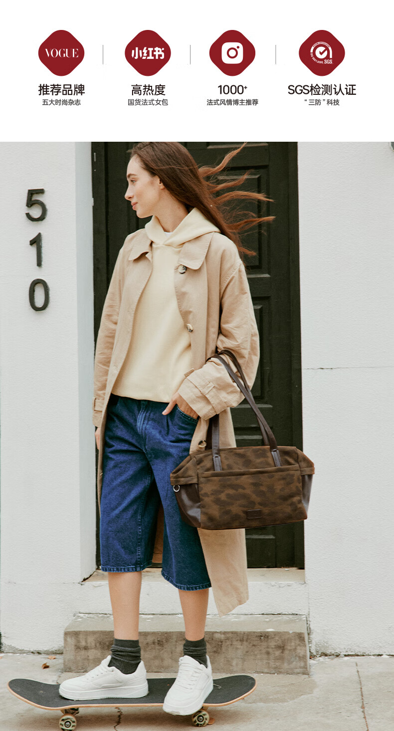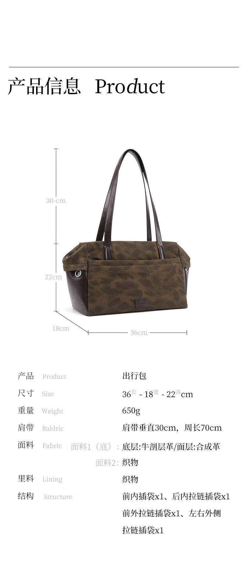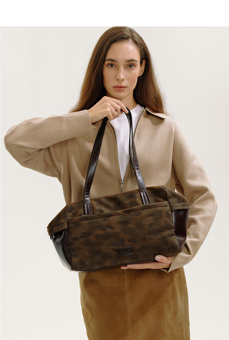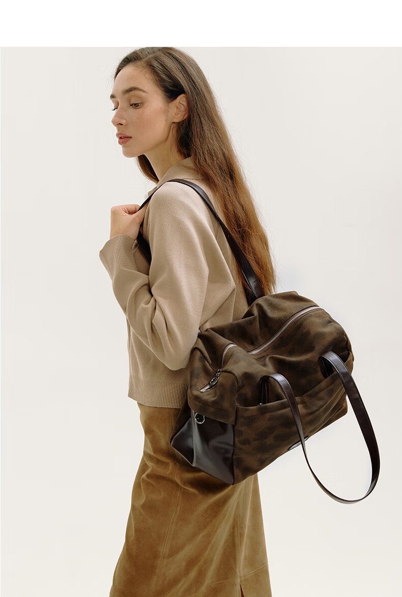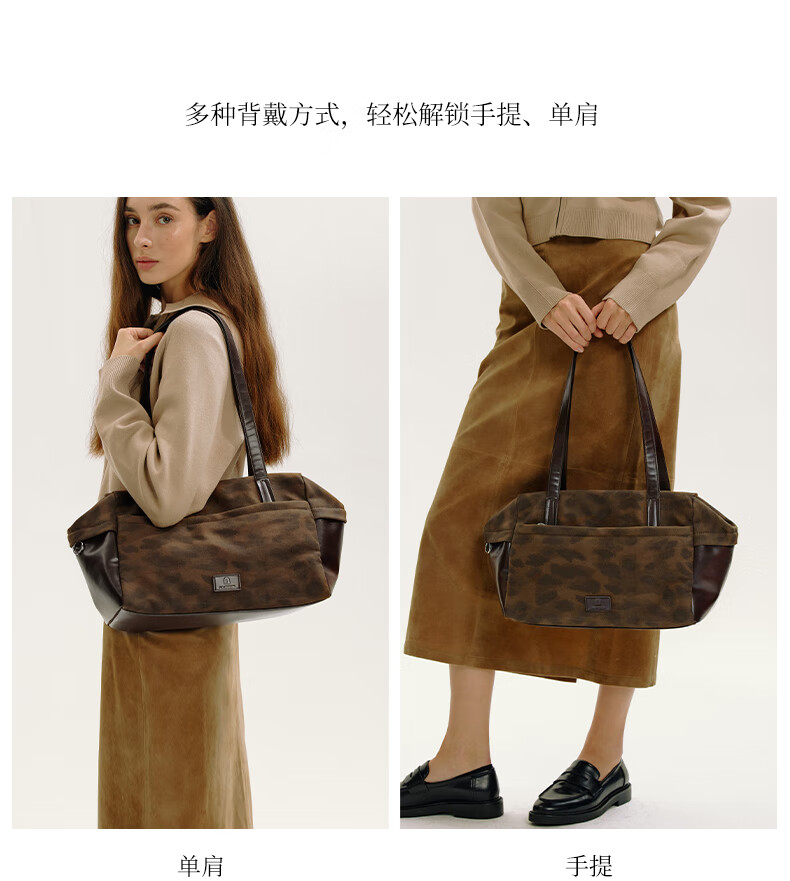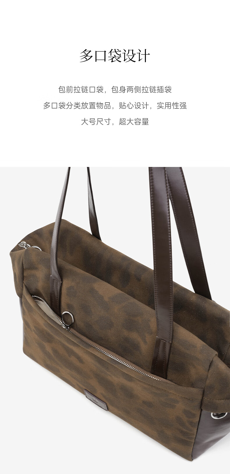 拉菲斯汀【圣诞礼物】出行包2025新款包包上班通勤手提包女大容量托特包 豹纹棕