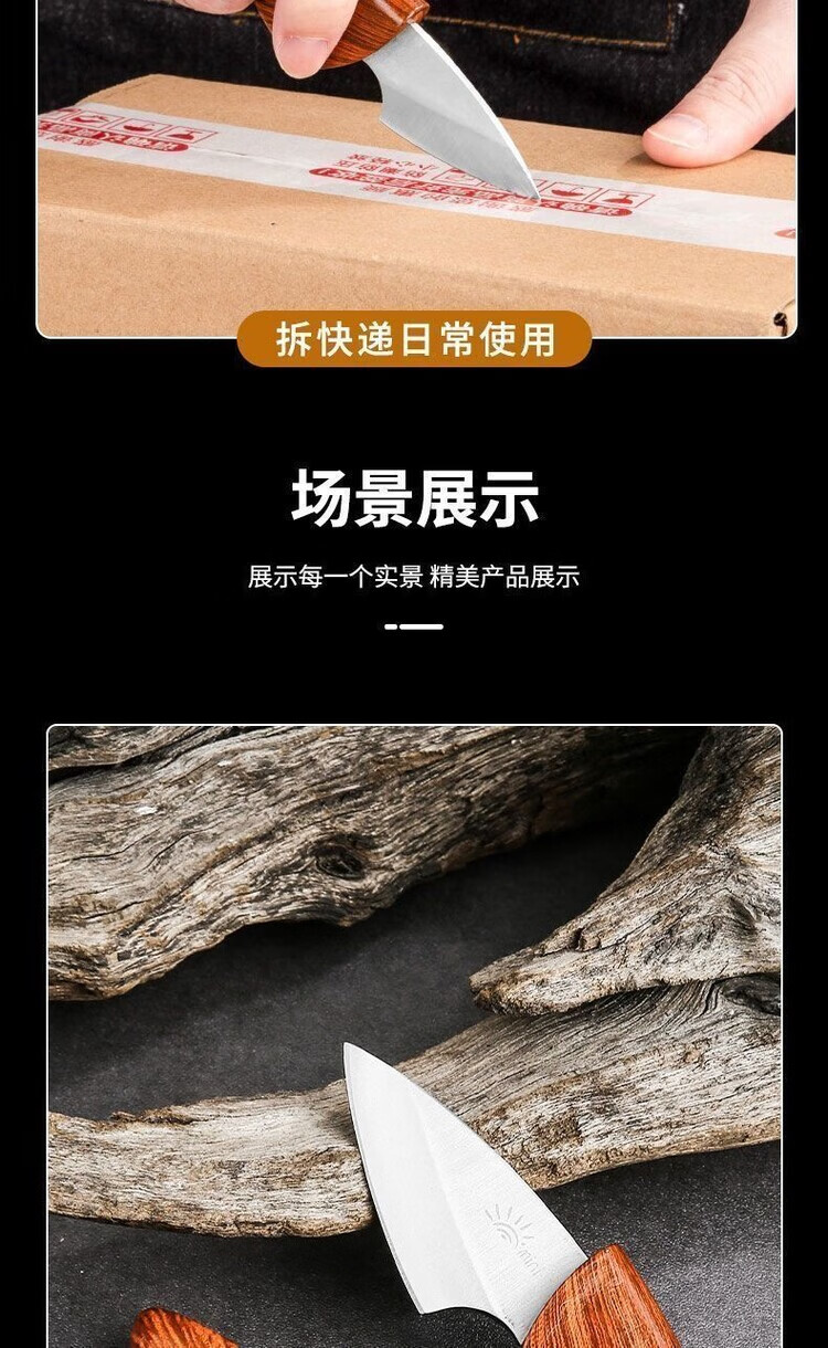 【好物优选】户外木鱼加厚小刀家用厨房削皮刀多功能水果刀 小巧锋利-便携带【1把】