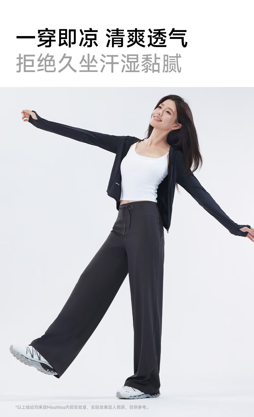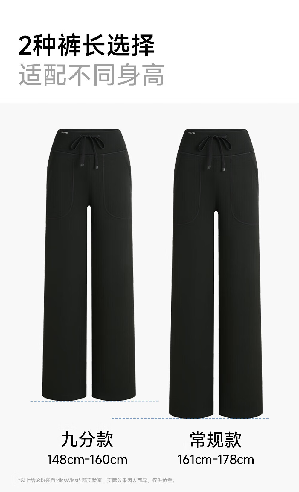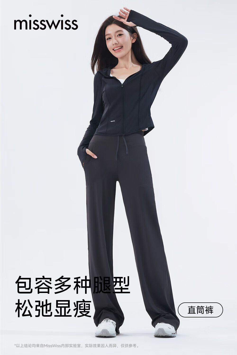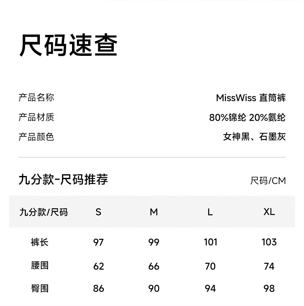 MissWiss直筒裤子女2025新款长裤休闲高腰收腹提臀黑色垂感阔腿裤 女神黑【适合161以下】 加绒款 L
