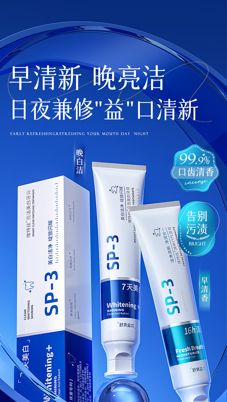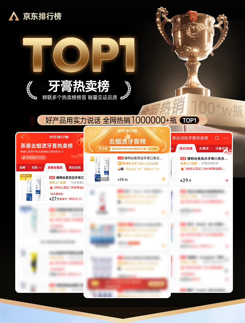 维特丝美亮白牙膏口臭去黄去牙渍去烟渍牙垢护龈清新口气家庭装金榜第一