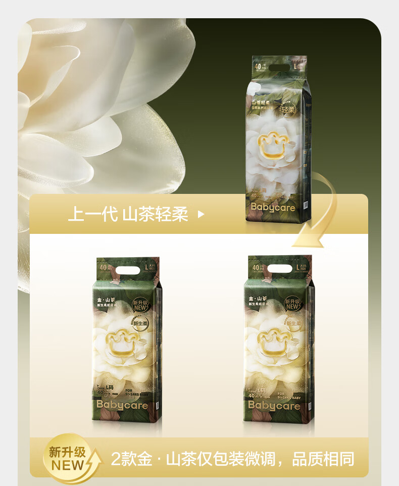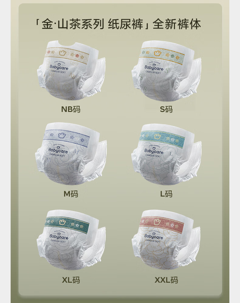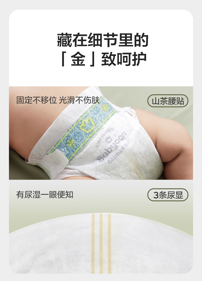 babycare金山茶花纸尿裤加量装透气轻柔婴儿花苞裤尿不湿尿布 S码 - 2包 80片 【4-8KG】