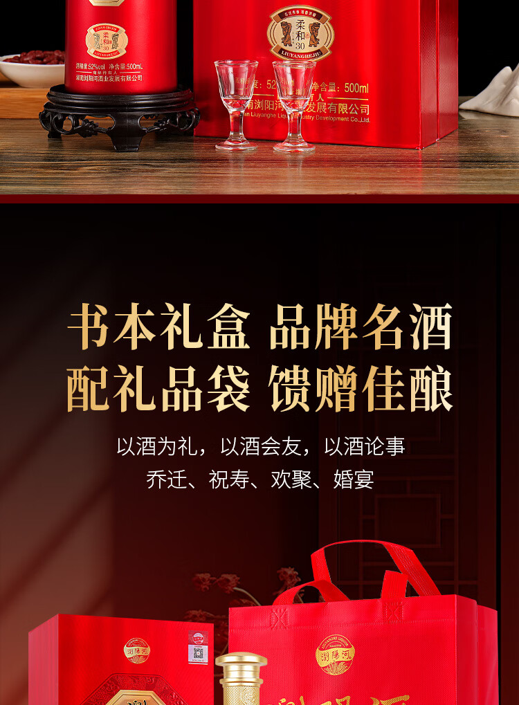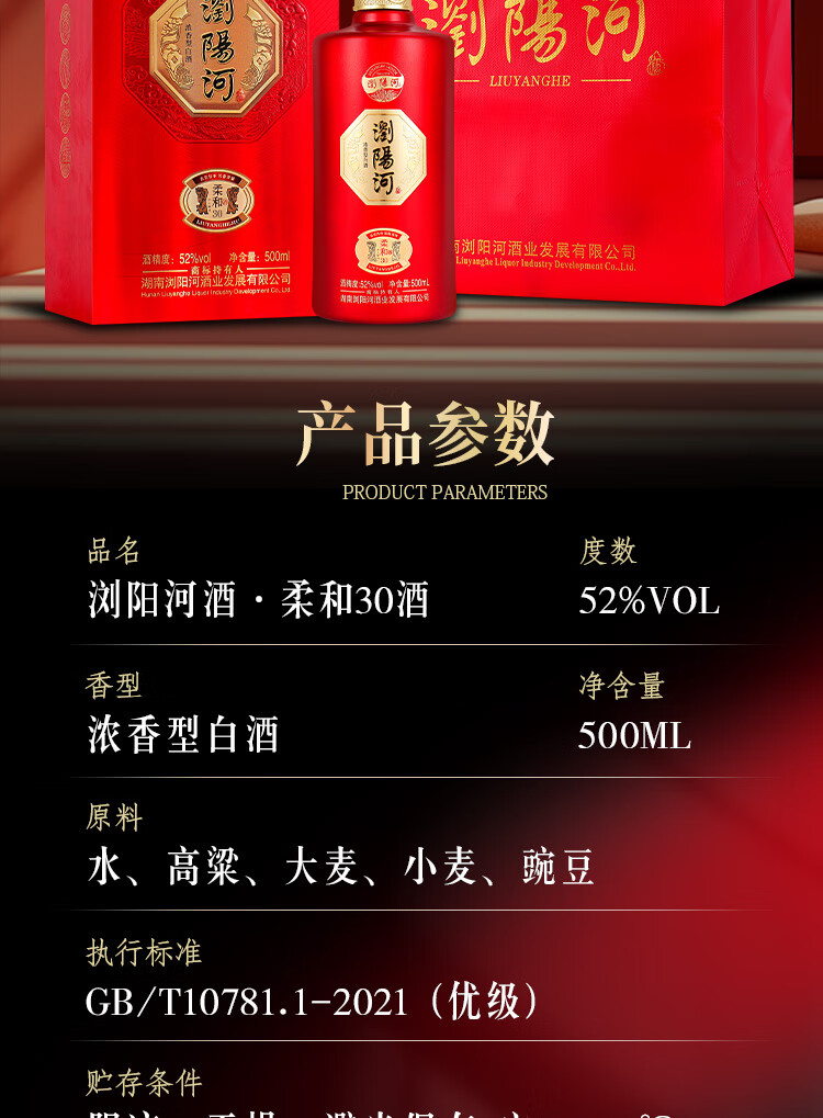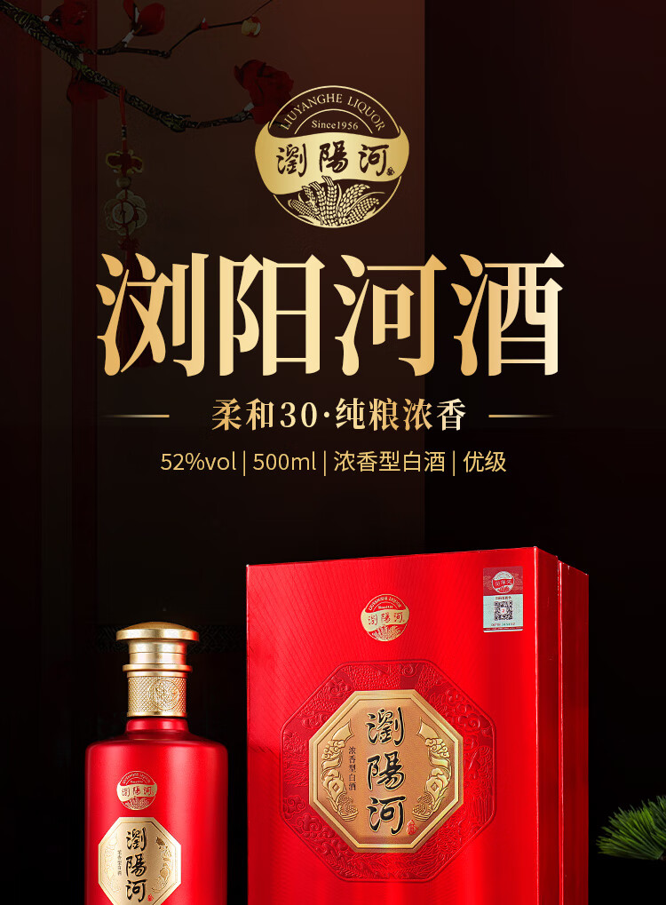 瀏陽河酒柔和30白酒整箱52度浓香型500ml*6瓶礼盒装请客送礼佳品 52度 500mL 6瓶