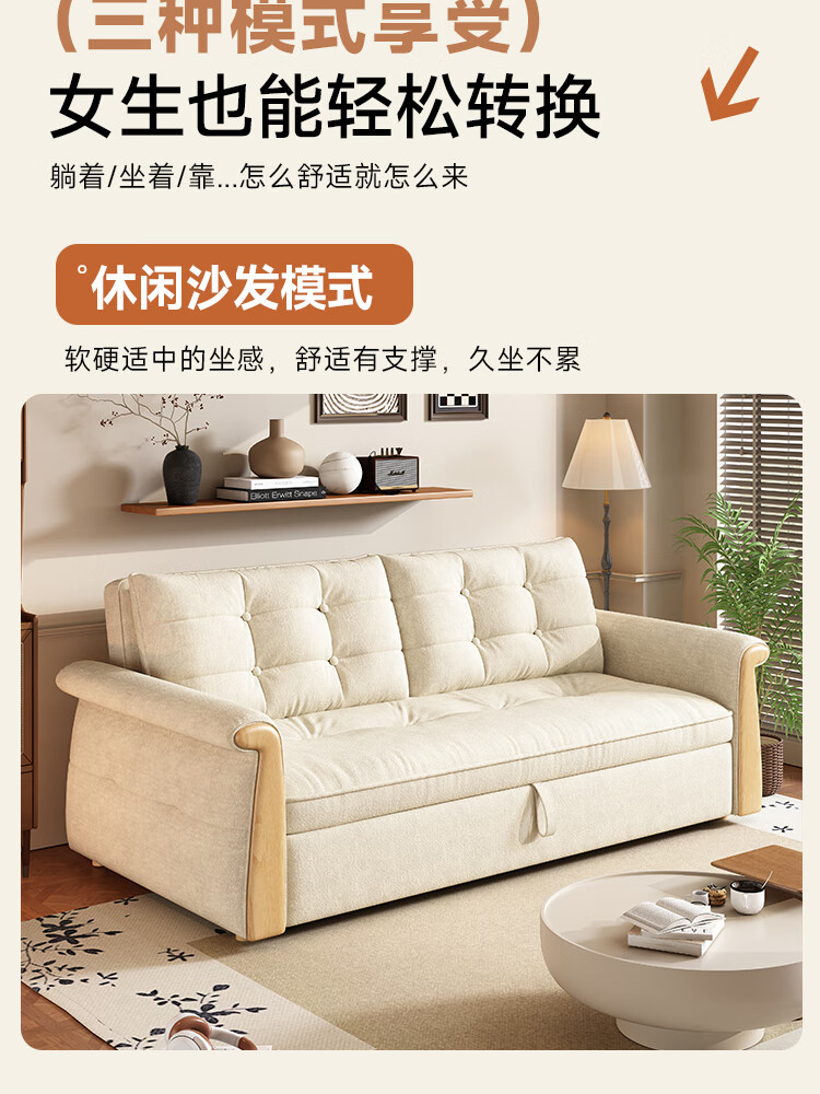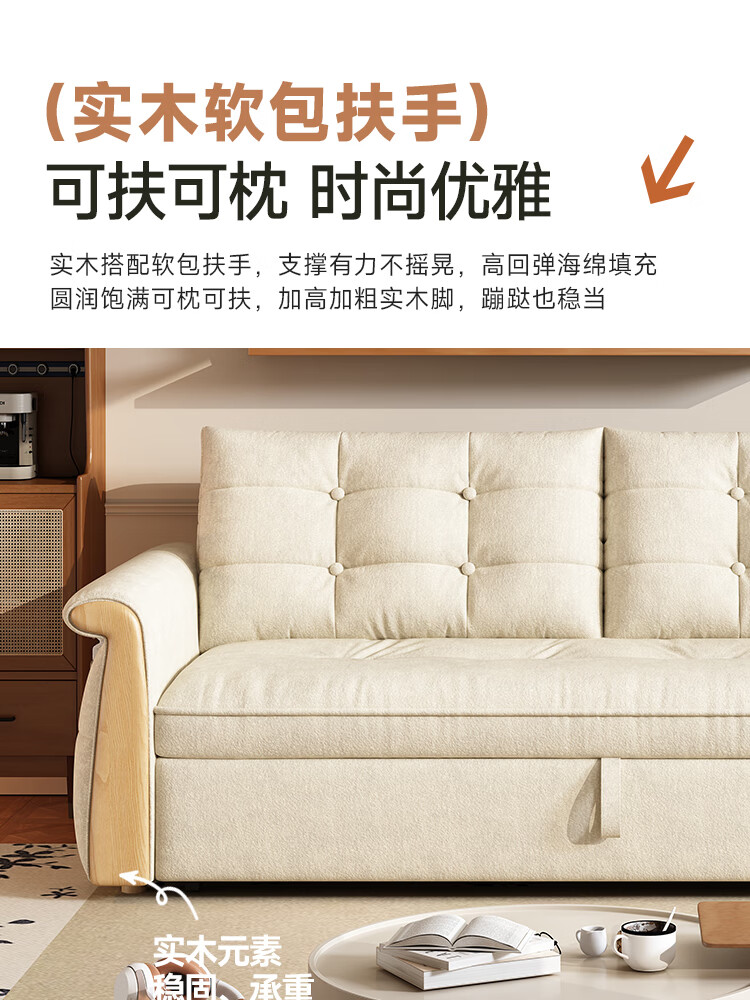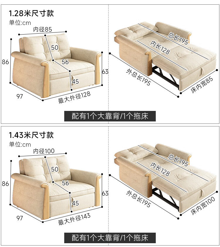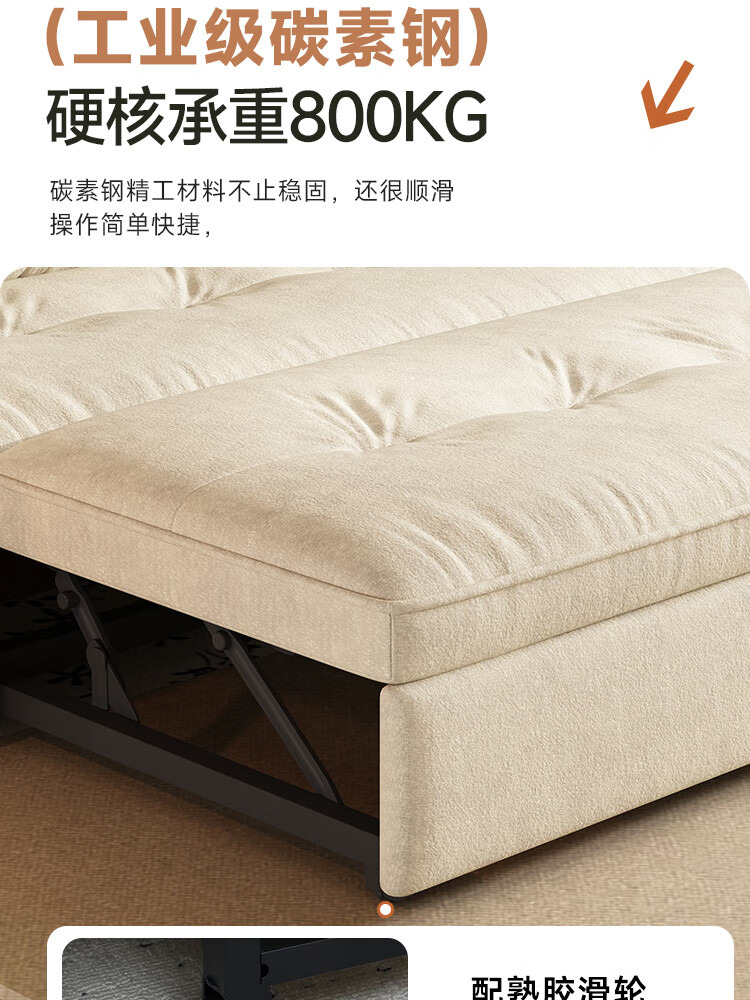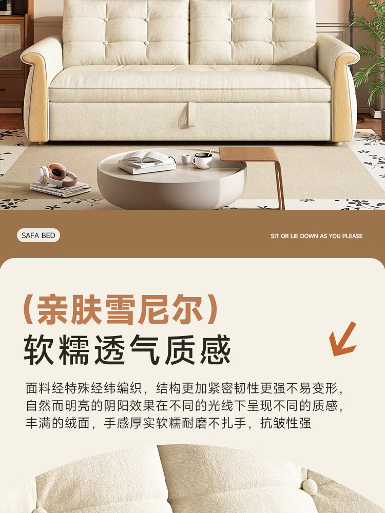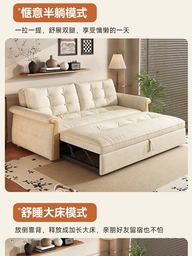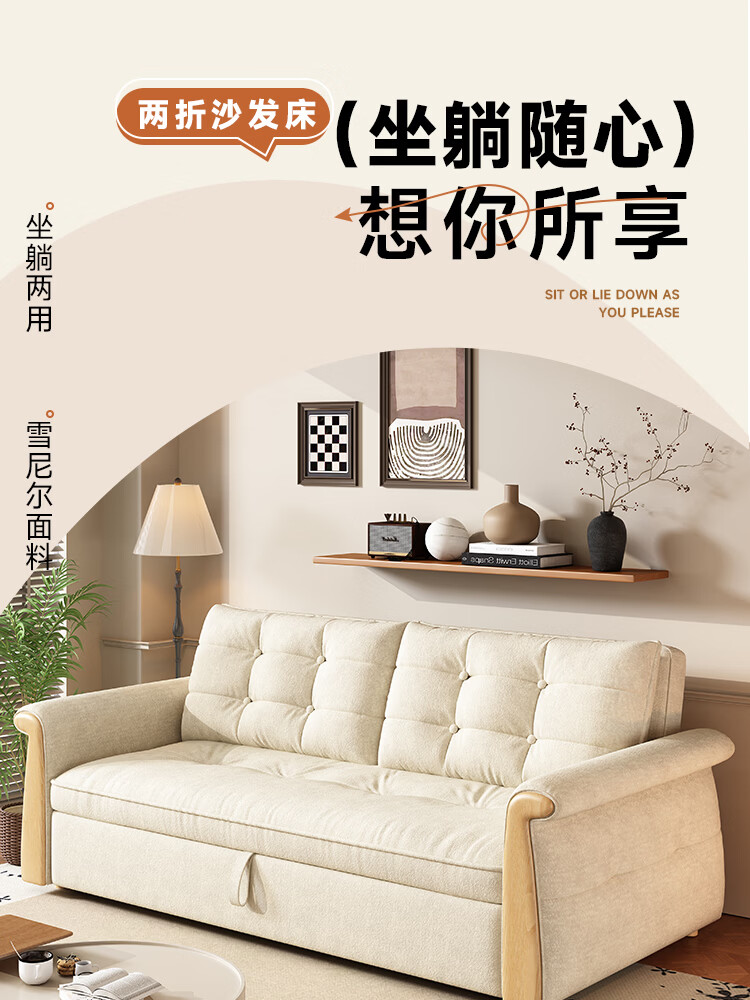 哈森诗丹可折叠沙发床一体两用2025新款小户型客厅雪尼尔可睡觉沙发二合一 外宽:1.28m(三档调节靠背) 45D无粉海绵款(加厚1.5MM猫抓皮)