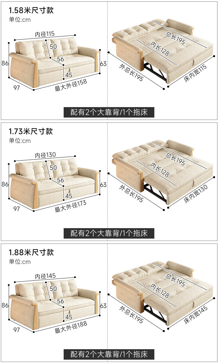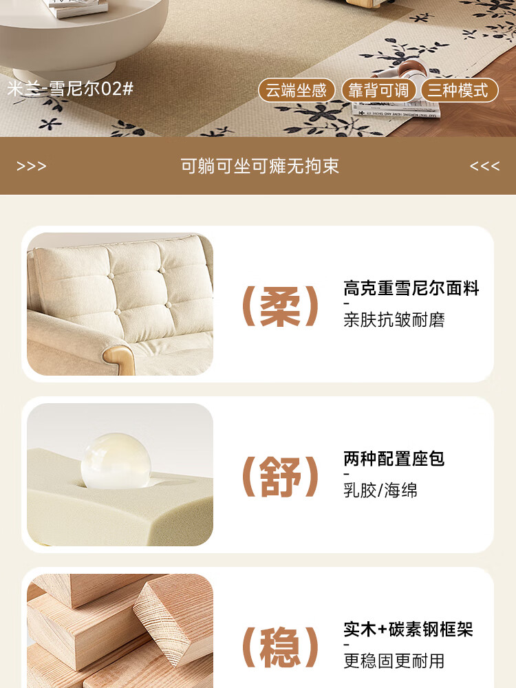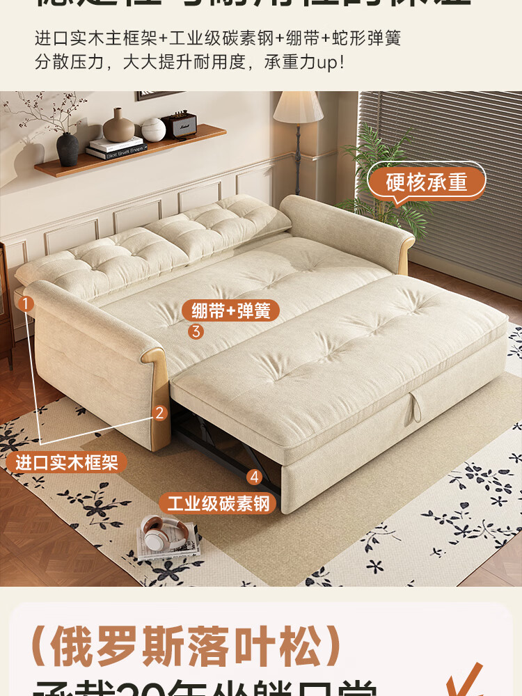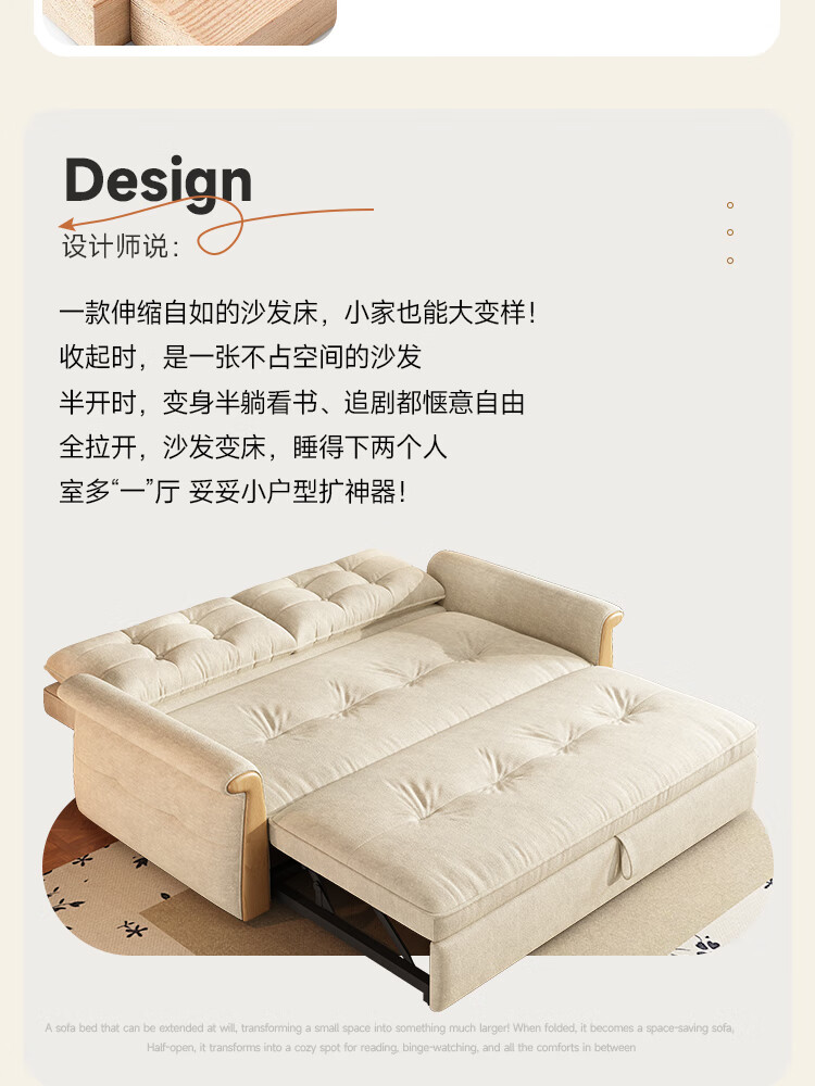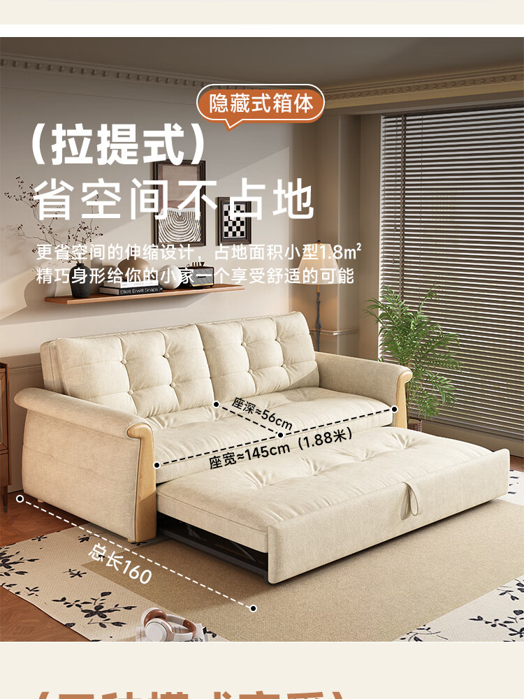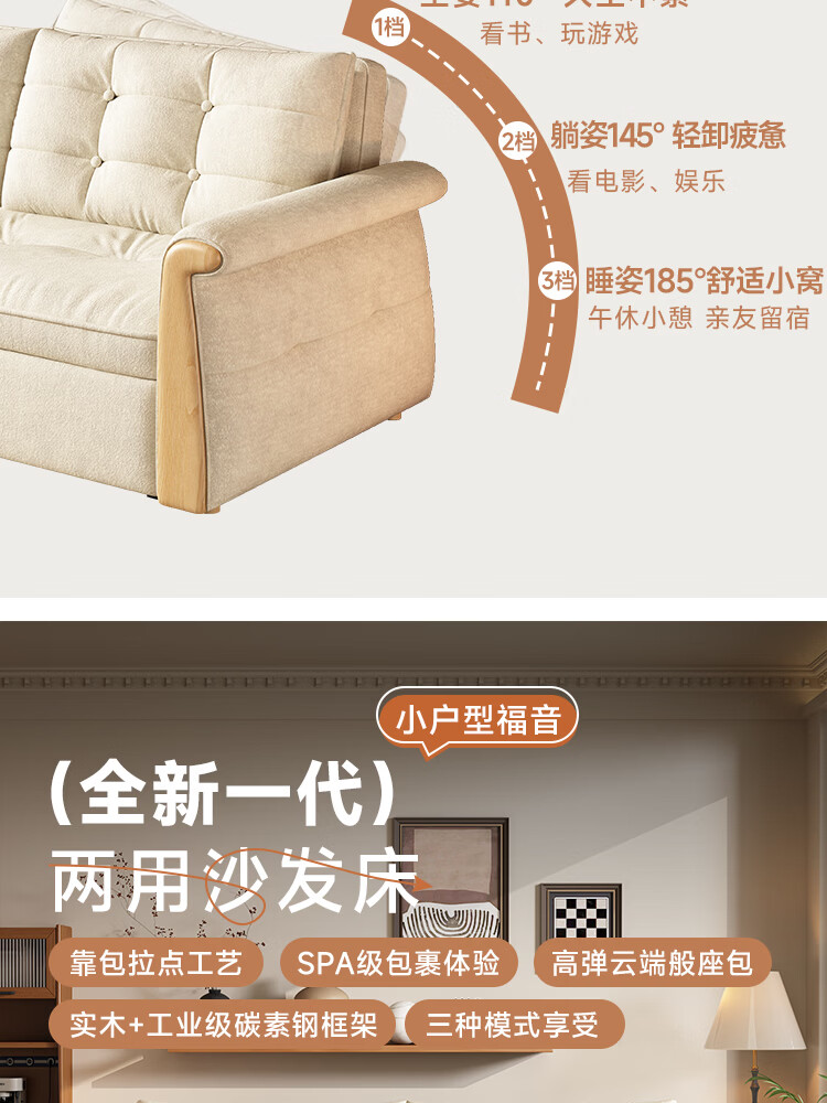 哈森诗丹可折叠沙发床一体两用2025新款小户型客厅雪尼尔可睡觉沙发二合一 外宽:1.28m(三档调节靠背) 45D无粉海绵款(加厚1.5MM猫抓皮)