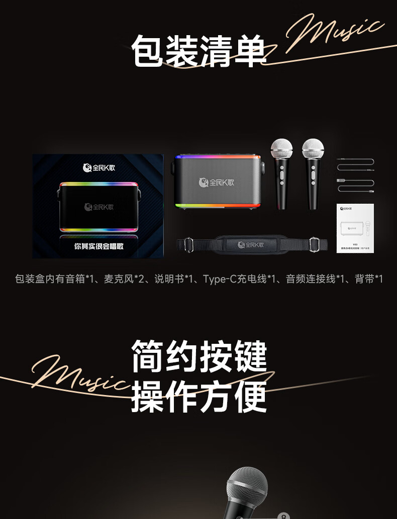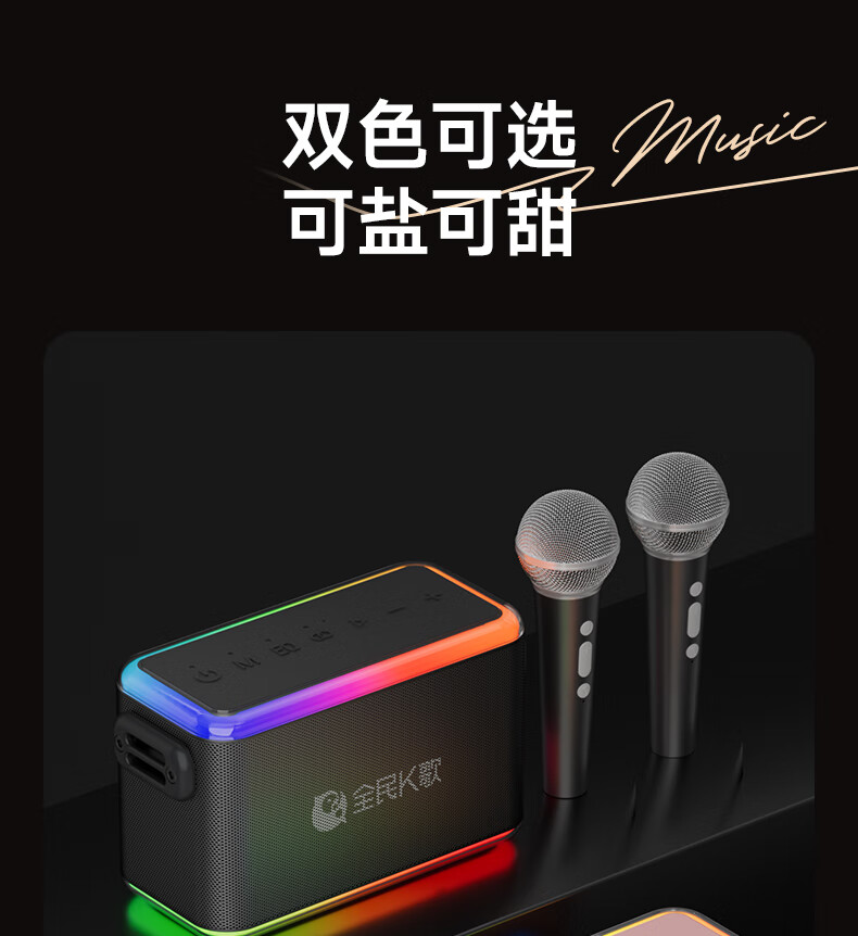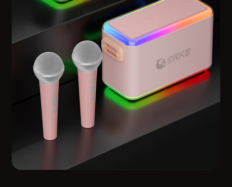 全民K歌便携式无线K歌音箱麦克风套装 超长续航家用KTV户外娱乐话筒音响一体V53粉色