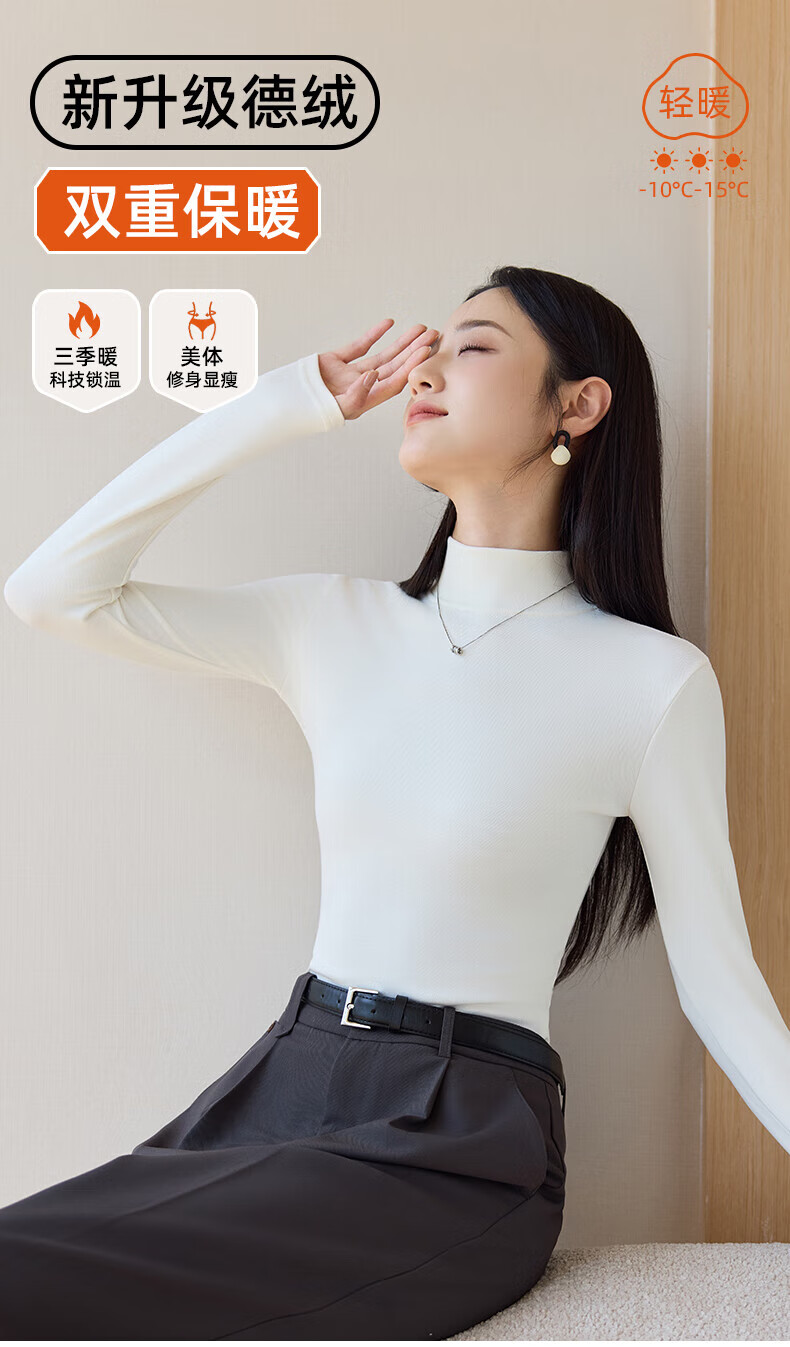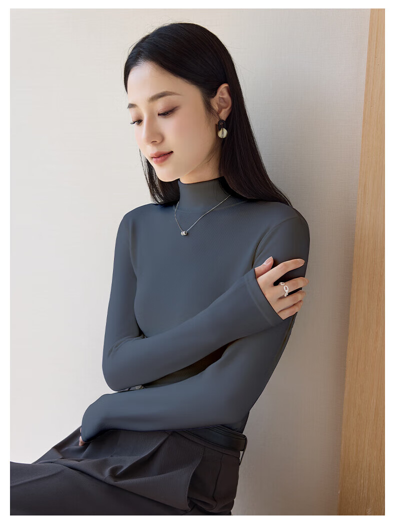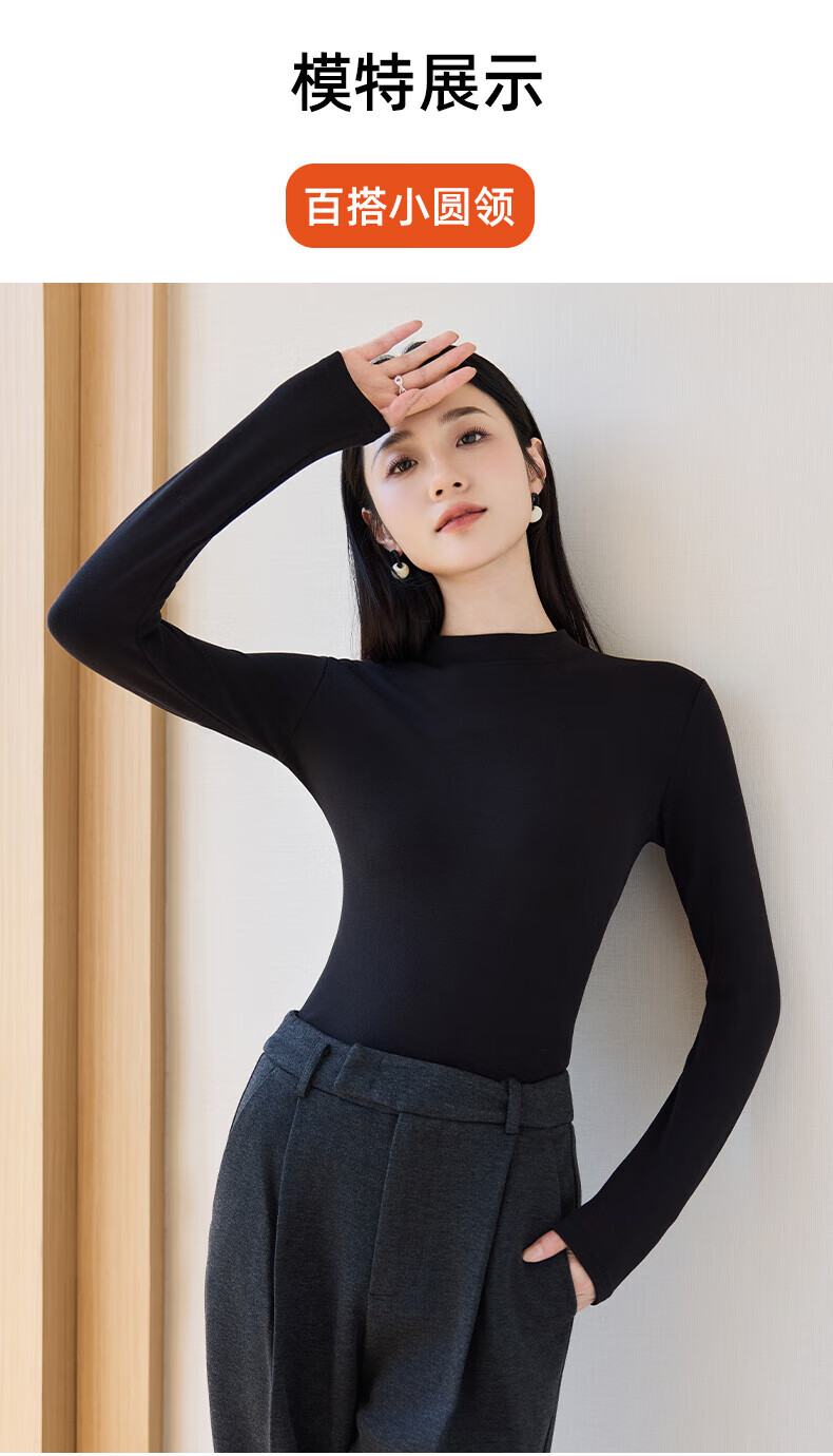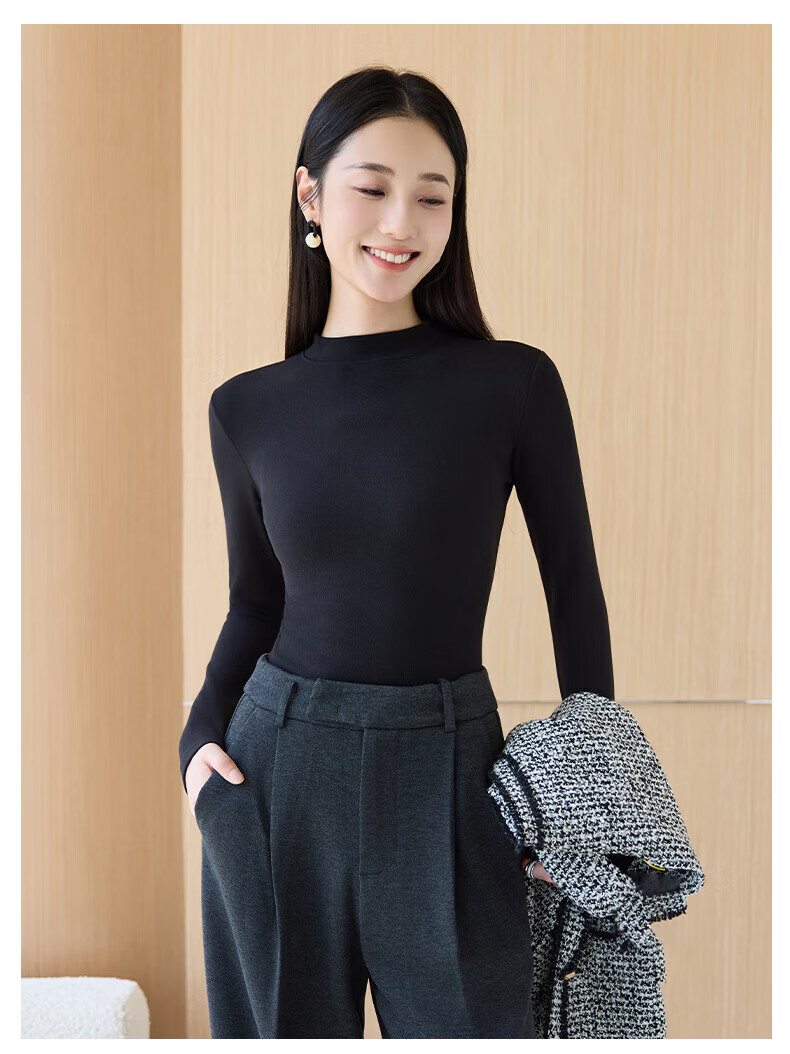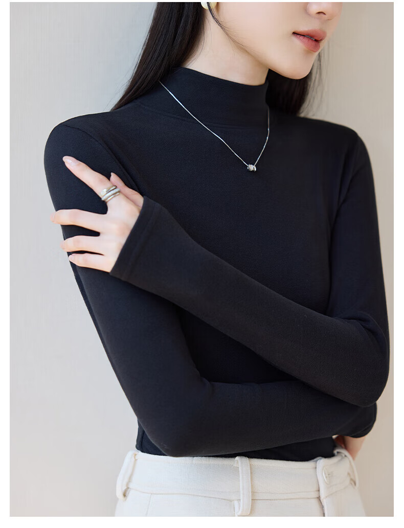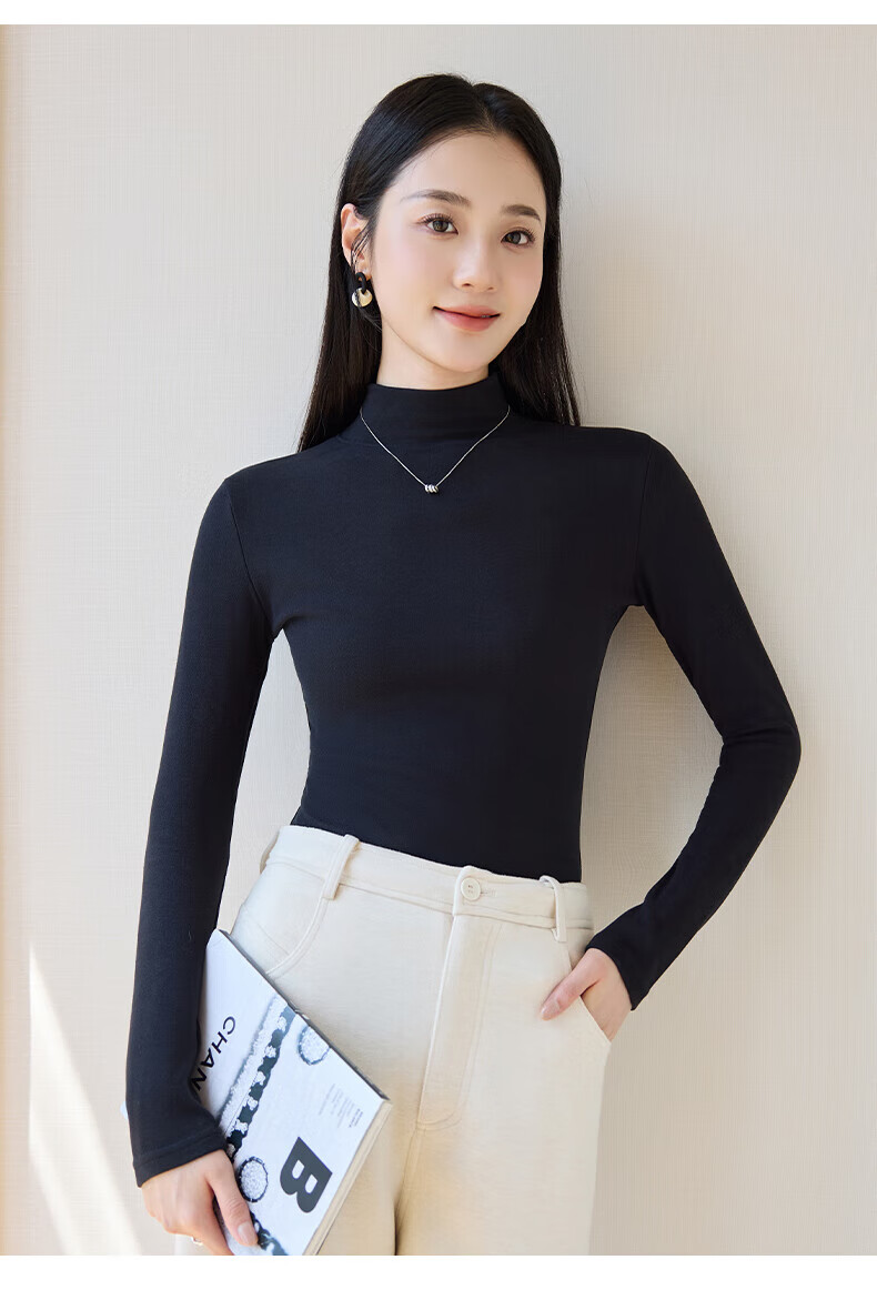 浪莎德绒打底衫女秋冬款内搭半高领修身长袖双面加绒外穿洋气保暖上衣 黑色 -半高领 L 【适合106-120斤】