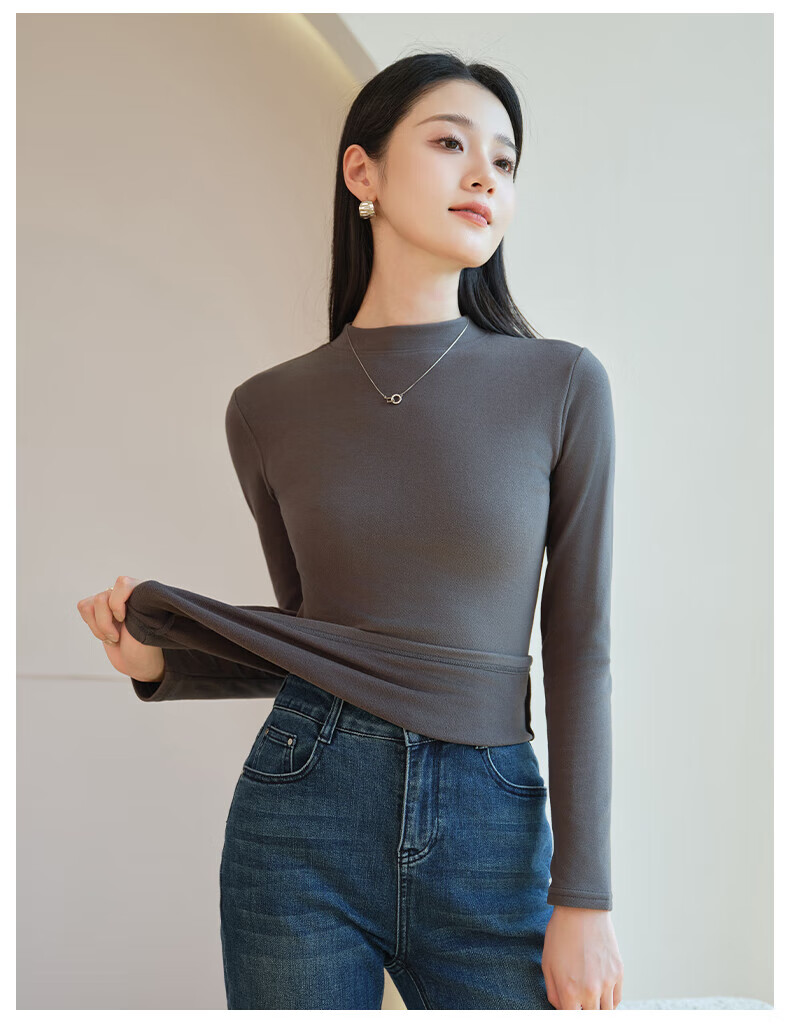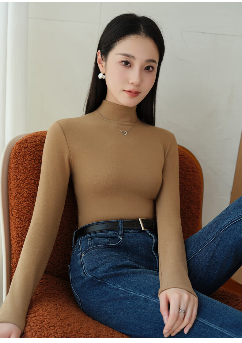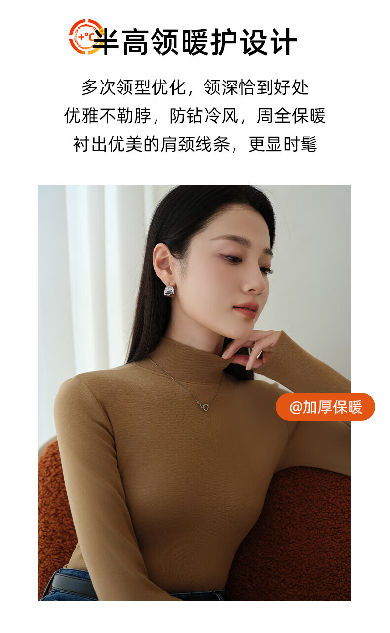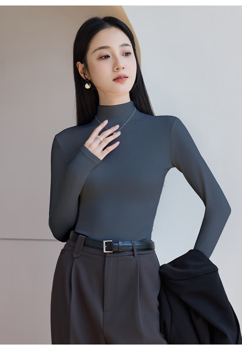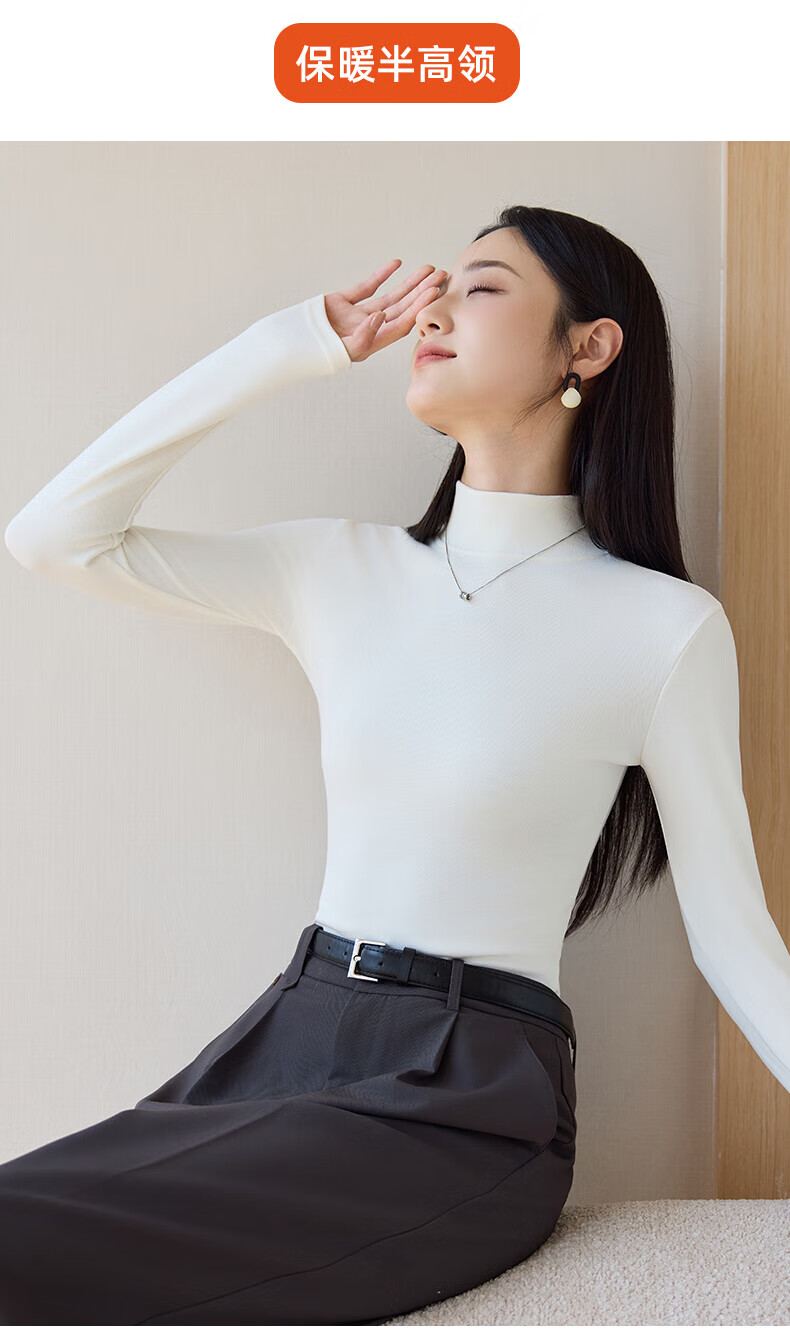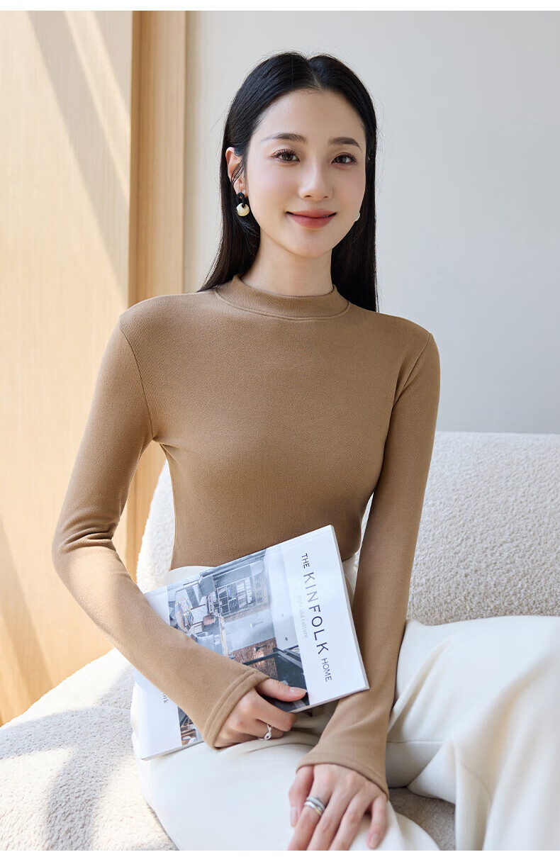 浪莎德绒打底衫女秋冬款内搭半高领修身长袖双面加绒外穿洋气保暖上衣 黑色 -半高领 L 【适合106-120斤】