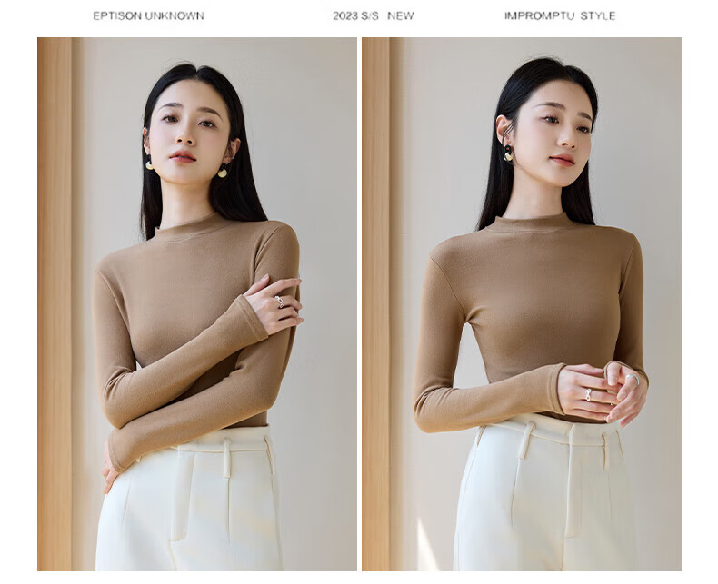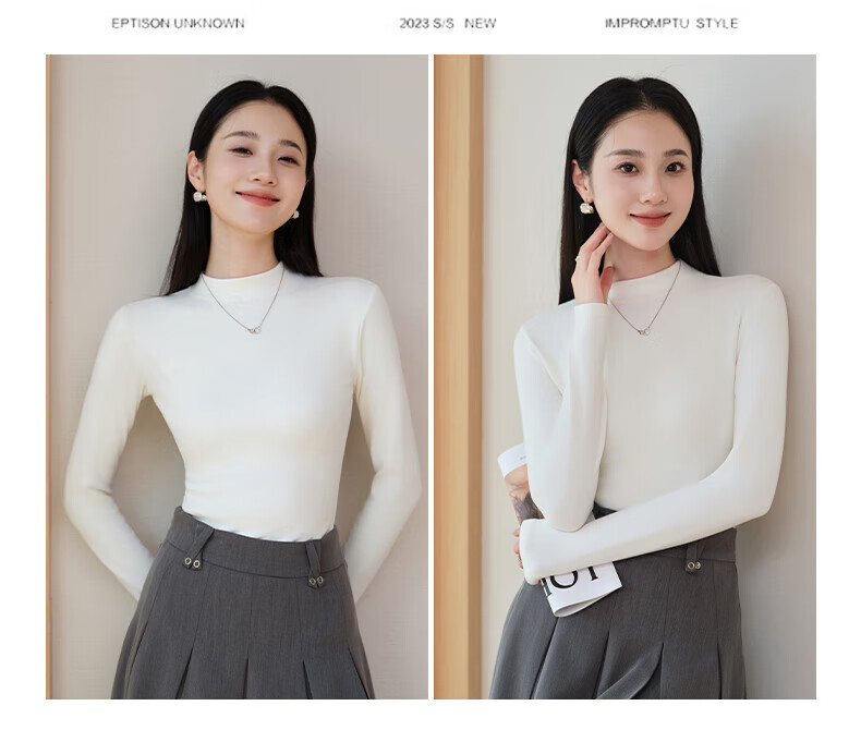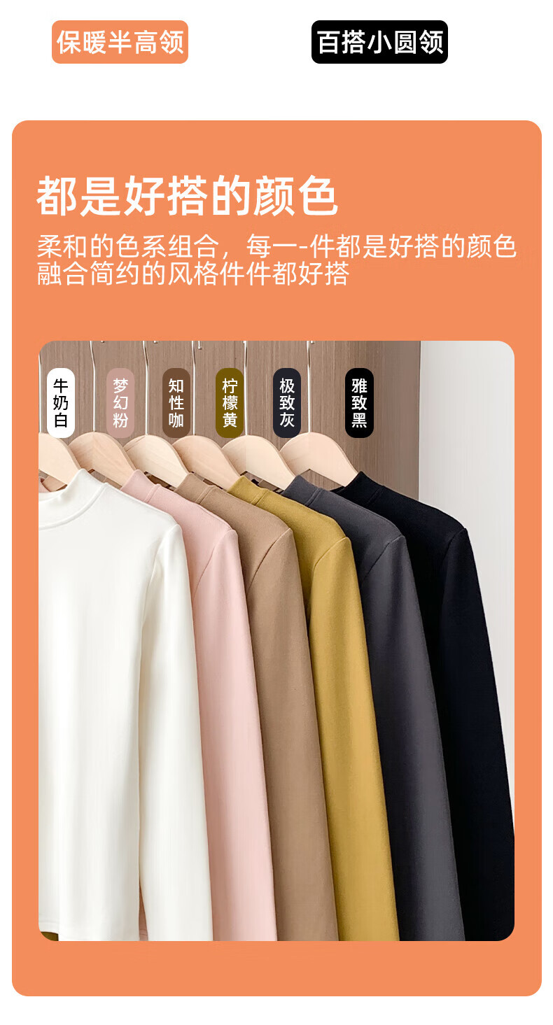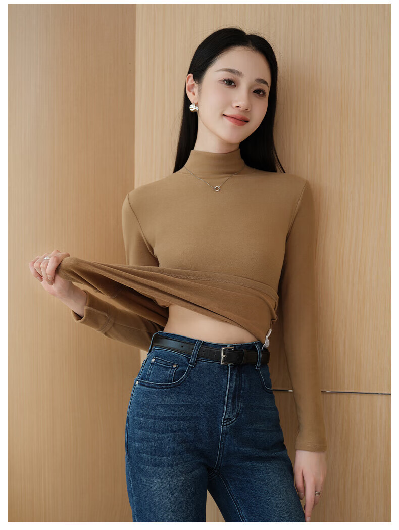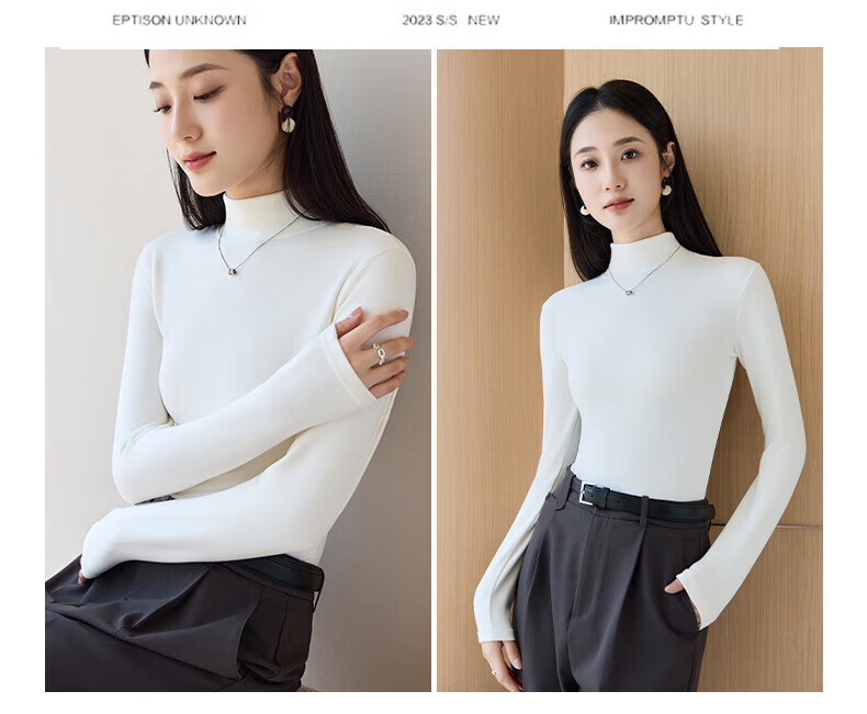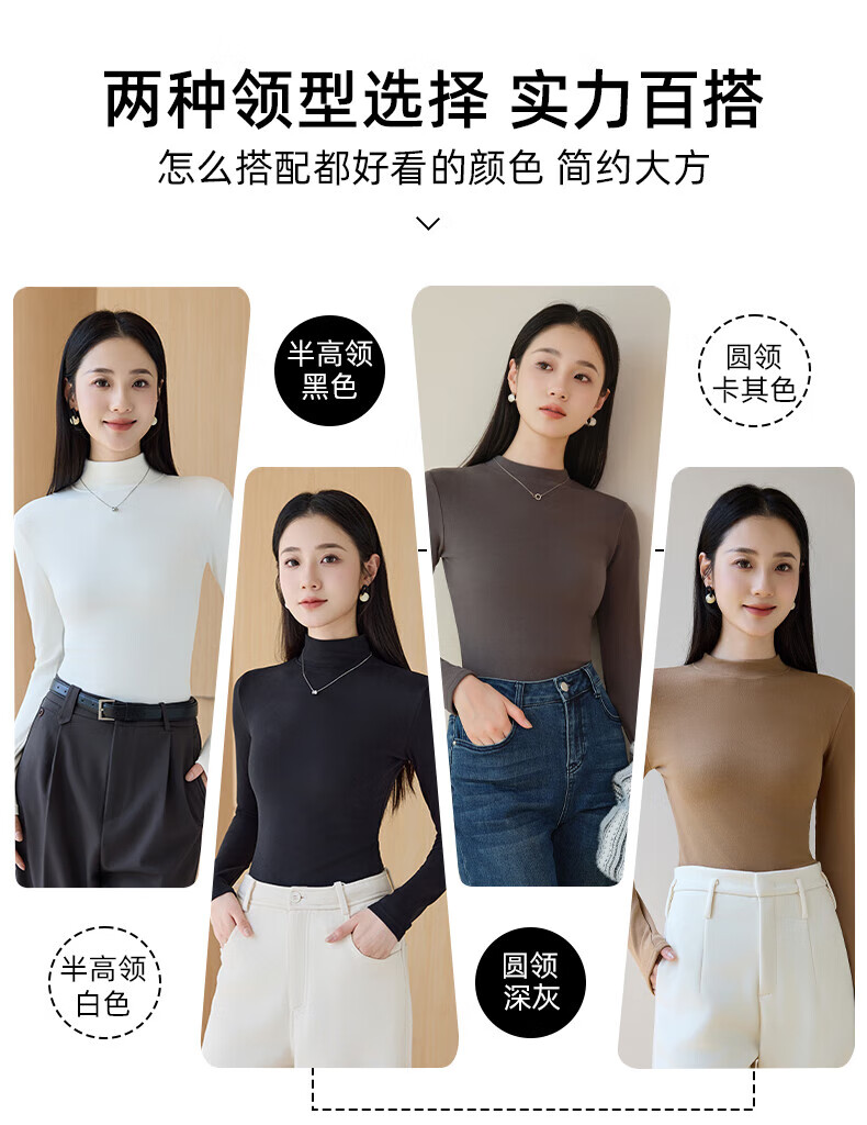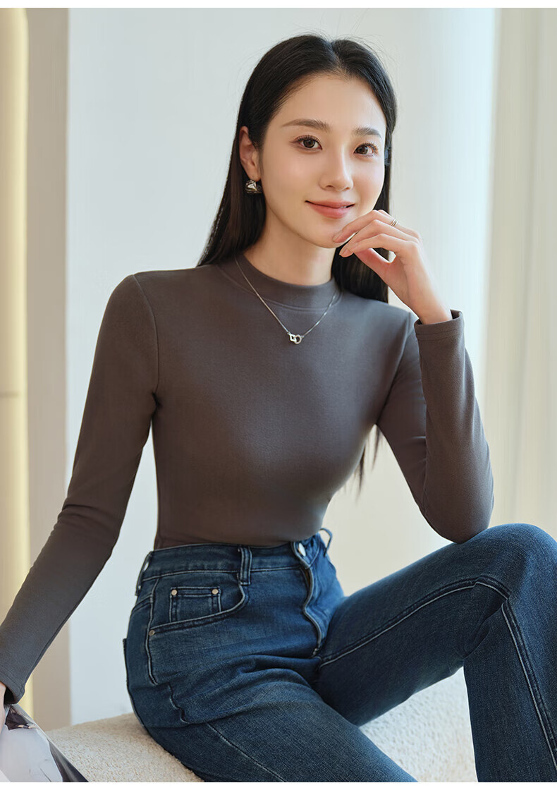 浪莎德绒打底衫女秋冬款内搭半高领修身长袖双面加绒外穿洋气保暖上衣 黑色 -半高领 L 【适合106-120斤】