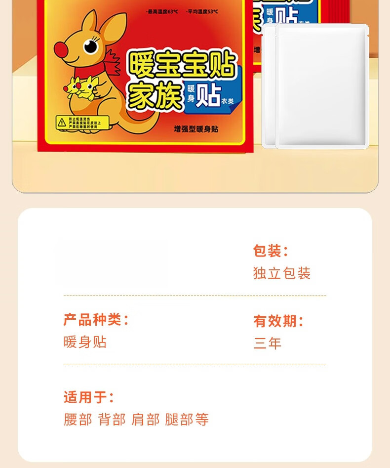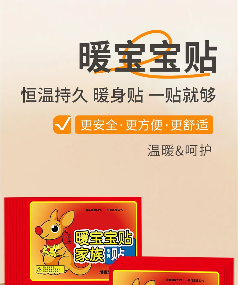 暖宝宝生理期暖肚子神器自发热防寒暖足贴暖身保暖持久腰腹发热贴 【体验装】新款袋鼠暖贴10片