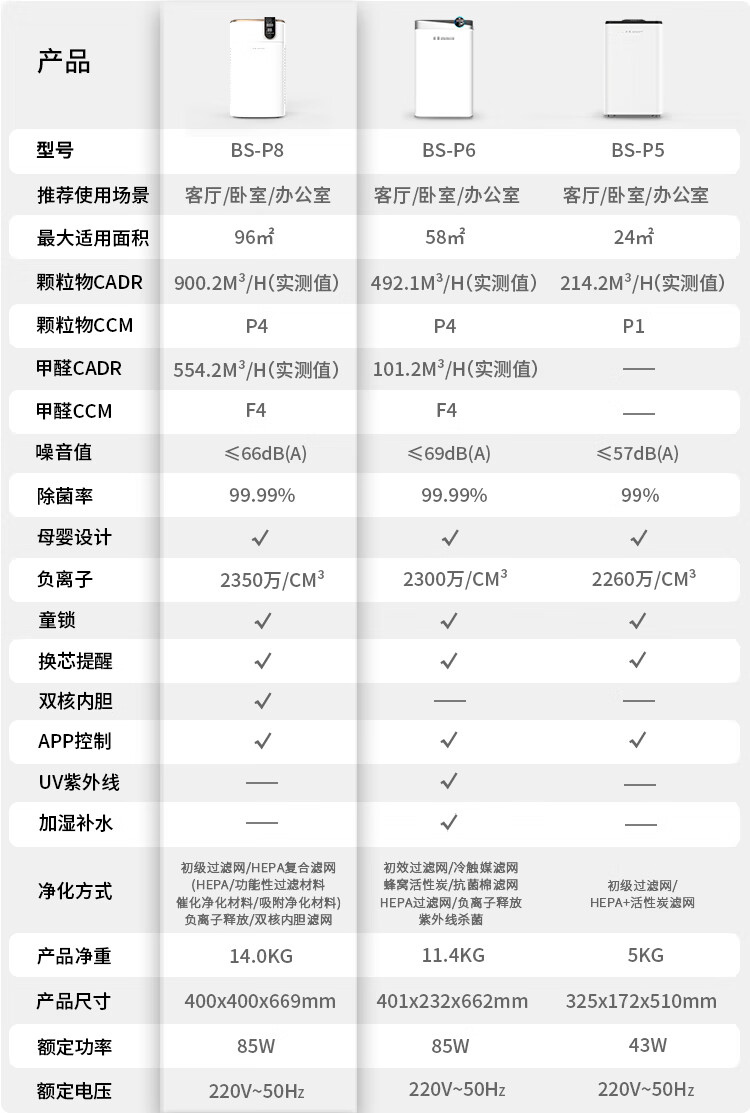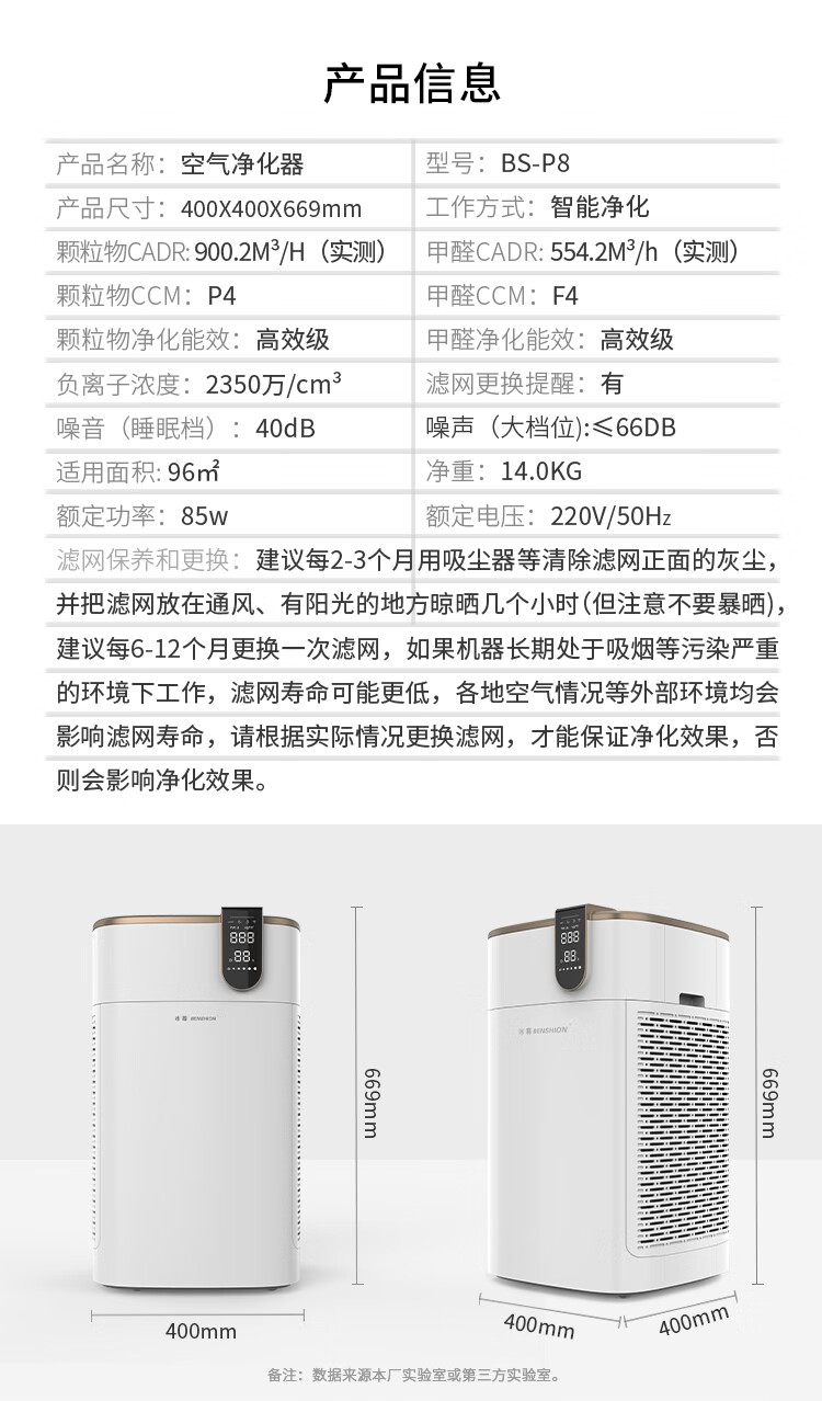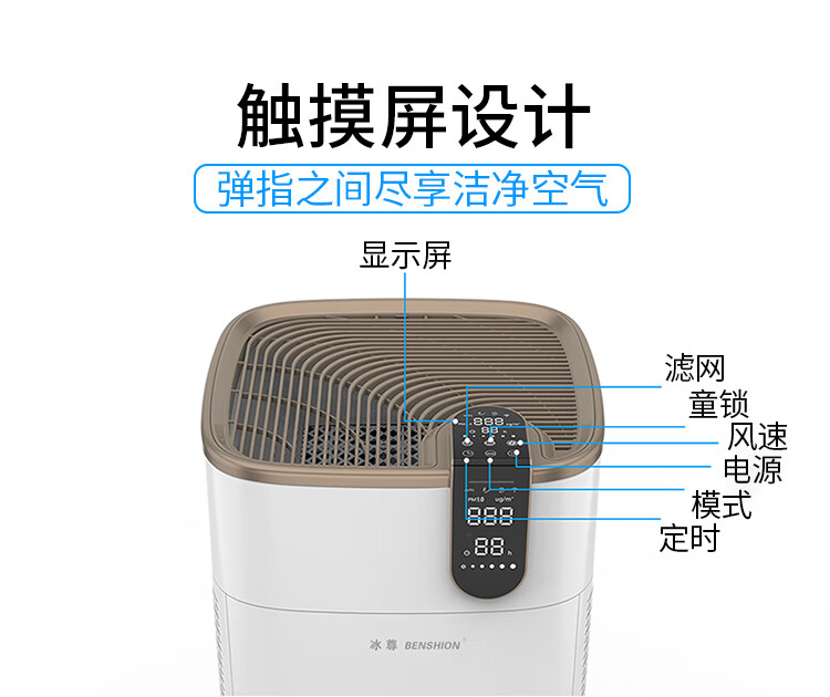 冰尊(BENSHION)空气净化器家用除甲醛巨无霸除菌率99.99%负离子2350万童锁宠物吸毛除粉尘静音P8 官方标配