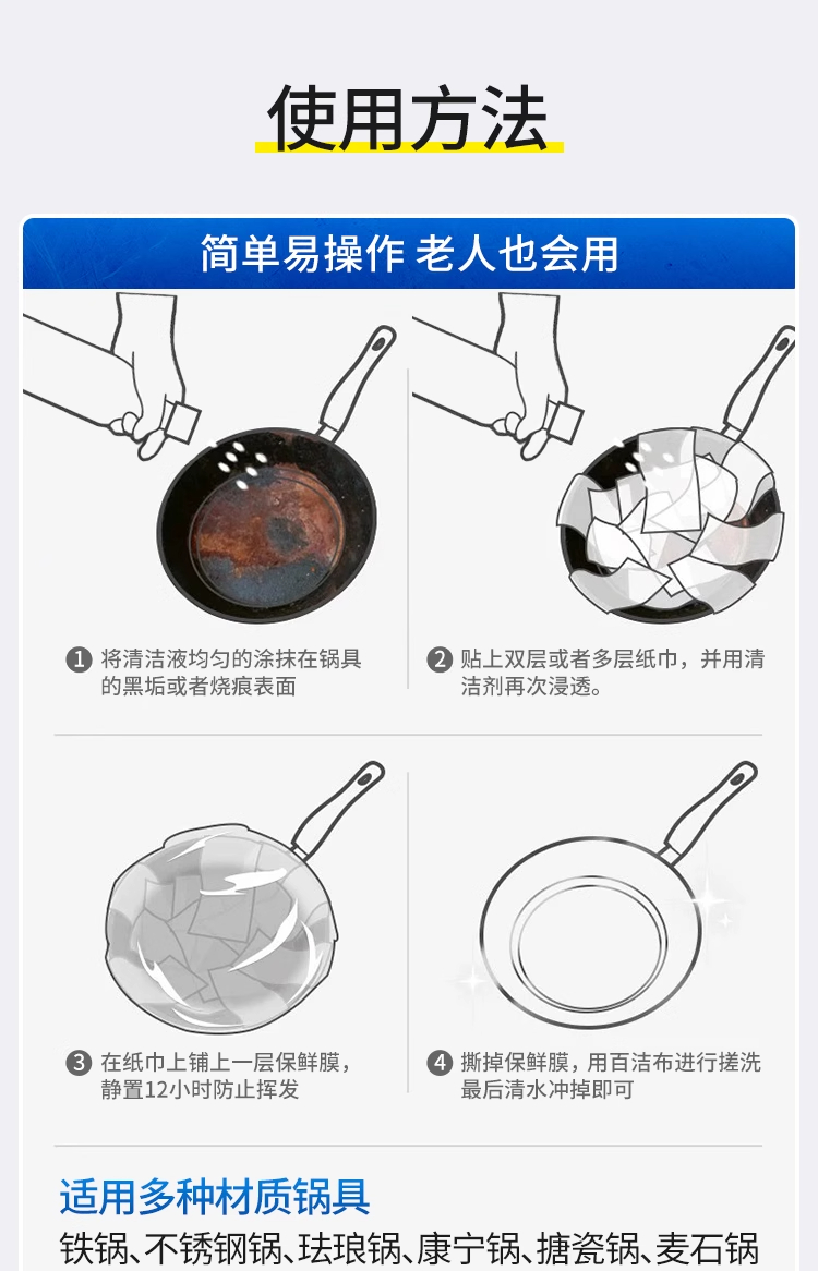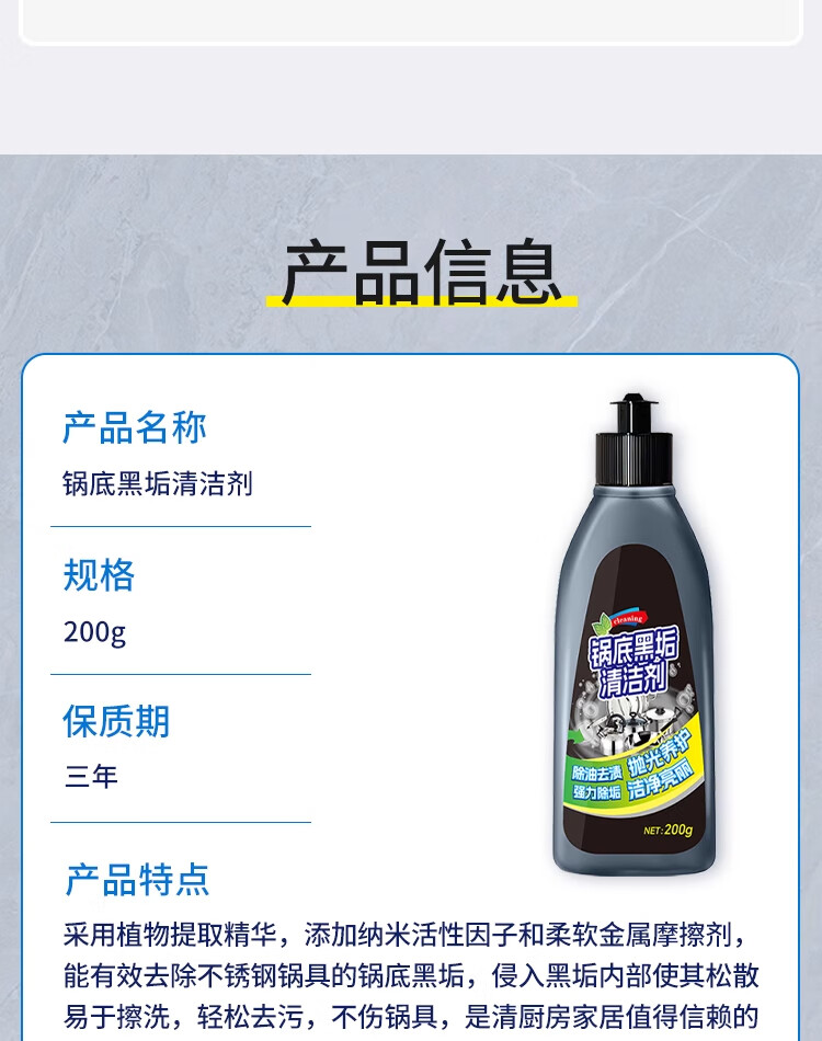 雪润梦锅底黑垢清洁剂去除剂强力去污神器去污黑焦烧焦黑痕锅底净洗锅剂 1瓶【一洗如新】