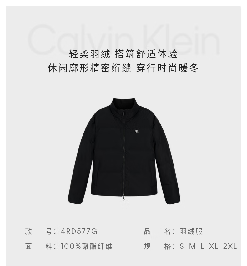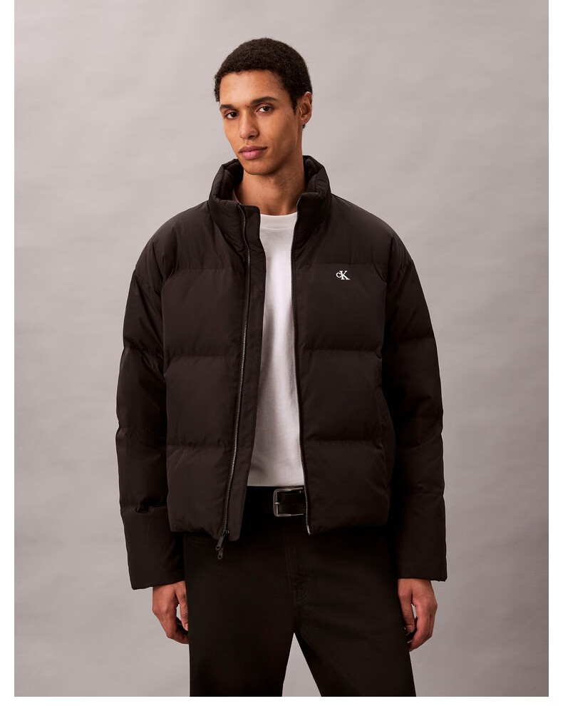 Calvin KleinJeans25秋冬新款男士商务休闲通勤ck立领绗缝鸭绒面包羽绒服外套 UB1-太空黑 L