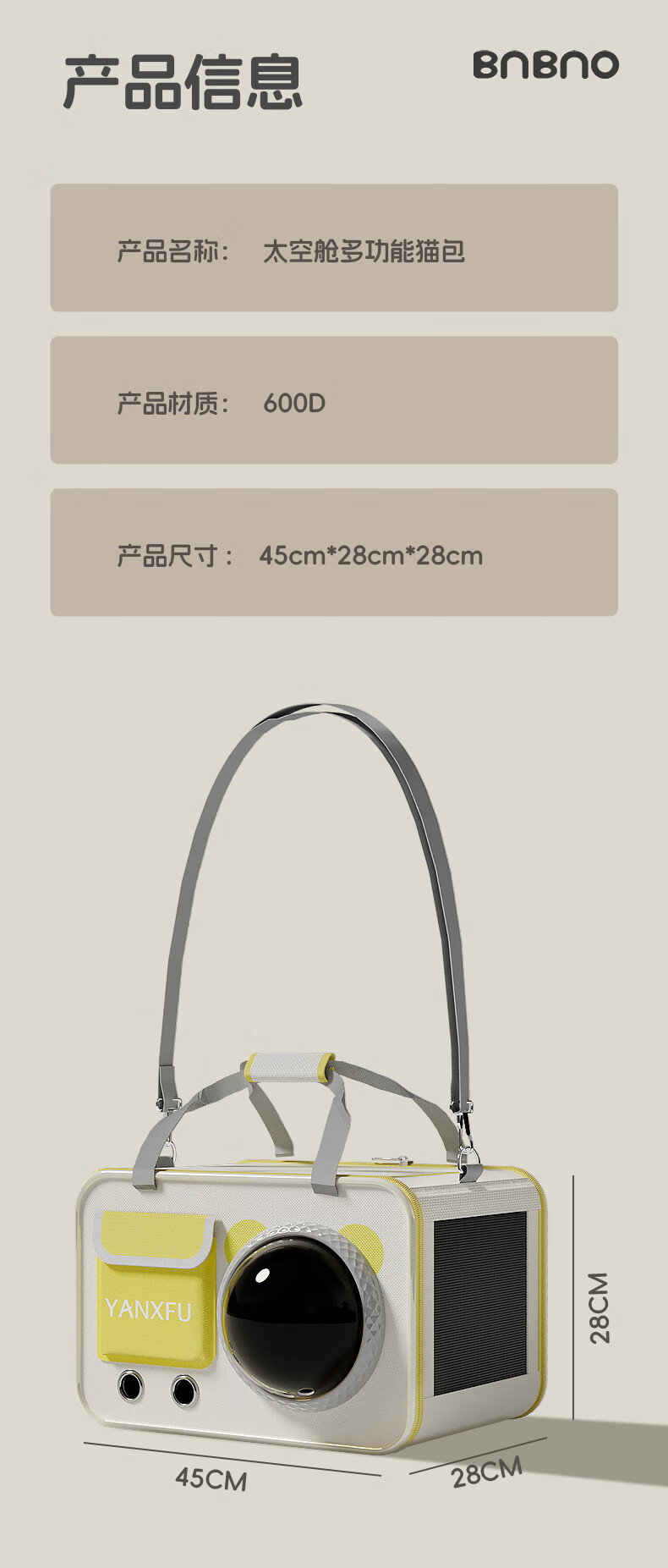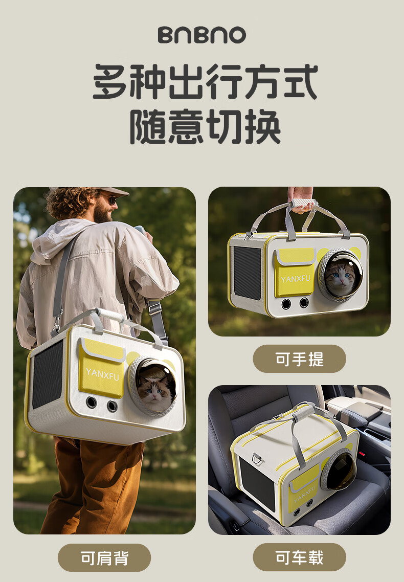 BNBNO猫包外出便携猫咪携带猫笼手提式车载包大容量高颜值单肩宠物背包