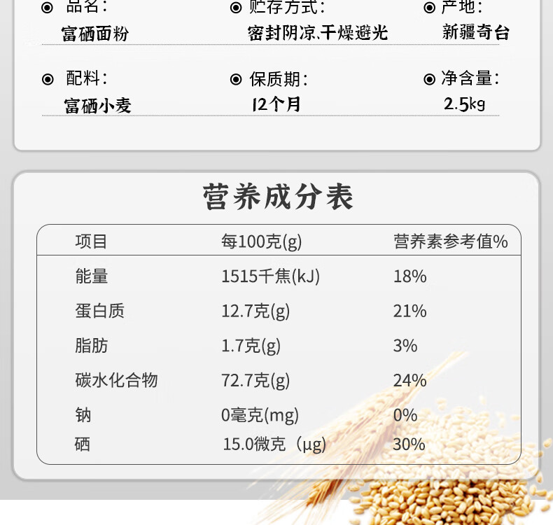 腰站子新疆奇台富硒小麦粉5斤装中强筋家庭通用烘焙面食面粉
