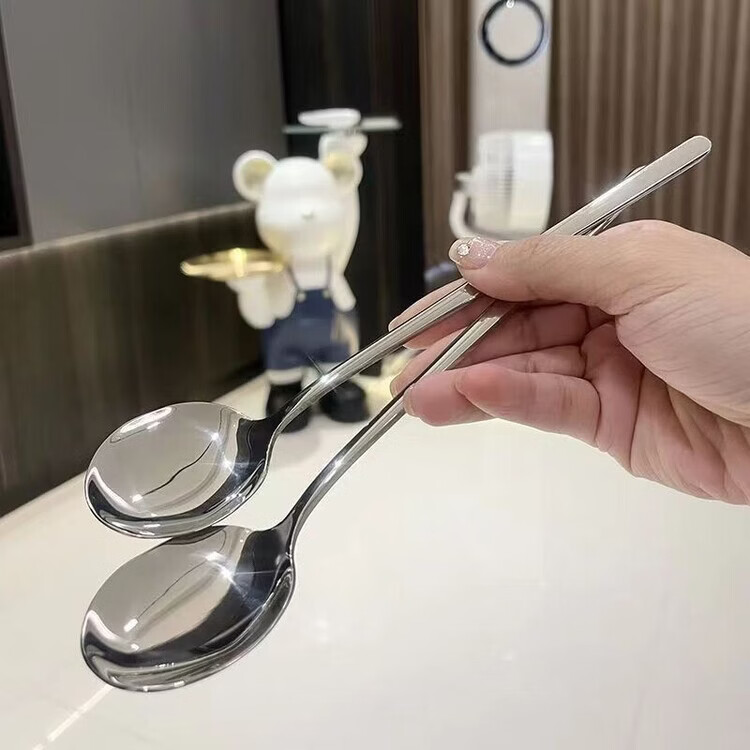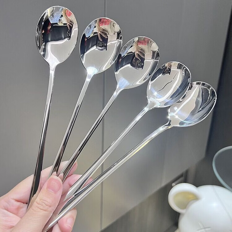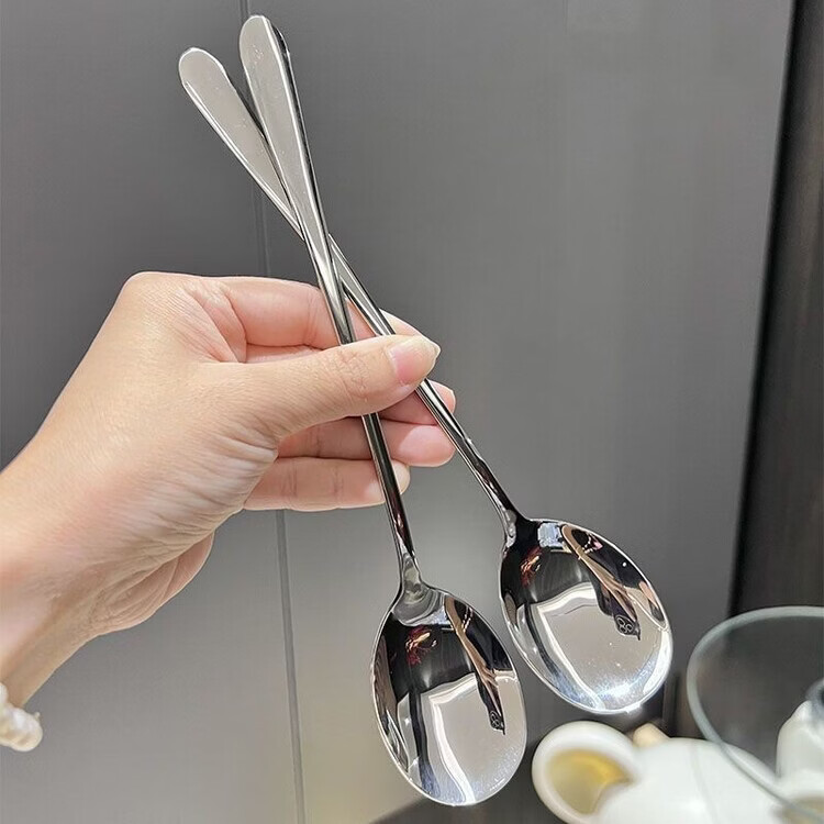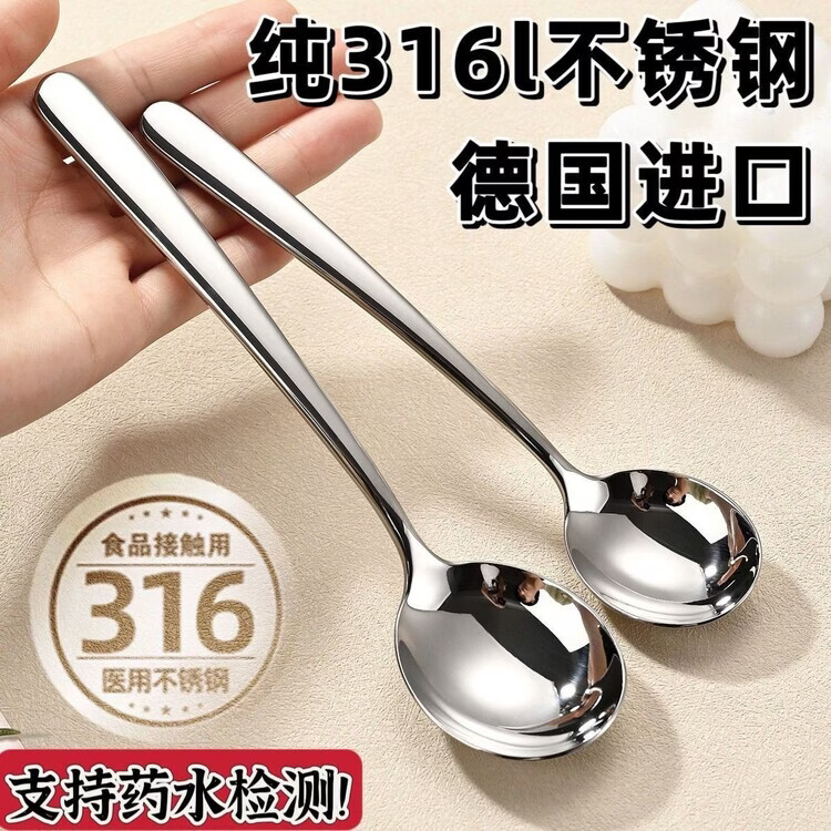 咏夏316不锈钢勺子家用椭圆勺成人长柄吃饭韩式汤匙调羹成人长柄316 特厚大号 优质316钢材10支