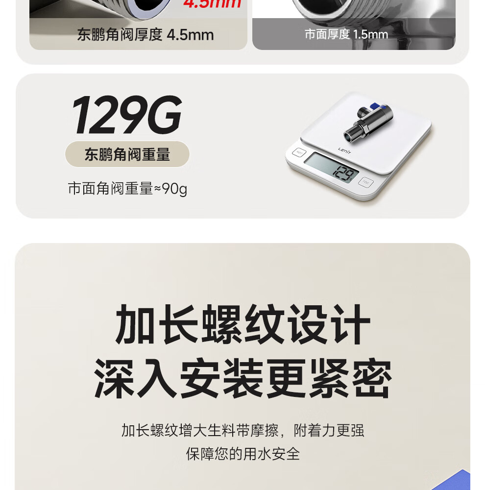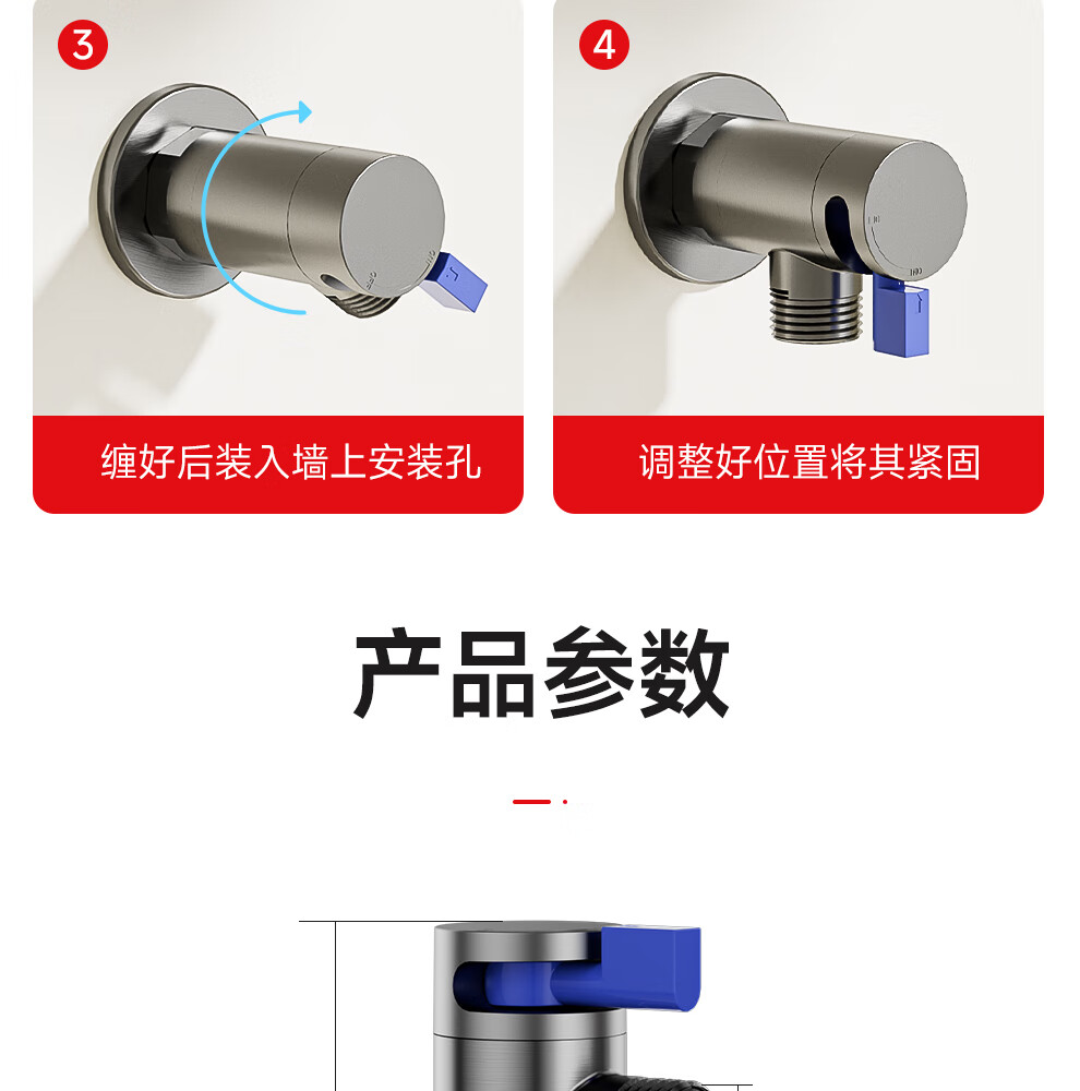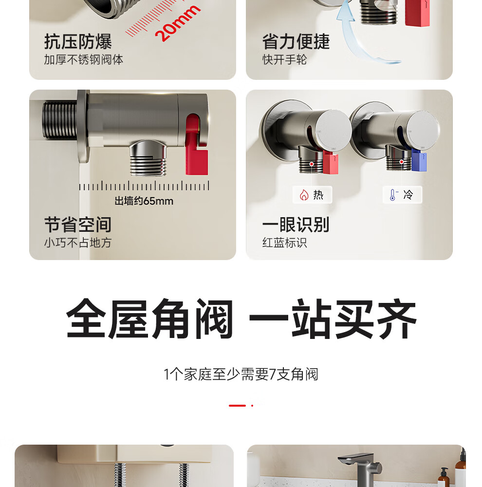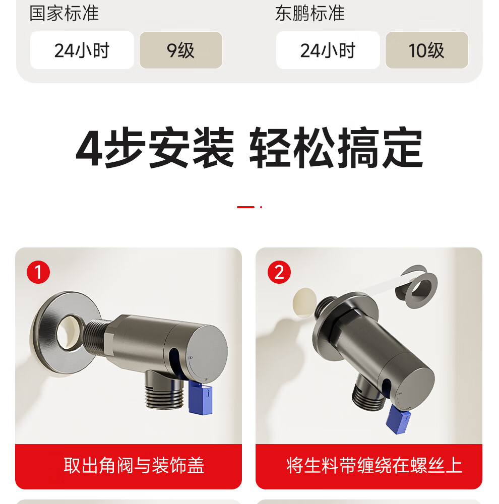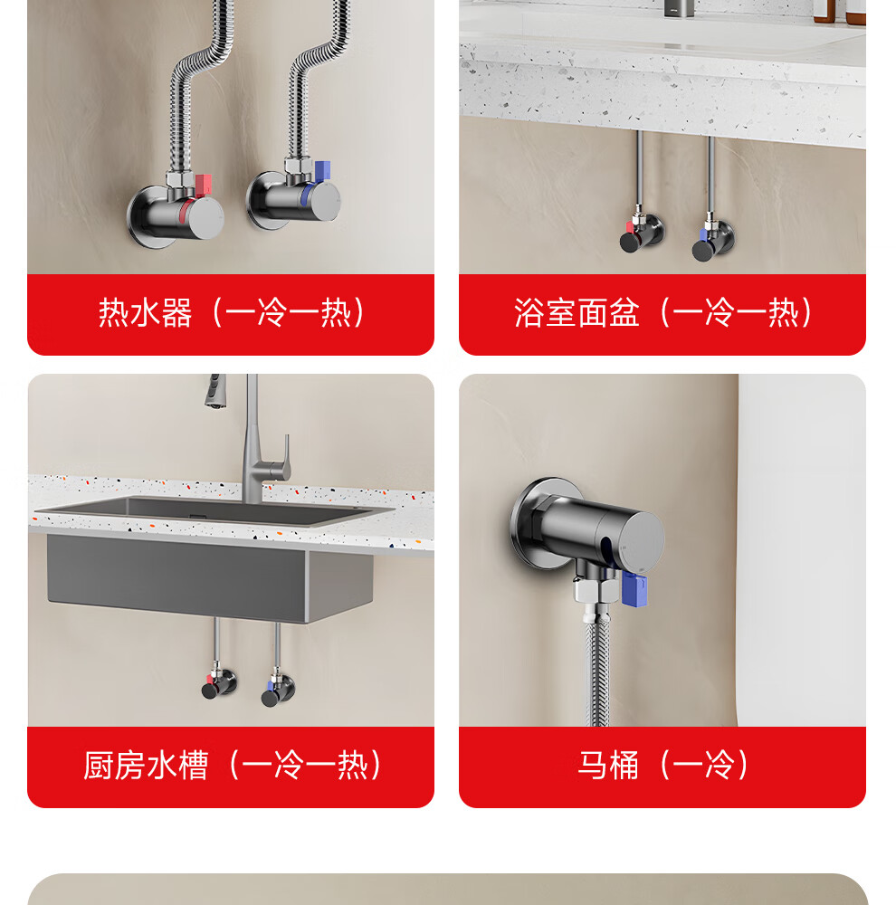 东鹏(DONGPENG)角阀304不锈钢加厚冷热水通用防爆防漏角阀 【九只装】5冷4热角阀枪灰(1厨2卫家庭推荐)