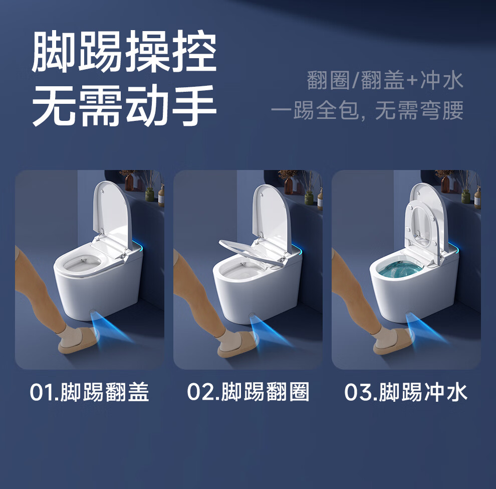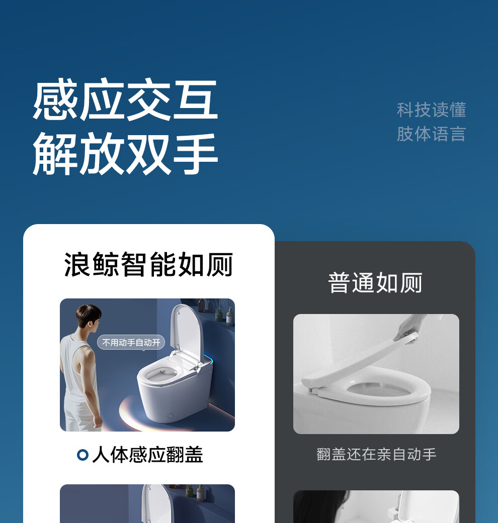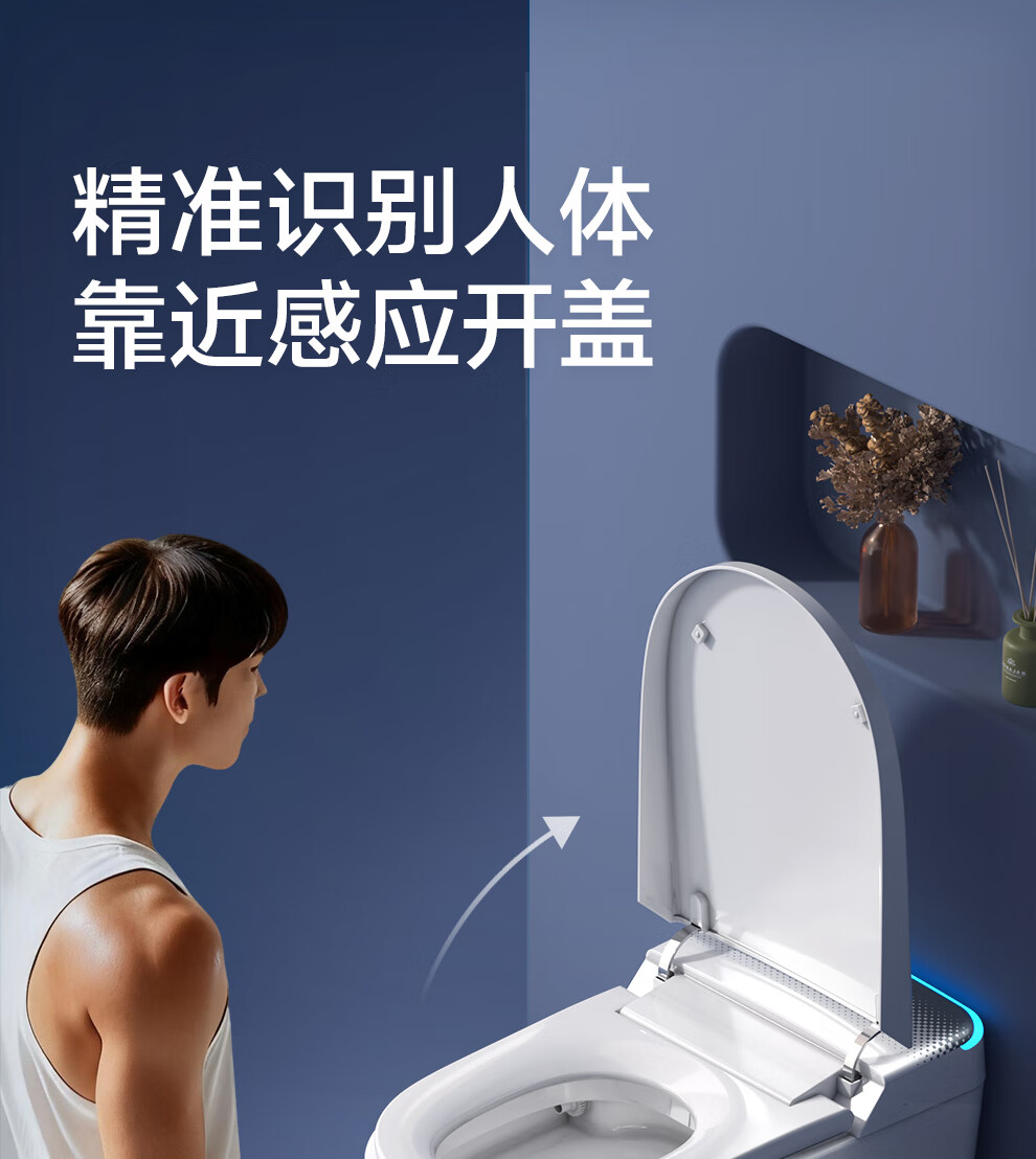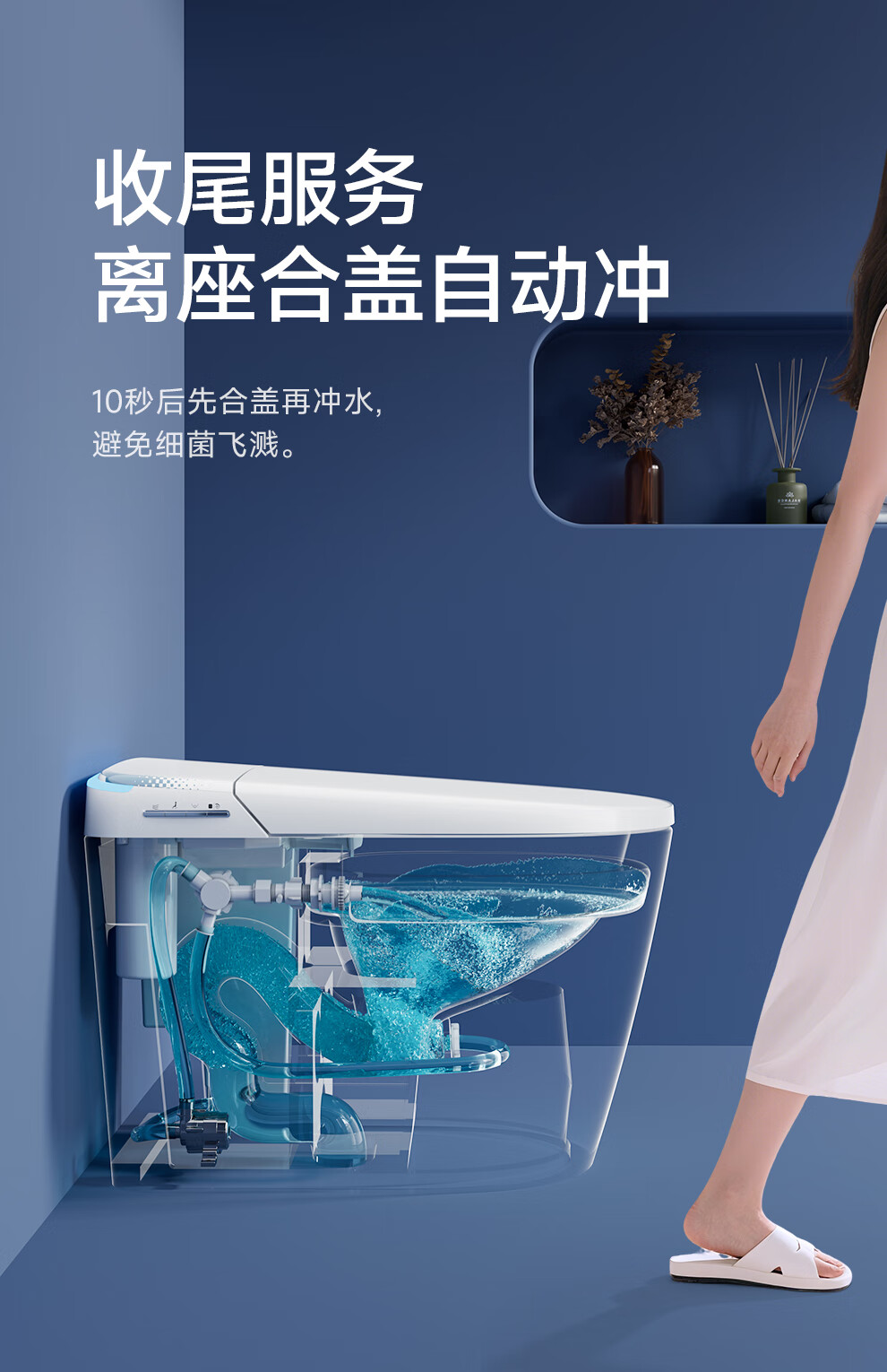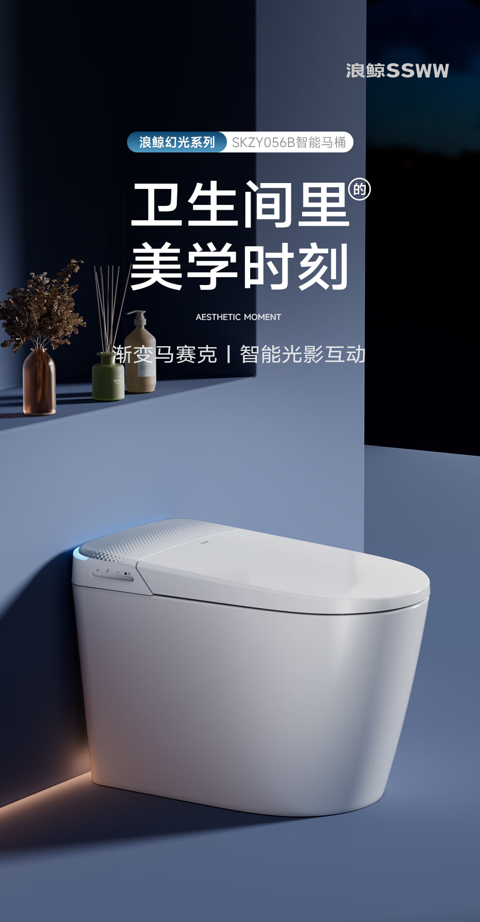浪鲸(SSWW)卫浴智能马桶脚感翻圈翻盖泡沫盾免测水压卫生间家用自动坐便器 幻光056B-305坑距丨UVC过流水杀菌+人体感应翻盖