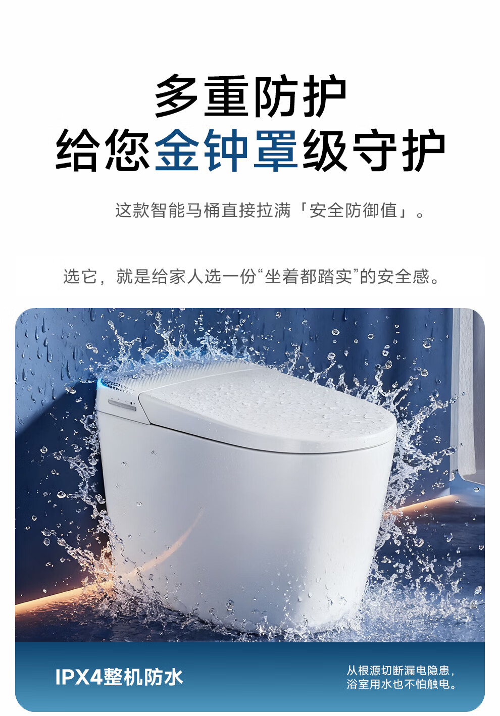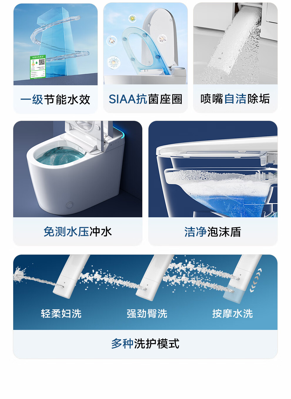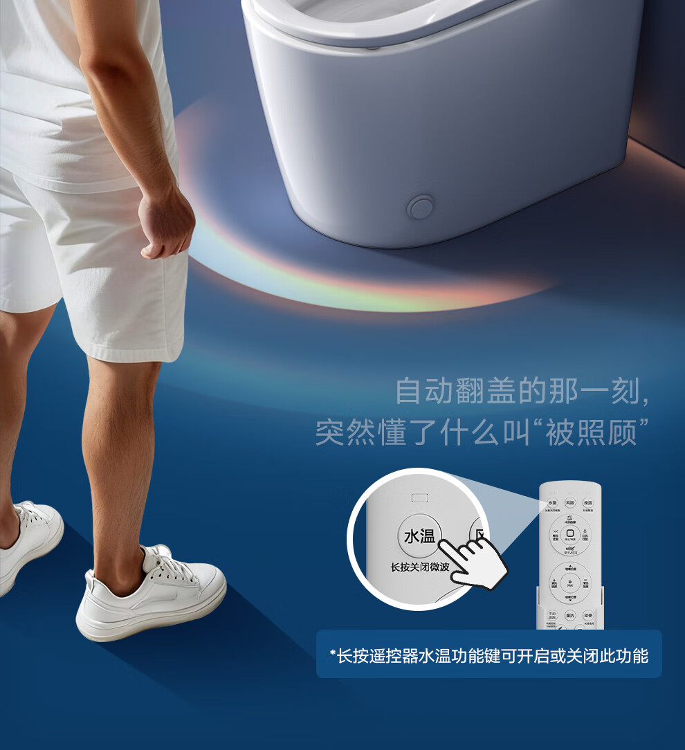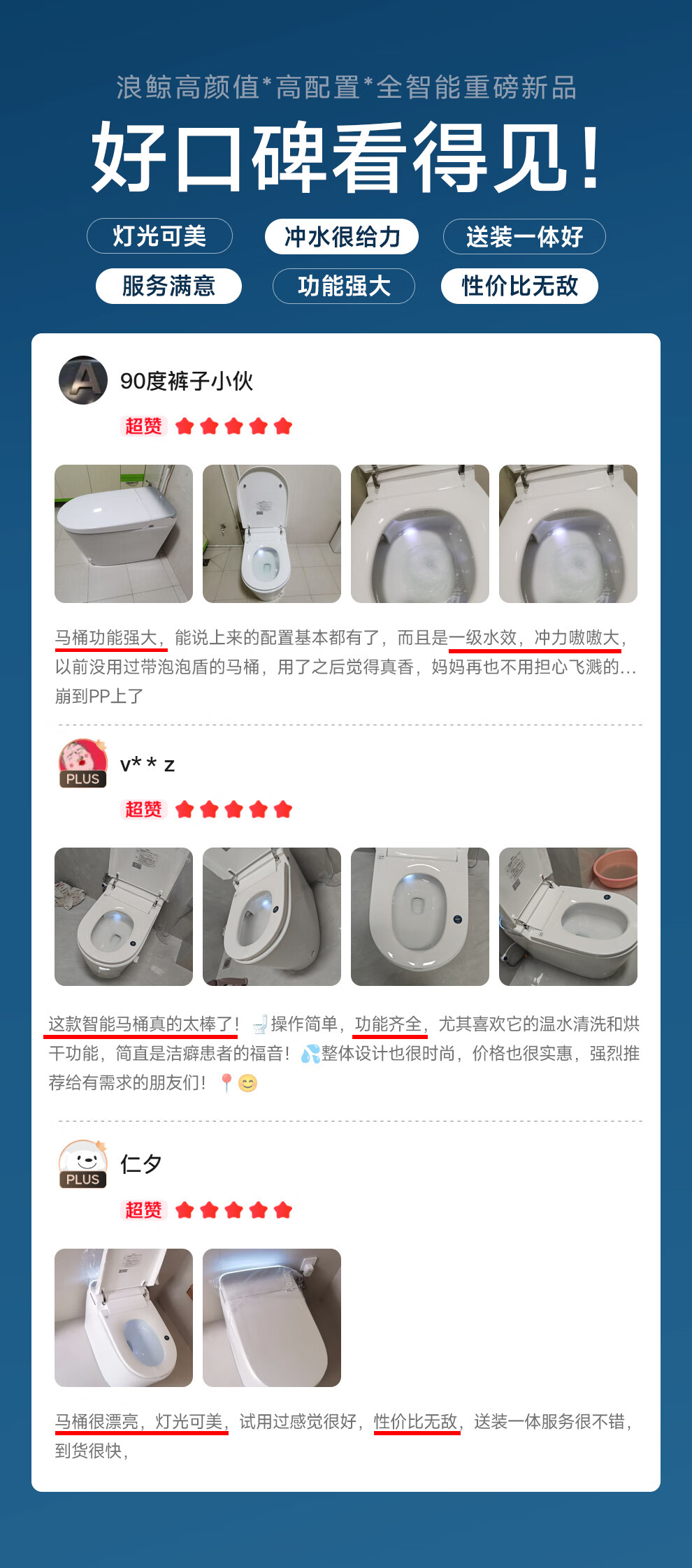 浪鲸(SSWW)卫浴智能马桶脚感翻圈翻盖泡沫盾免测水压卫生间家用自动坐便器 幻光056B-305坑距丨UVC过流水杀菌+人体感应翻盖