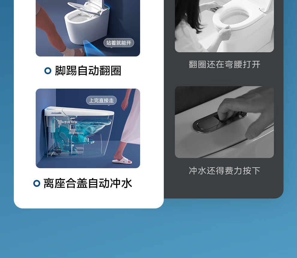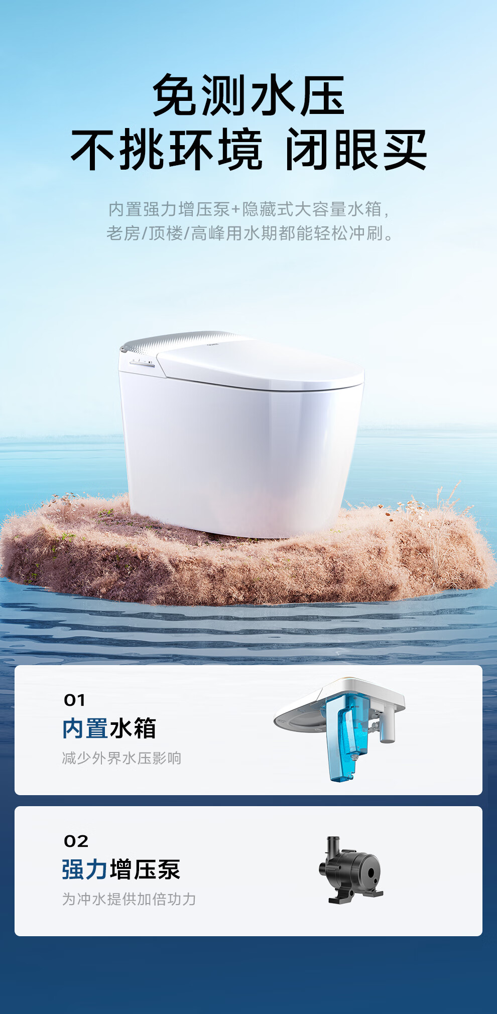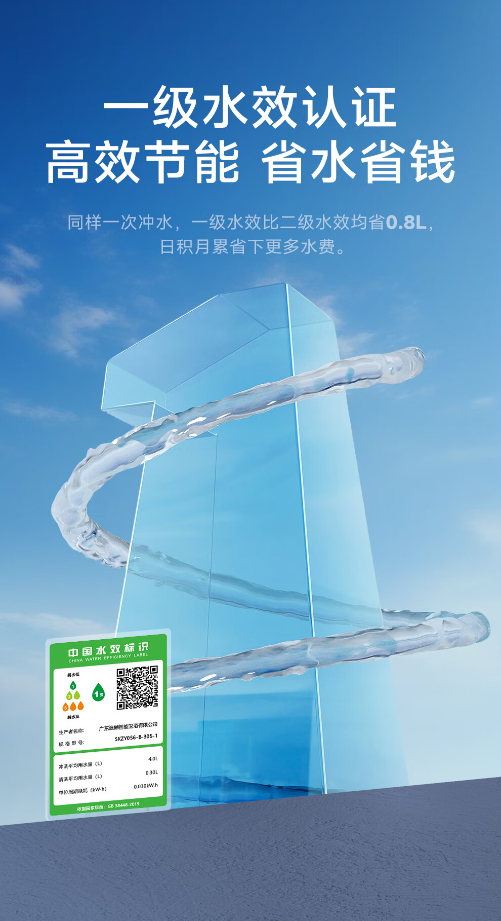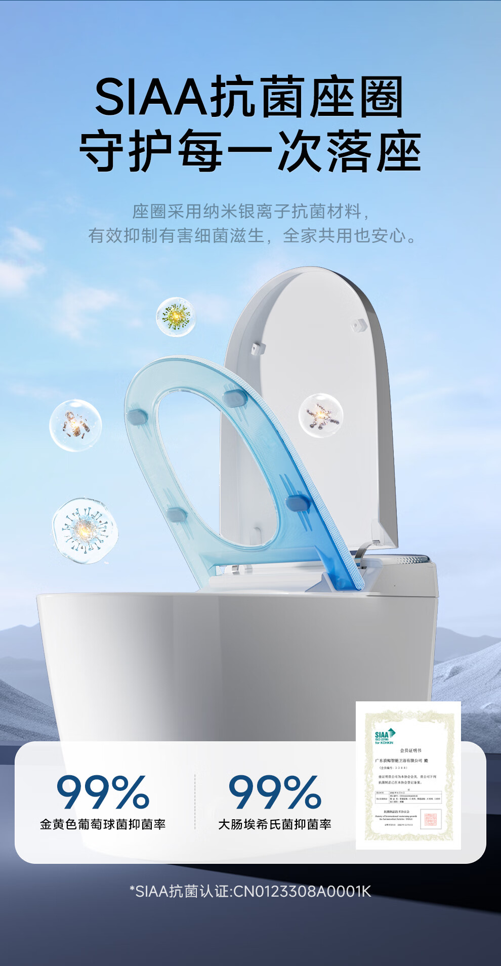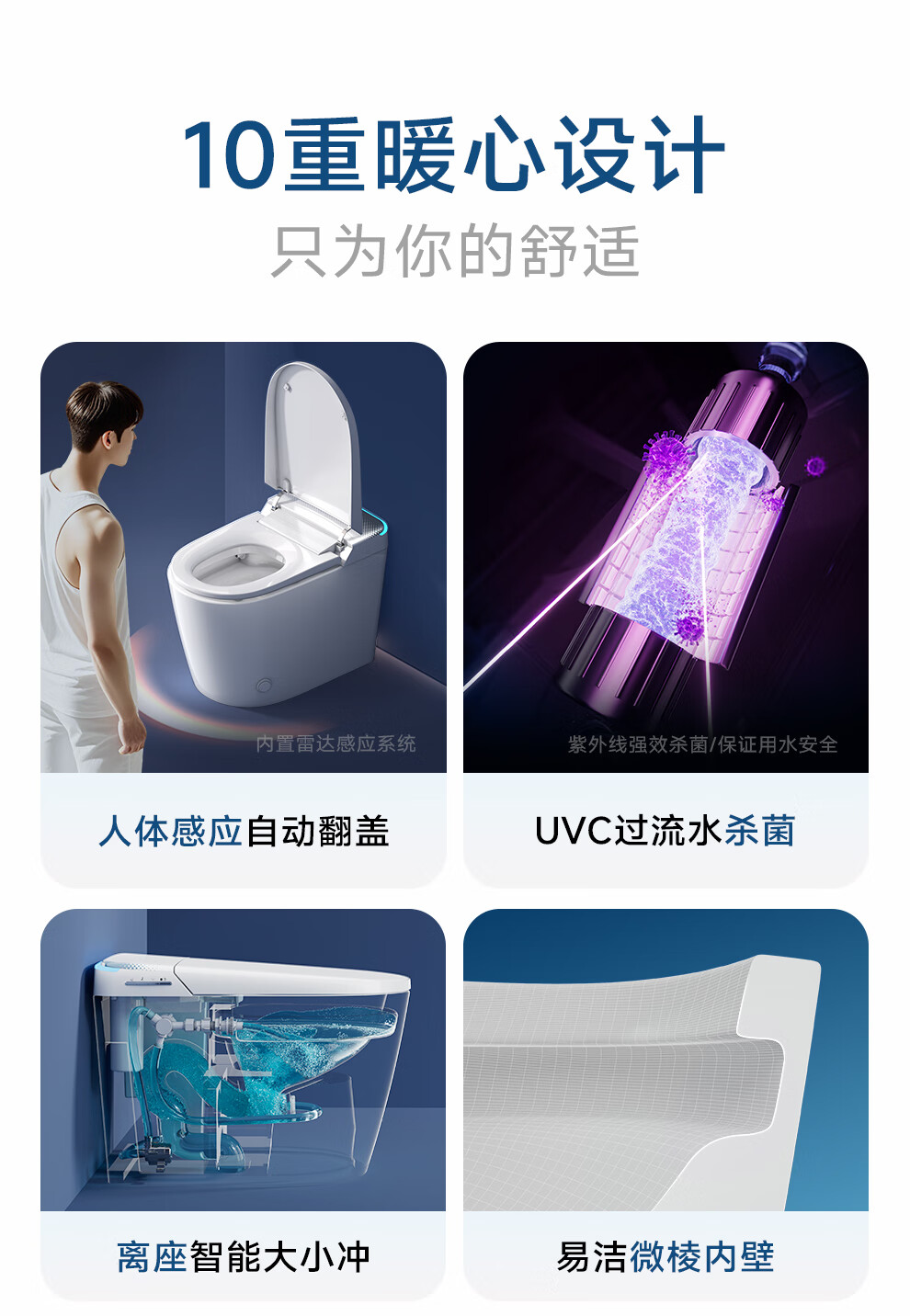 浪鲸(SSWW)卫浴智能马桶脚感翻圈翻盖泡沫盾免测水压卫生间家用自动坐便器 幻光056B-305坑距丨UVC过流水杀菌+人体感应翻盖