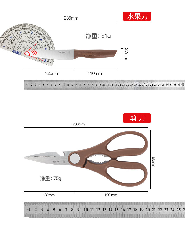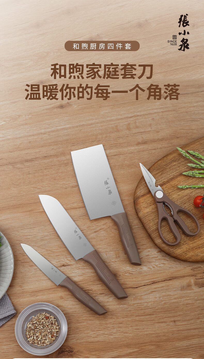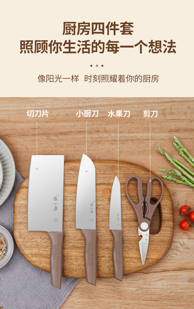 张小泉菜刀不锈钢刀具套装家用切片刀切菜刀水果刀剪刀 【店铺爆款】和煦刀具四件套