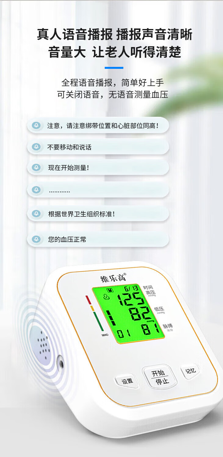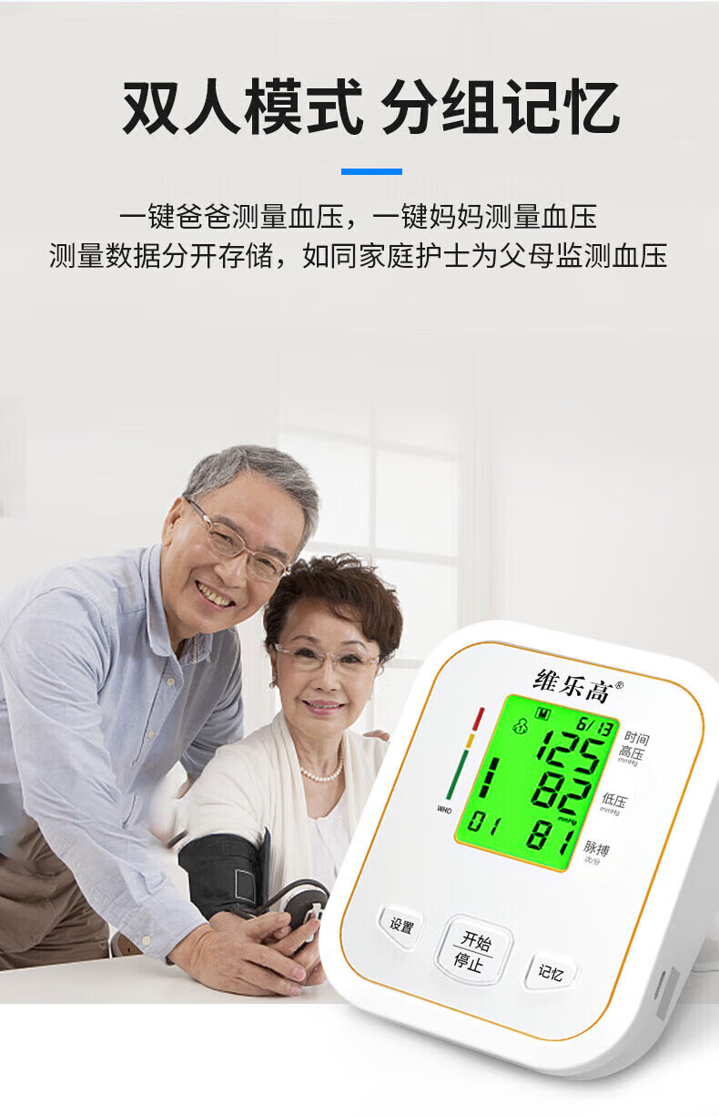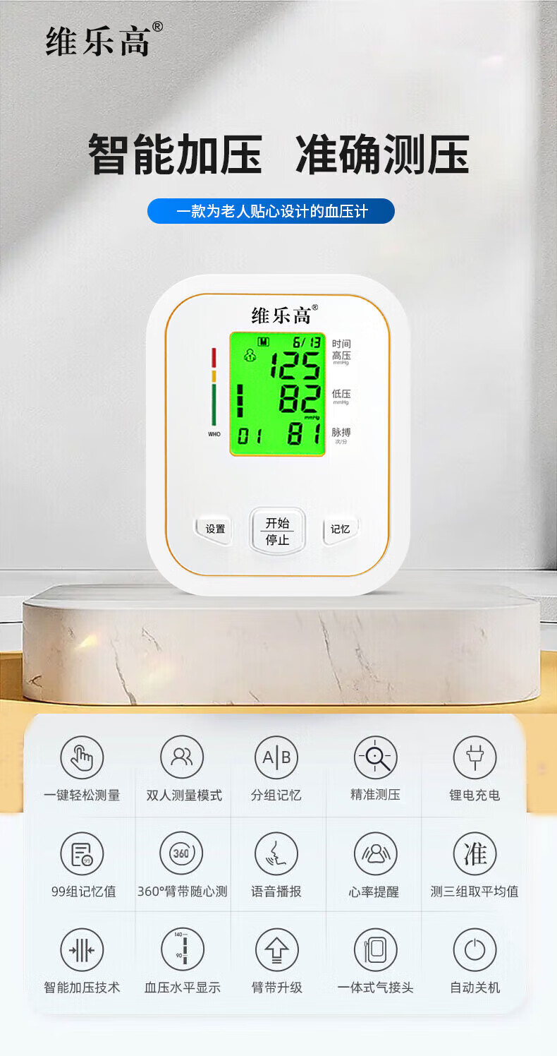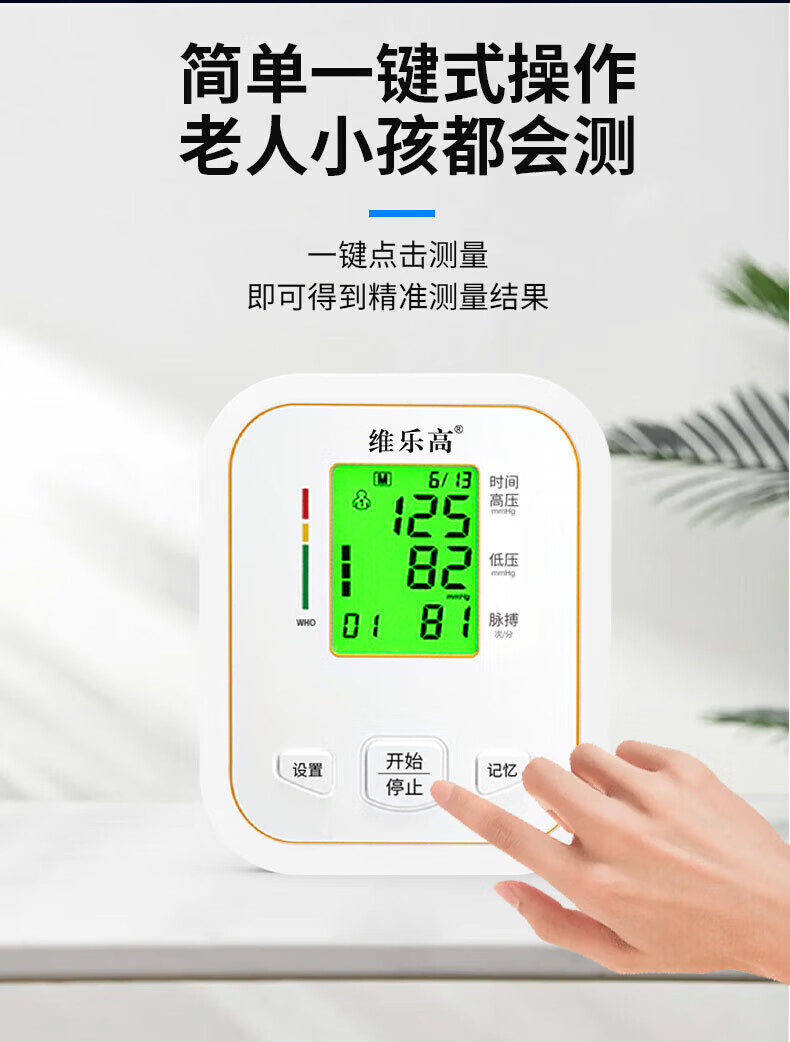 维乐高血压测量仪 血压测量仪家用臂式电子血压计全自动新 锂电池充电语 锂电池充电语音彩屏背光+15年质保