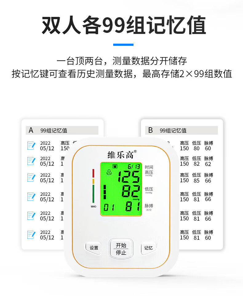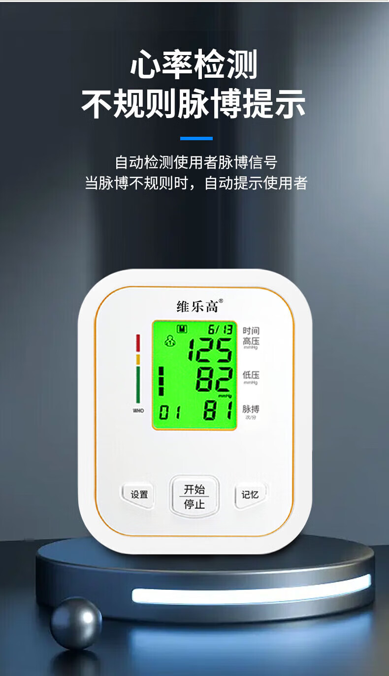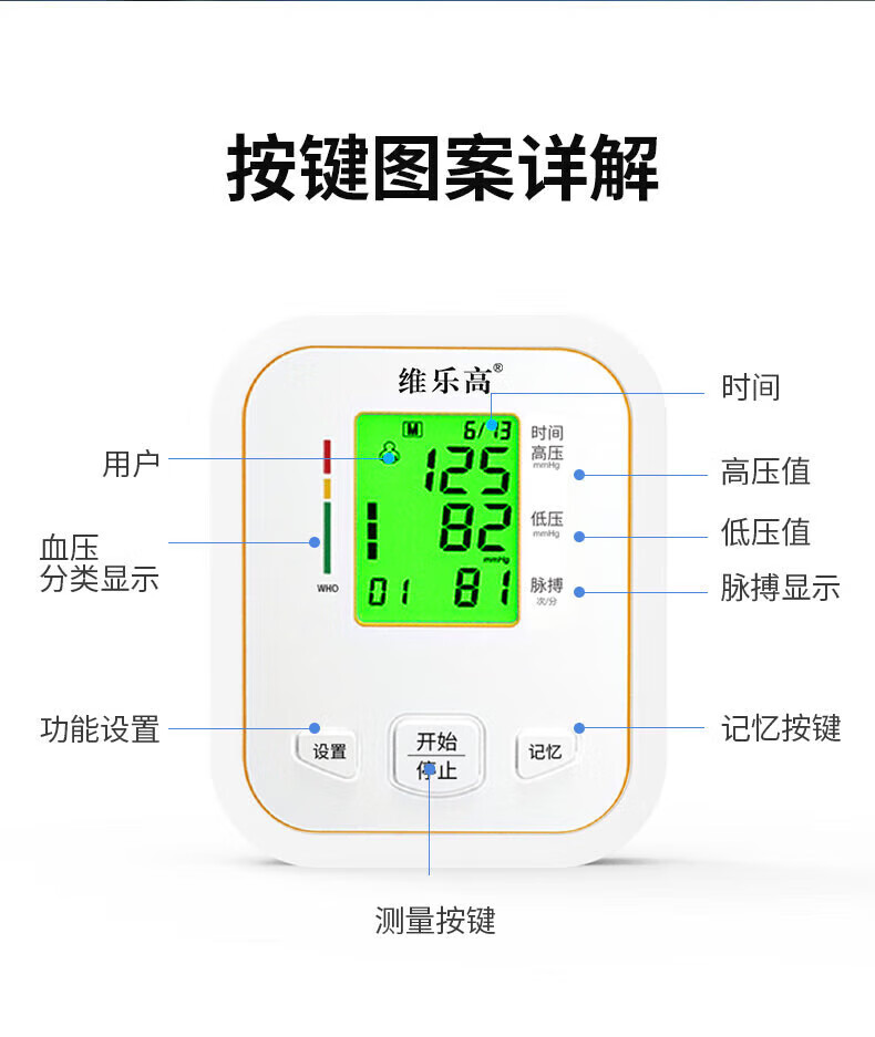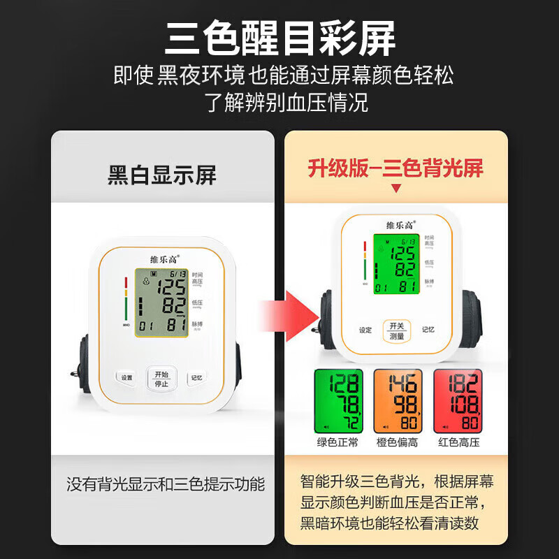 维乐高血压测量仪 血压测量仪家用臂式电子血压计全自动新 锂电池充电语 锂电池充电语音彩屏背光+15年质保