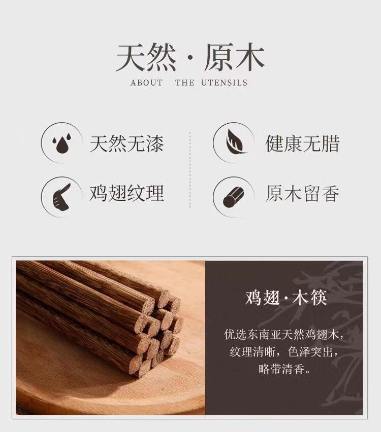 归味归味【加长炸物筷】鸡翅木筷子火锅筷超长无漆无蜡长款防烫 鸡翅木筷子10双装