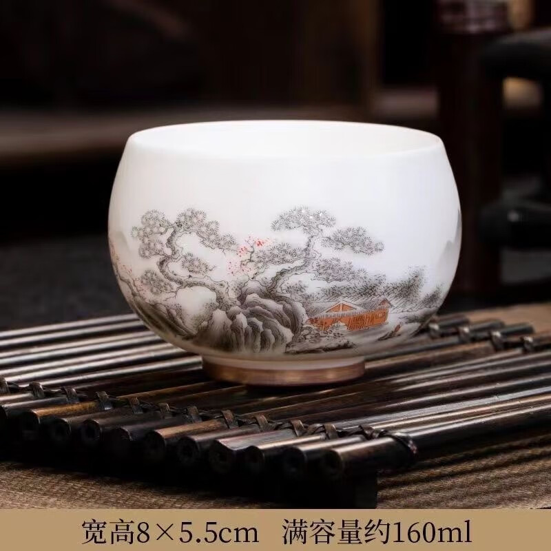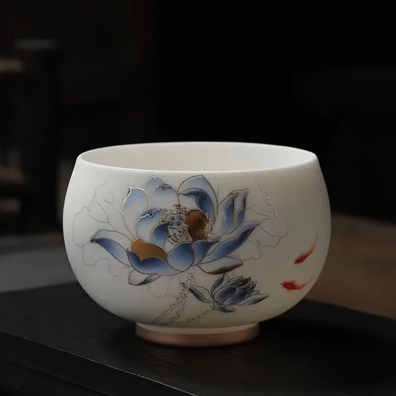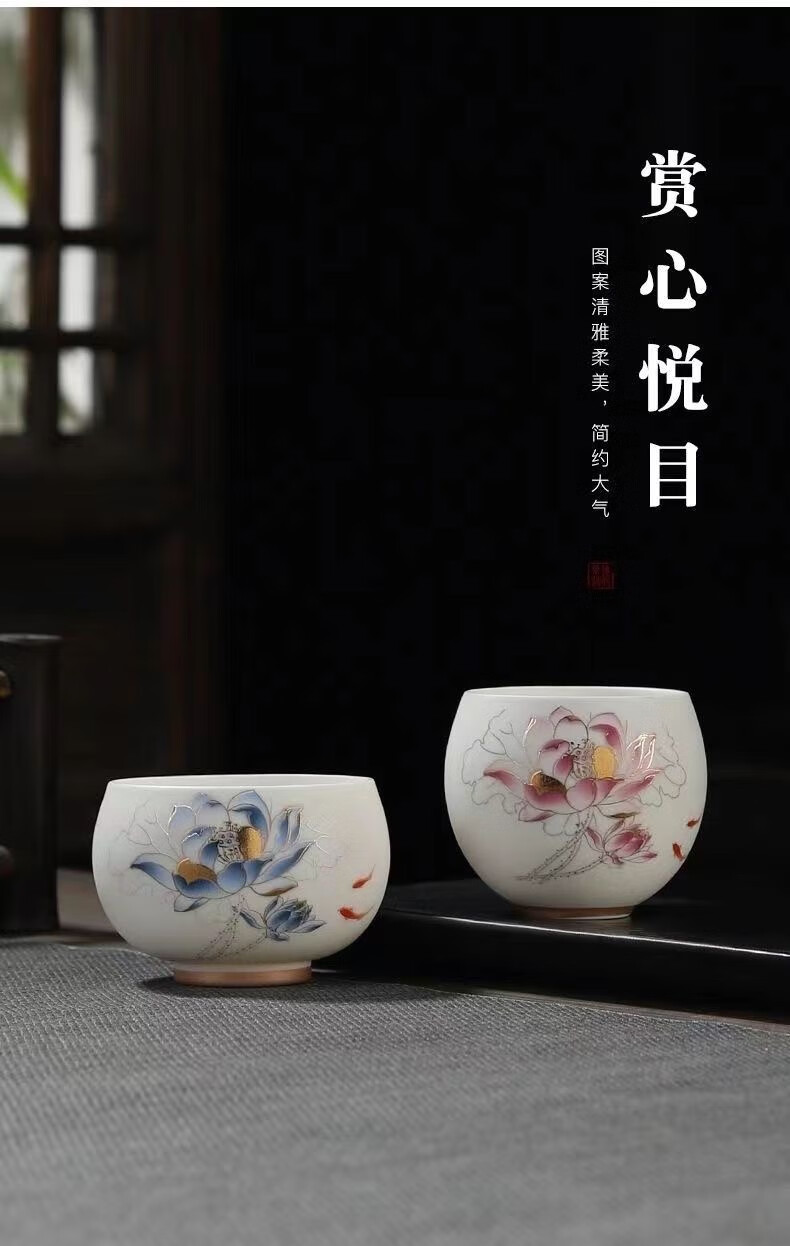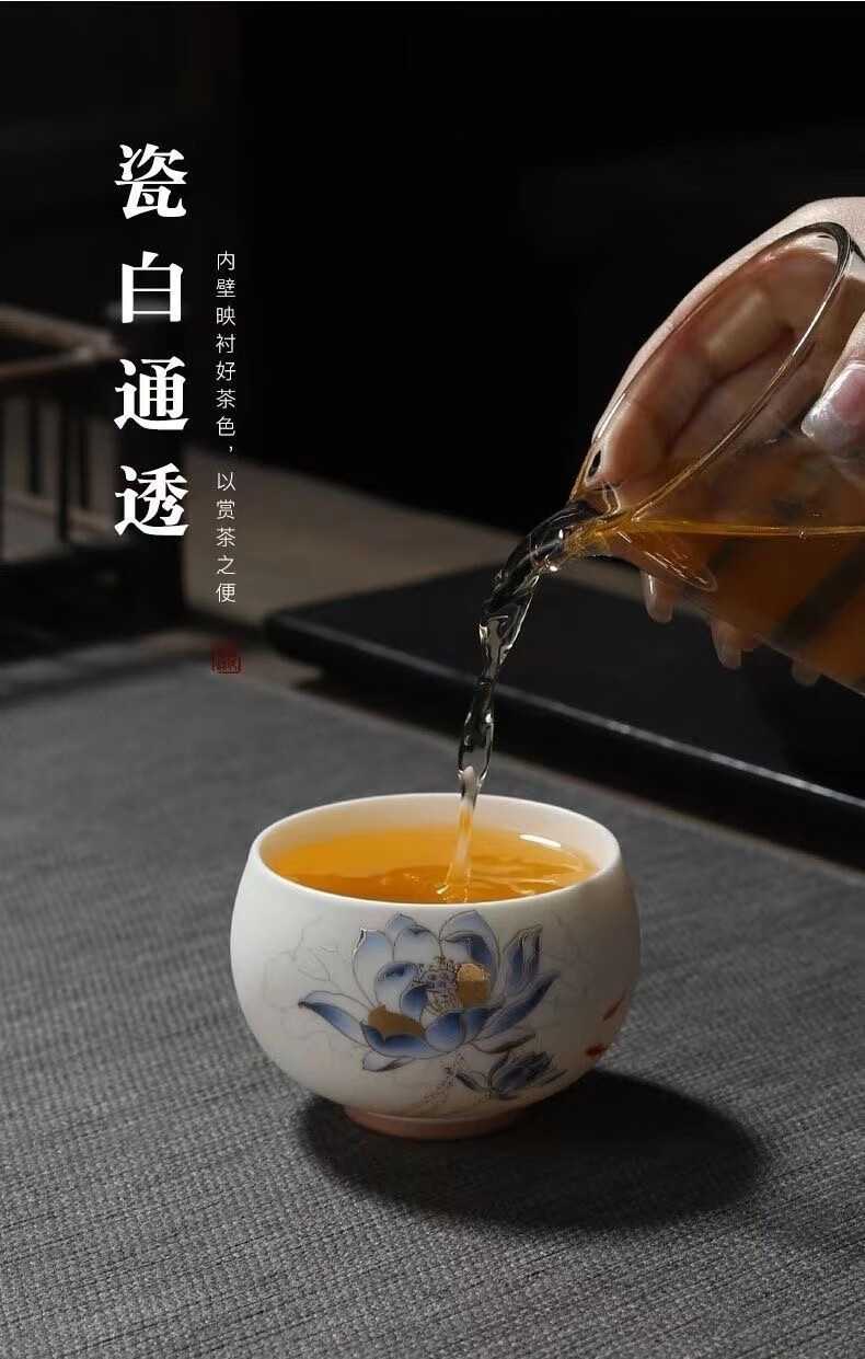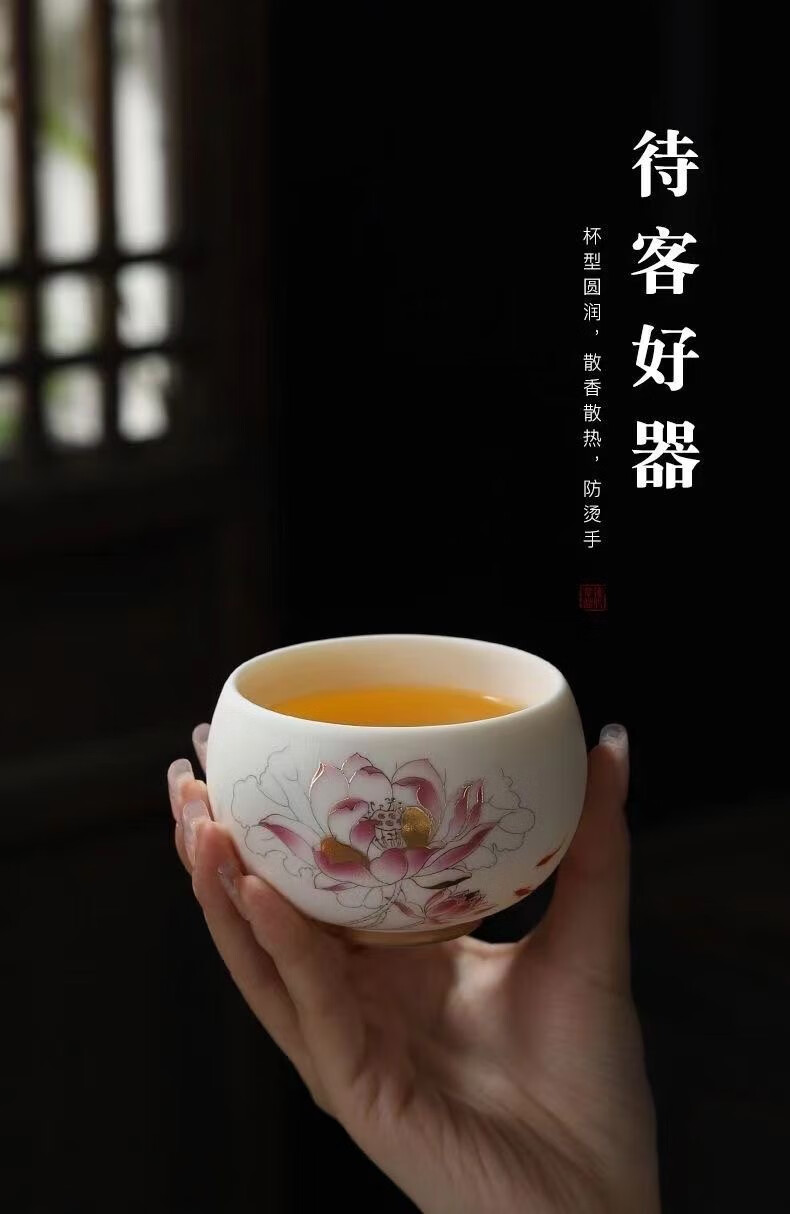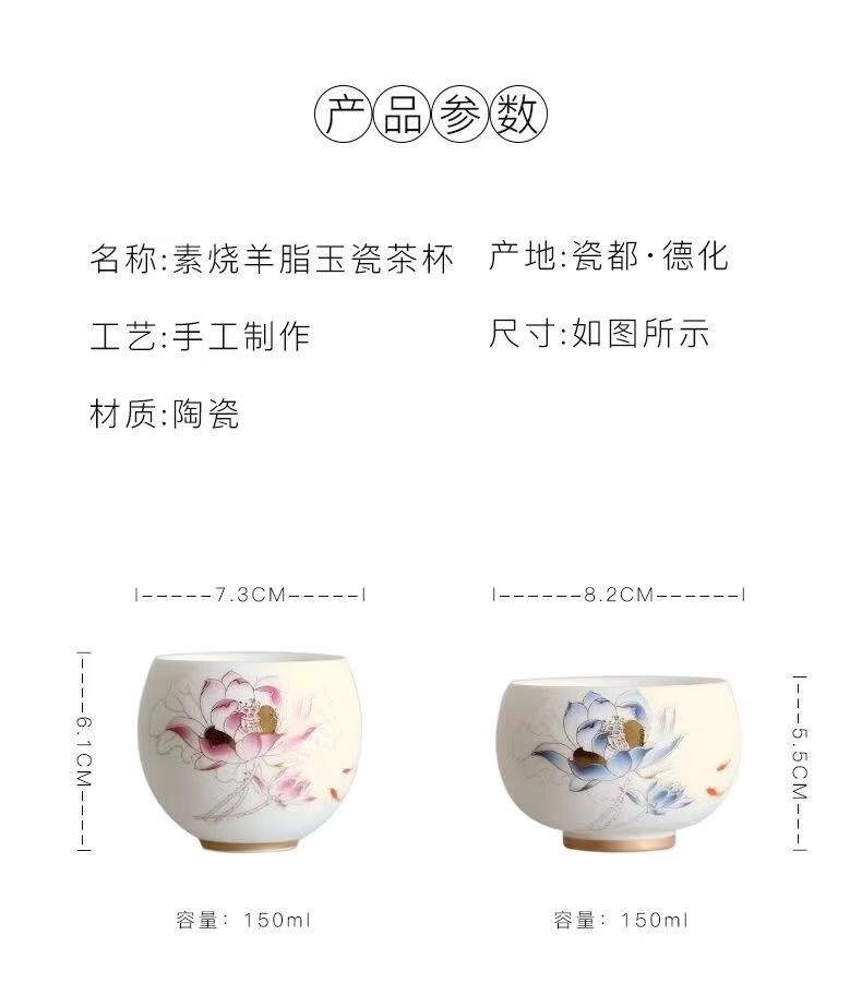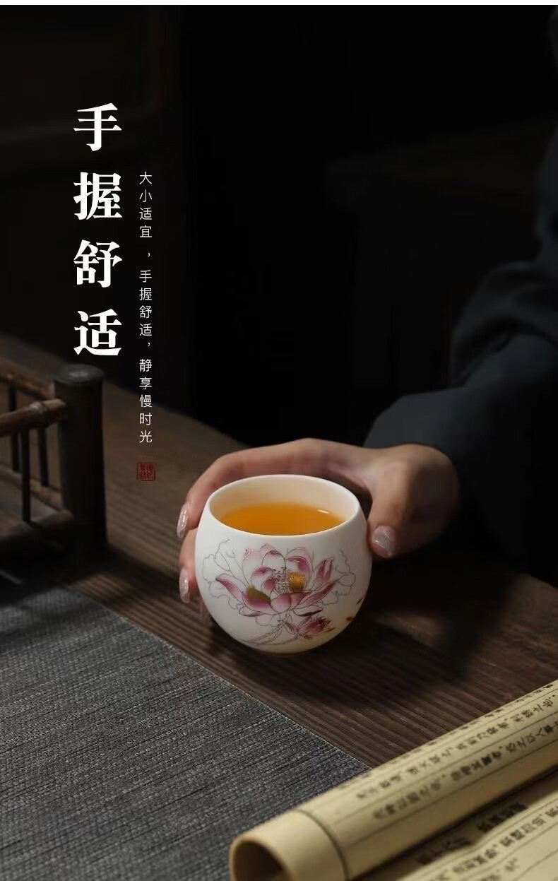 希格鲨羊脂玉瓷素烧主人杯冰种茶杯家用品茗杯茶盏个人专用轻奢功夫茶具 素烧羊脂玉瓷红莲花禅定杯 无规格