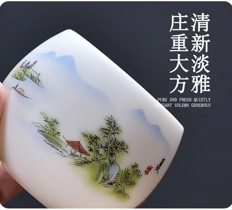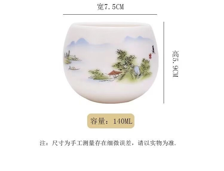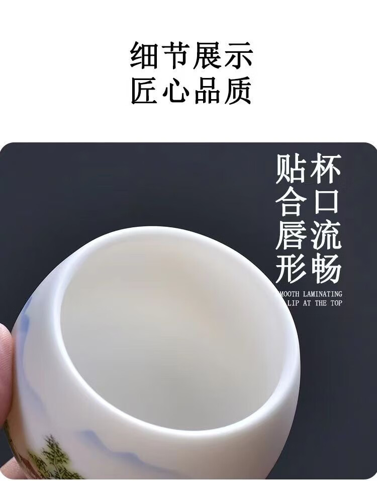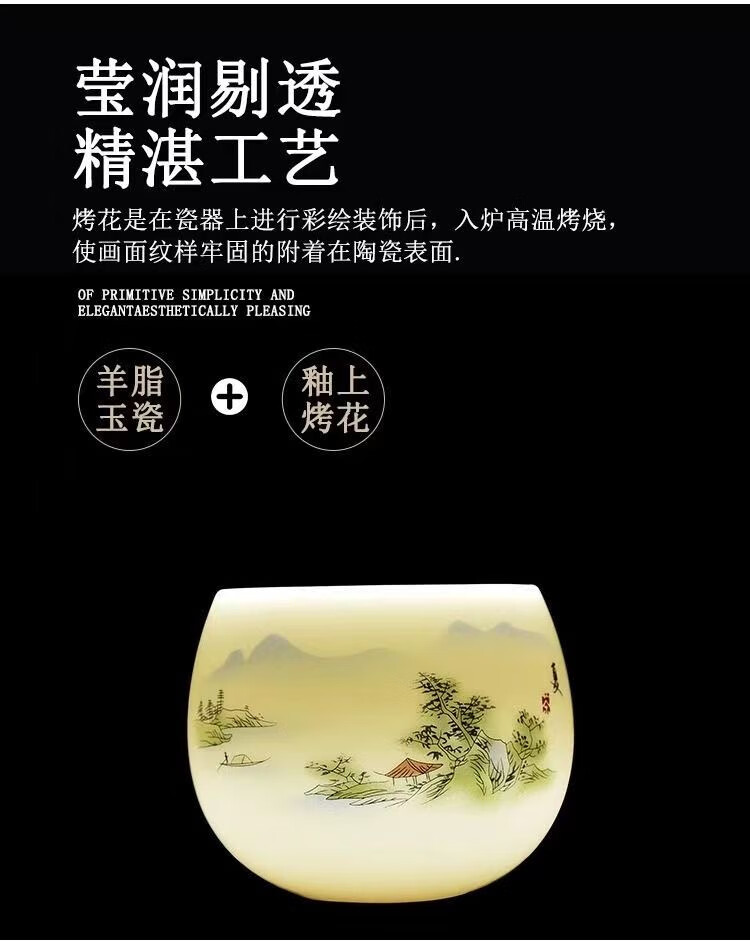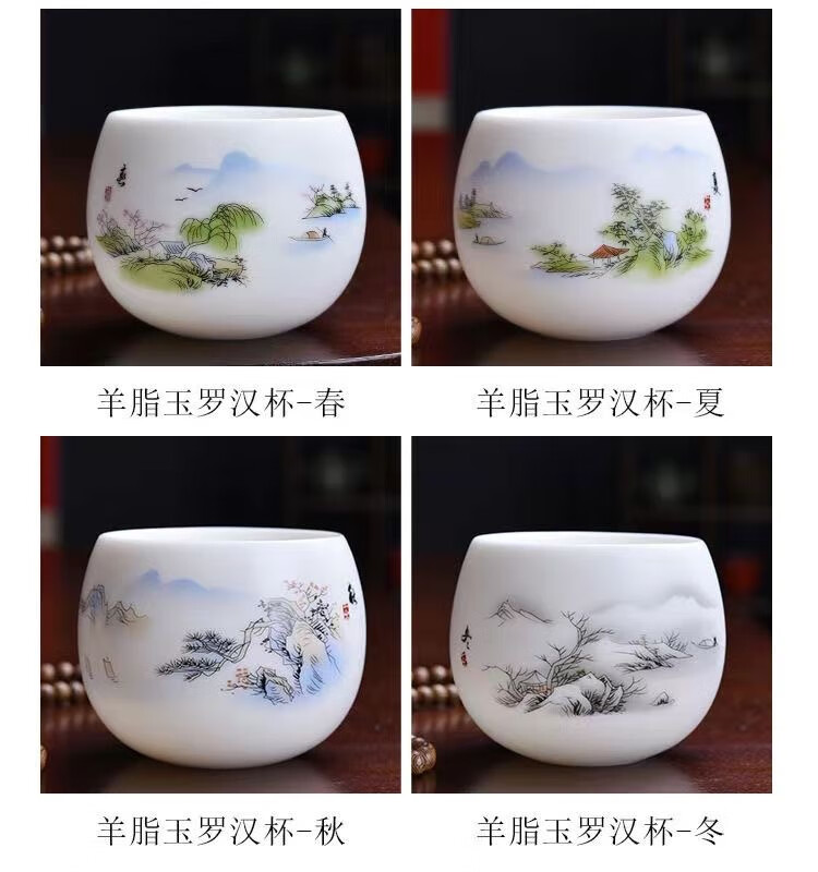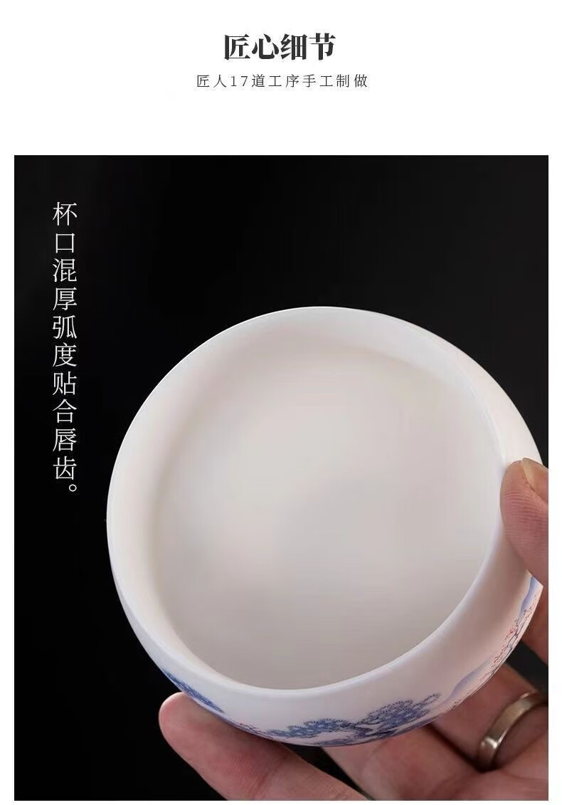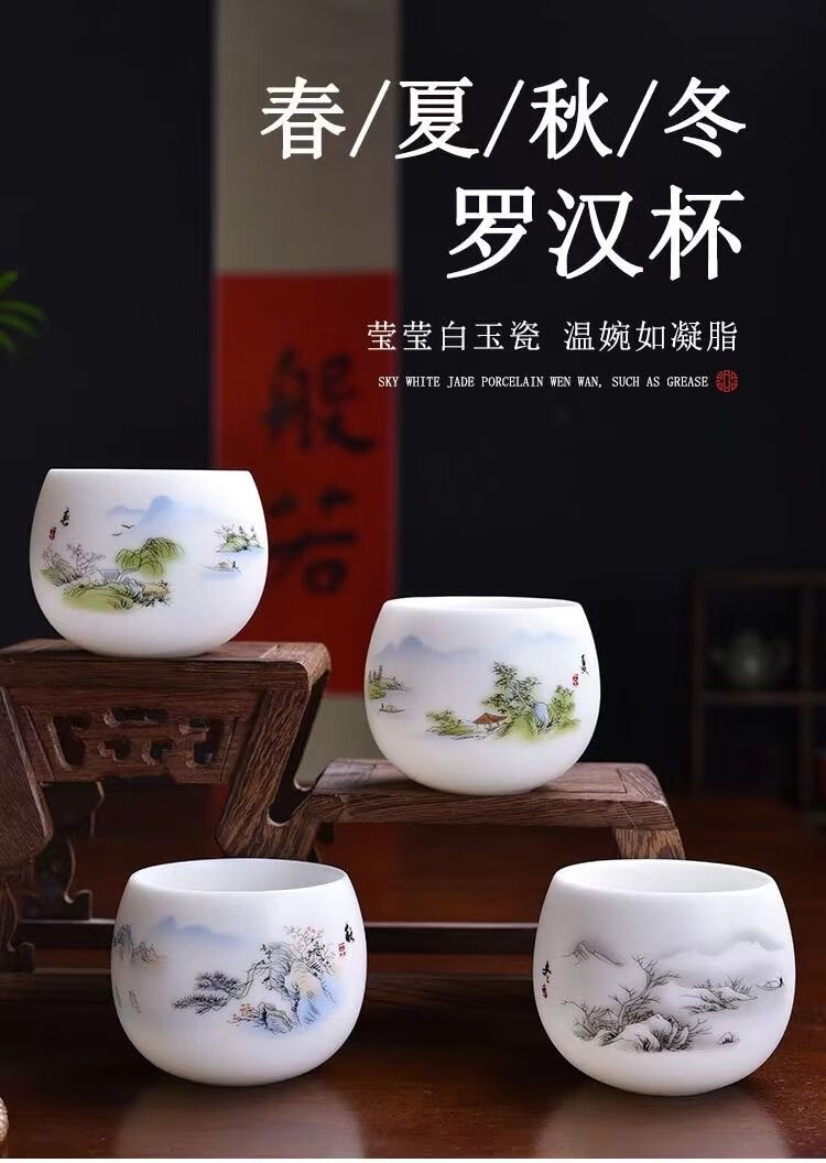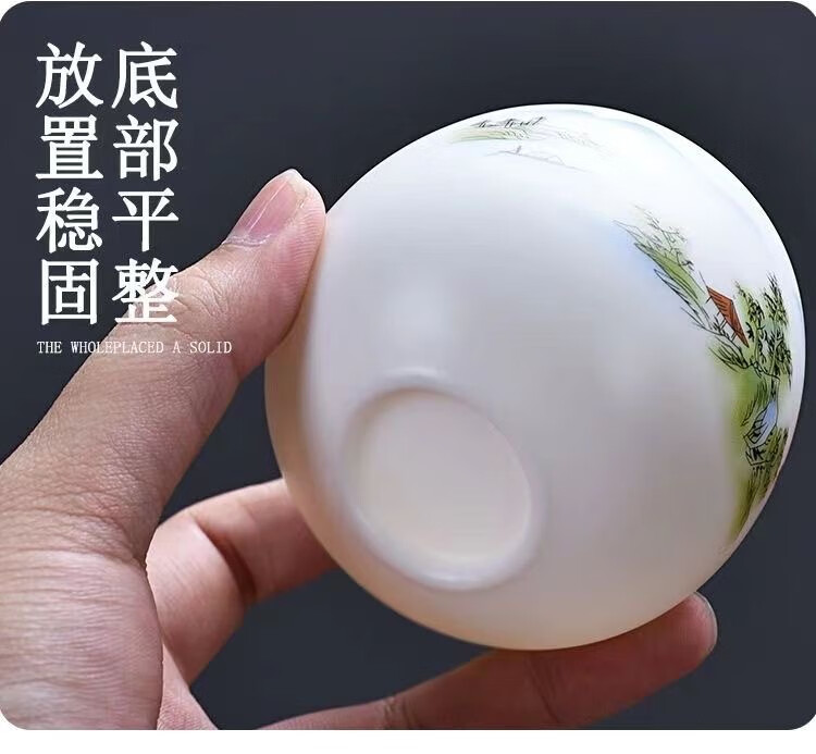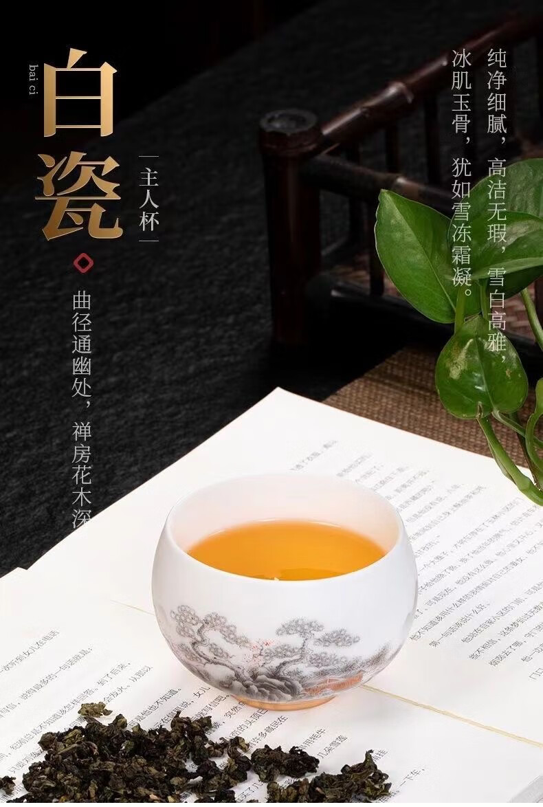 希格鲨羊脂玉瓷素烧主人杯冰种茶杯家用品茗杯茶盏个人专用轻奢功夫茶具 素烧羊脂玉瓷红莲花禅定杯 无规格
