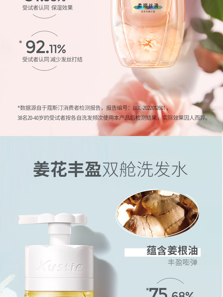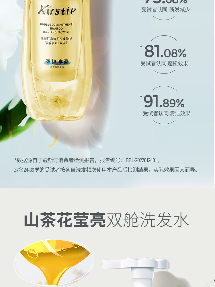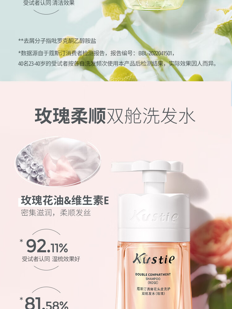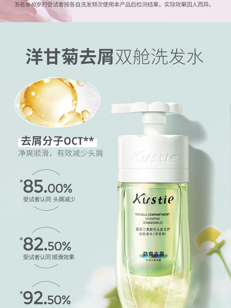 蔻斯汀(Kustie)双舱洗发水洗头膏护发素去油蓬松去屑止痒洗护套装柔顺香滑男女 【头屑易痒首选】洋甘菊双舱500g+护发乳500g