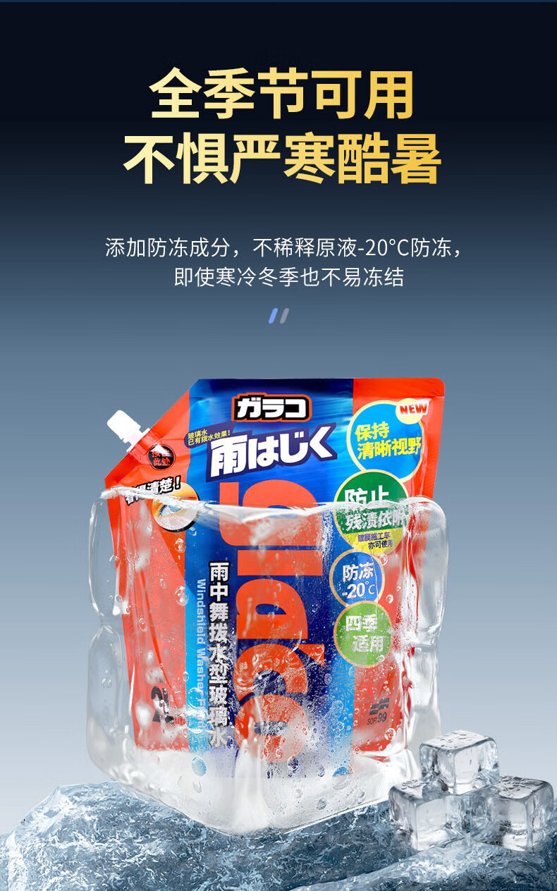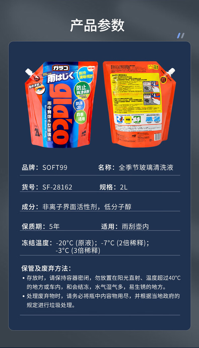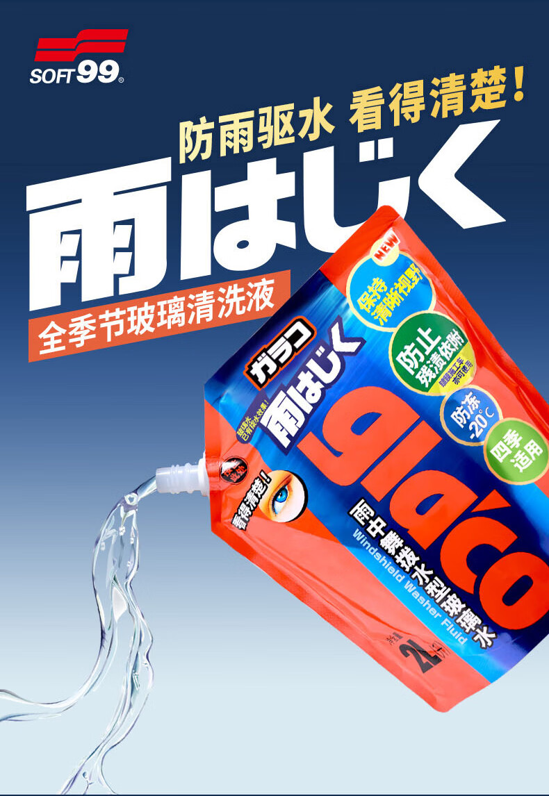 SOFT99镀膜型防冻玻璃水-20℃ 四季通用雨刮水强力去污去油膜汽车玻璃水 2L*6袋