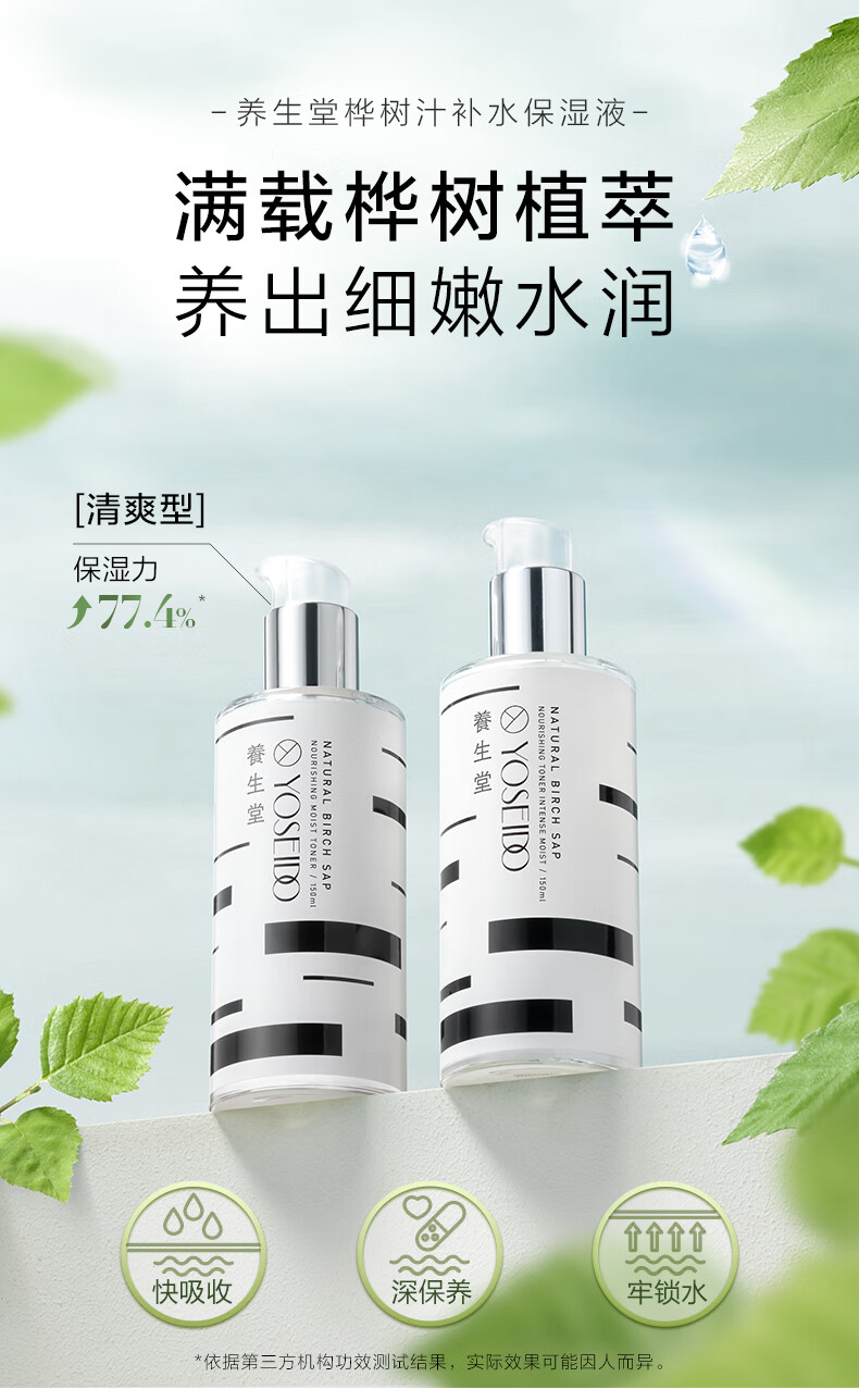 养生堂 天然桦树汁补水保湿液80ml 保湿水爽肤水清爽不油腻护肤 80ml