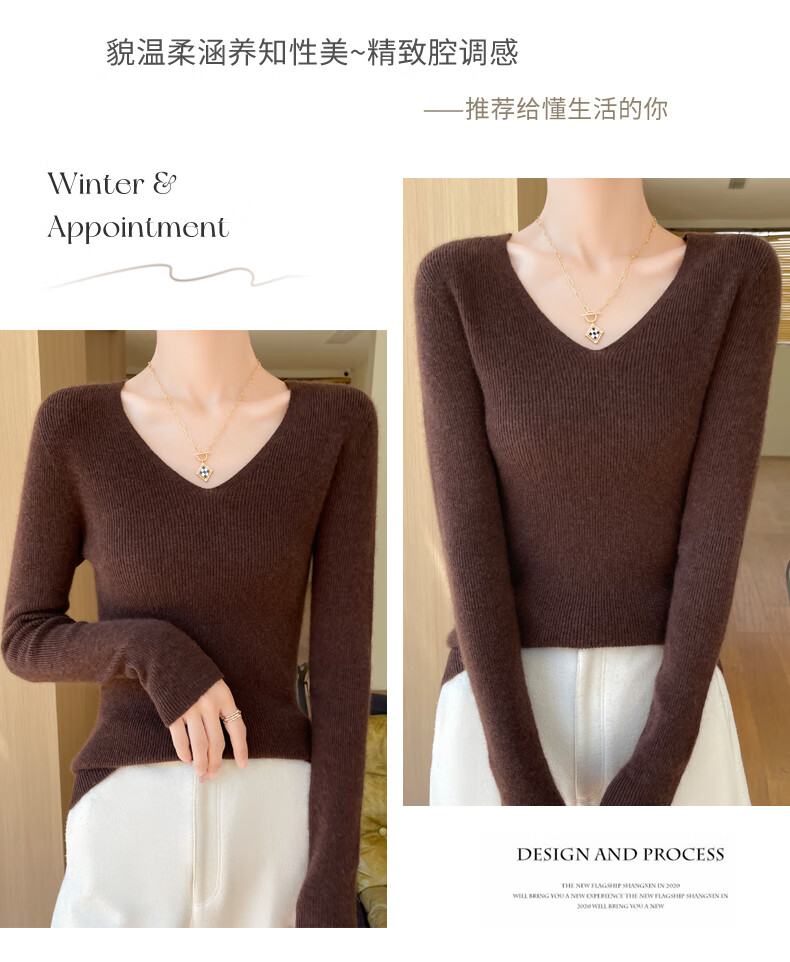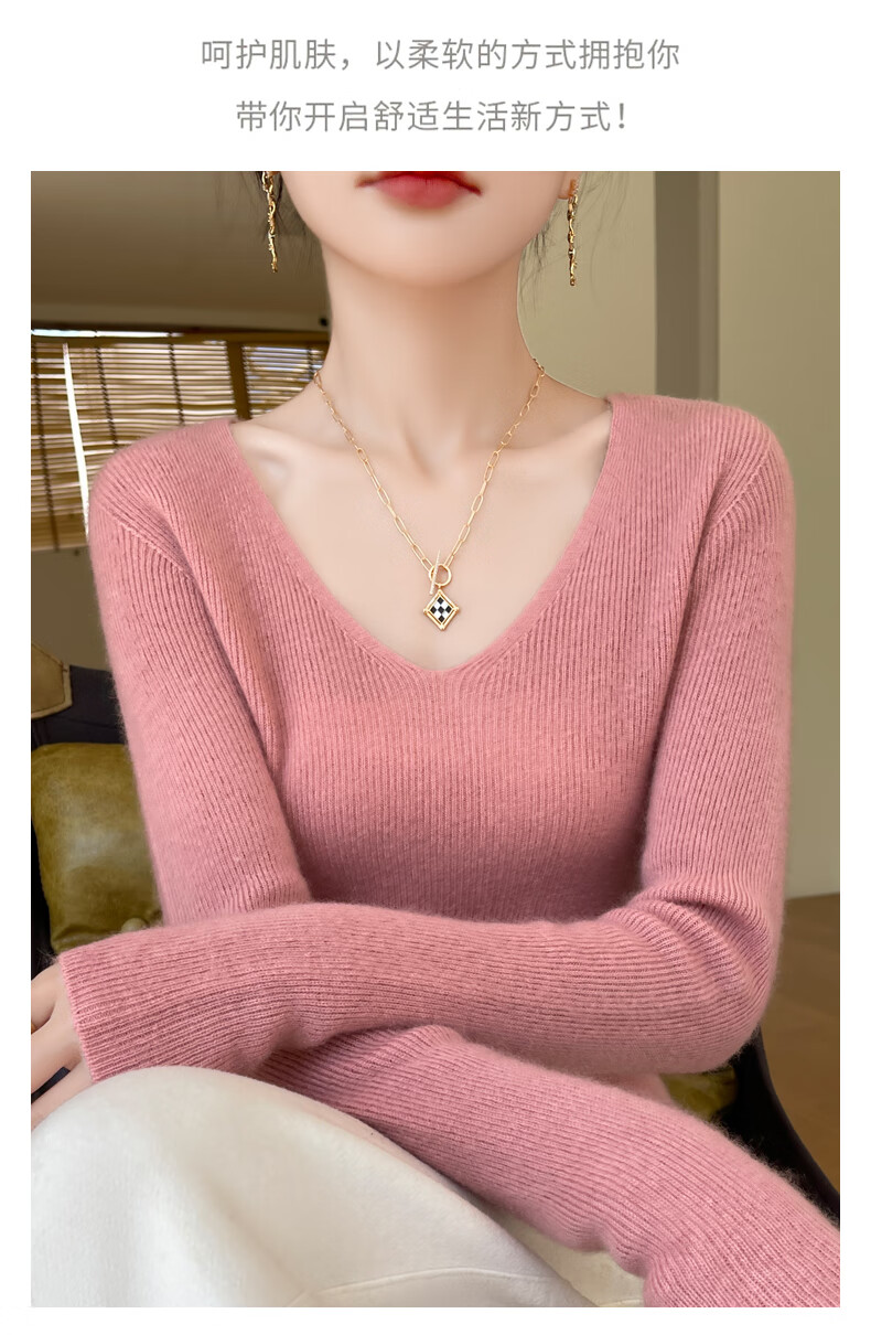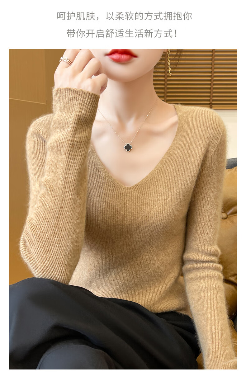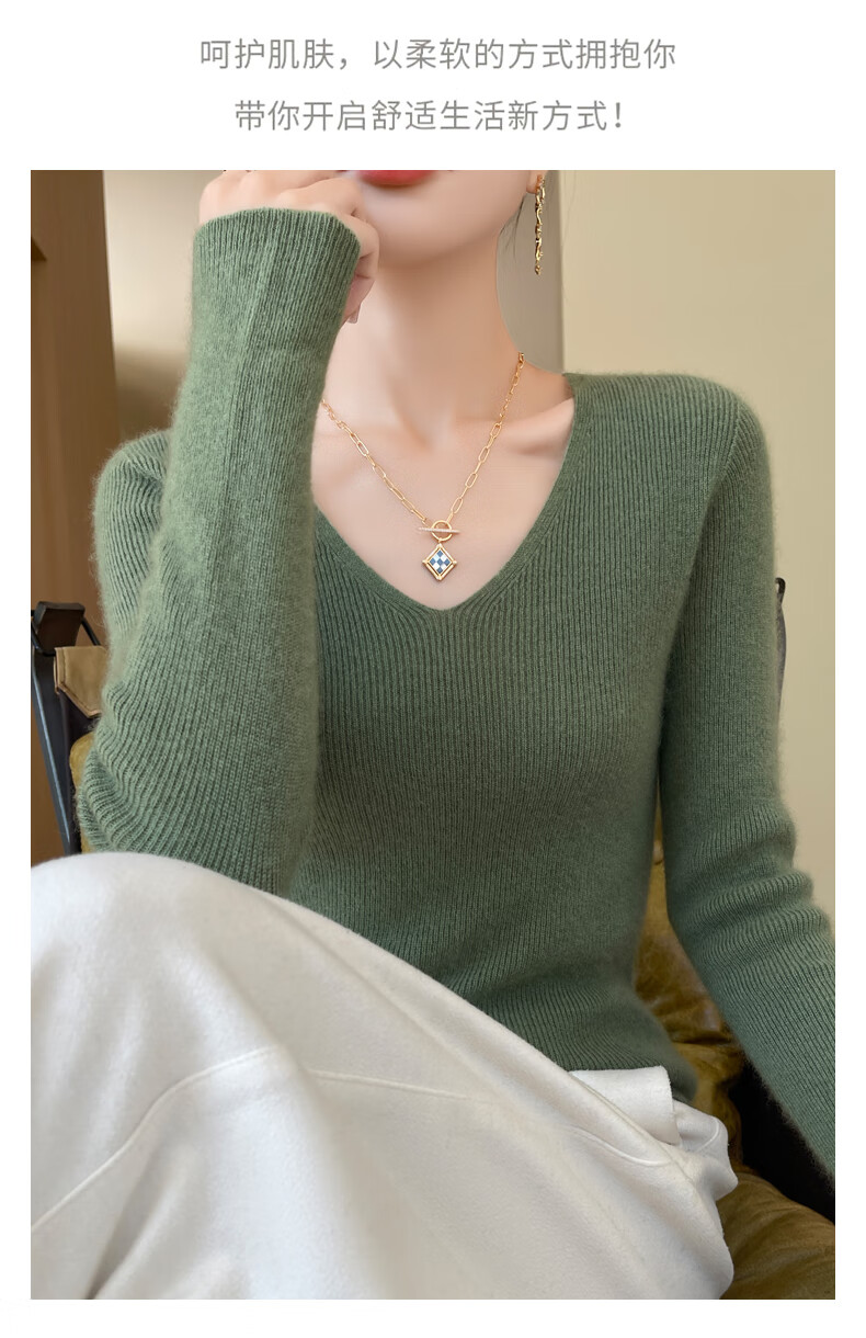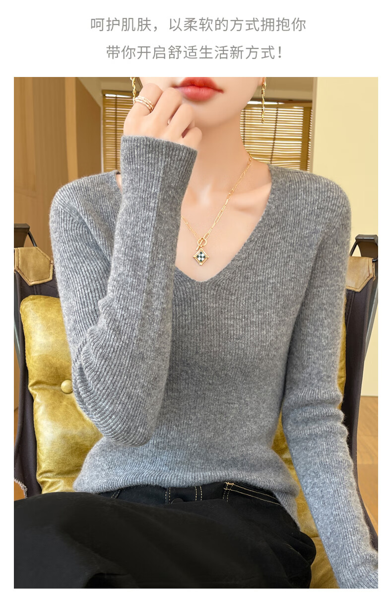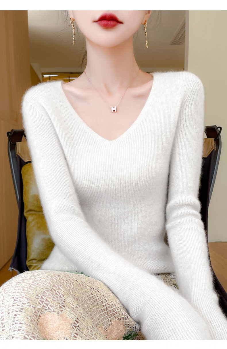 香影芬针织衫女春秋新款v领打底衫修身显瘦毛衣女秋冬时髦时尚洋气内搭 白色 M (建议95-105斤)