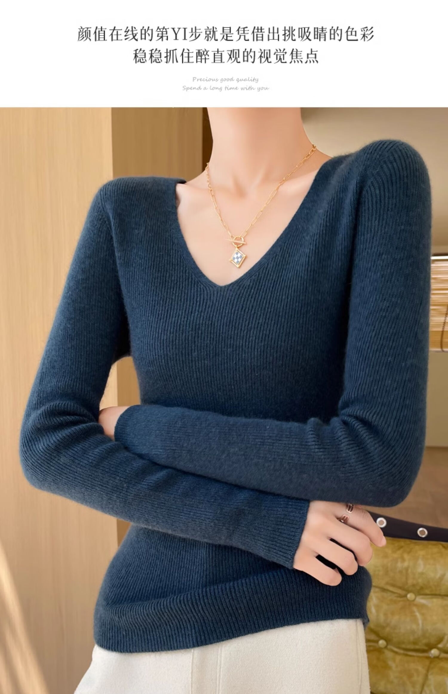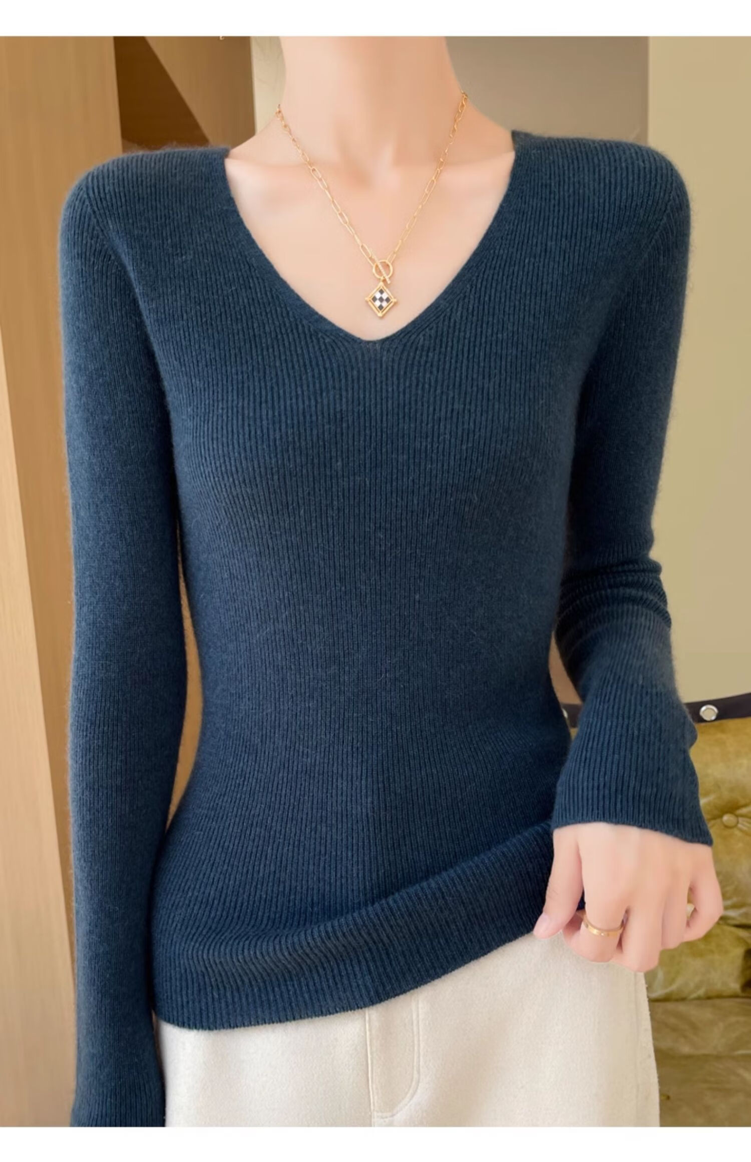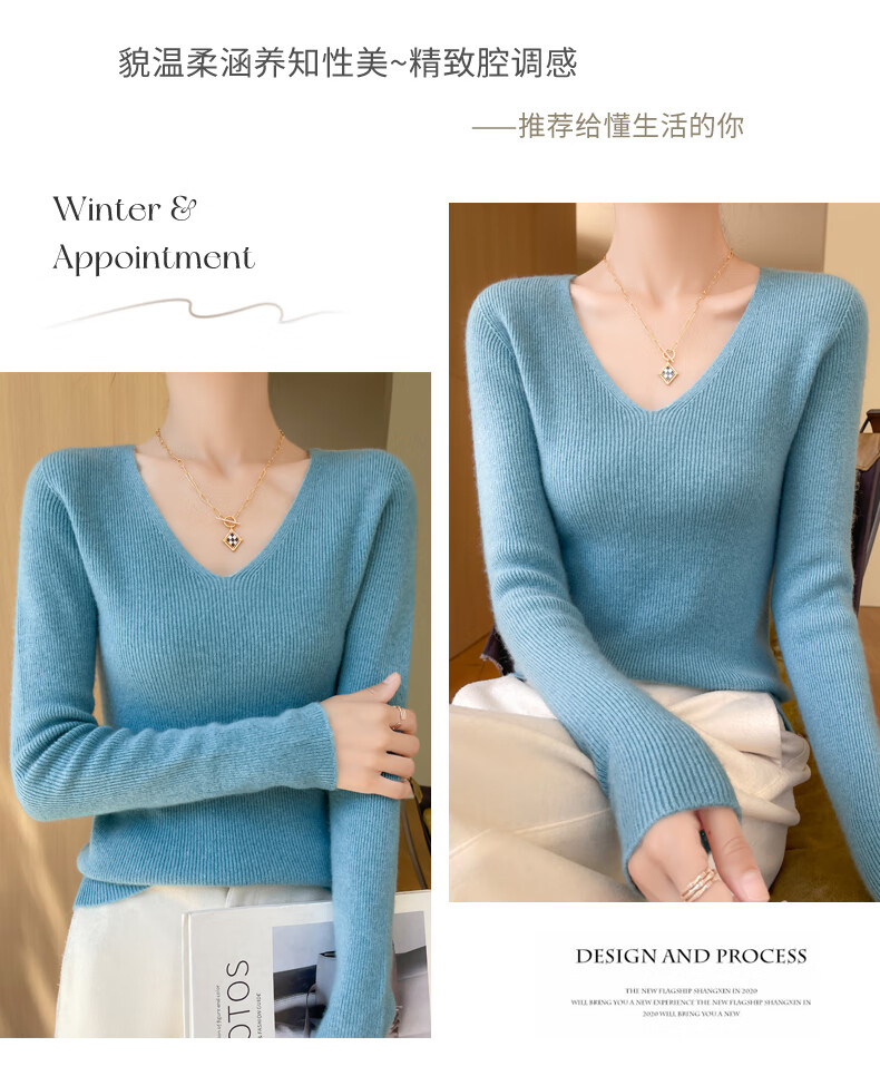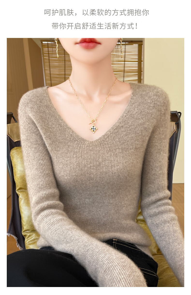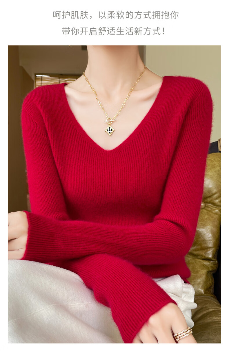 香影芬针织衫女春秋新款v领打底衫修身显瘦毛衣女秋冬时髦时尚洋气内搭 白色 M (建议95-105斤)