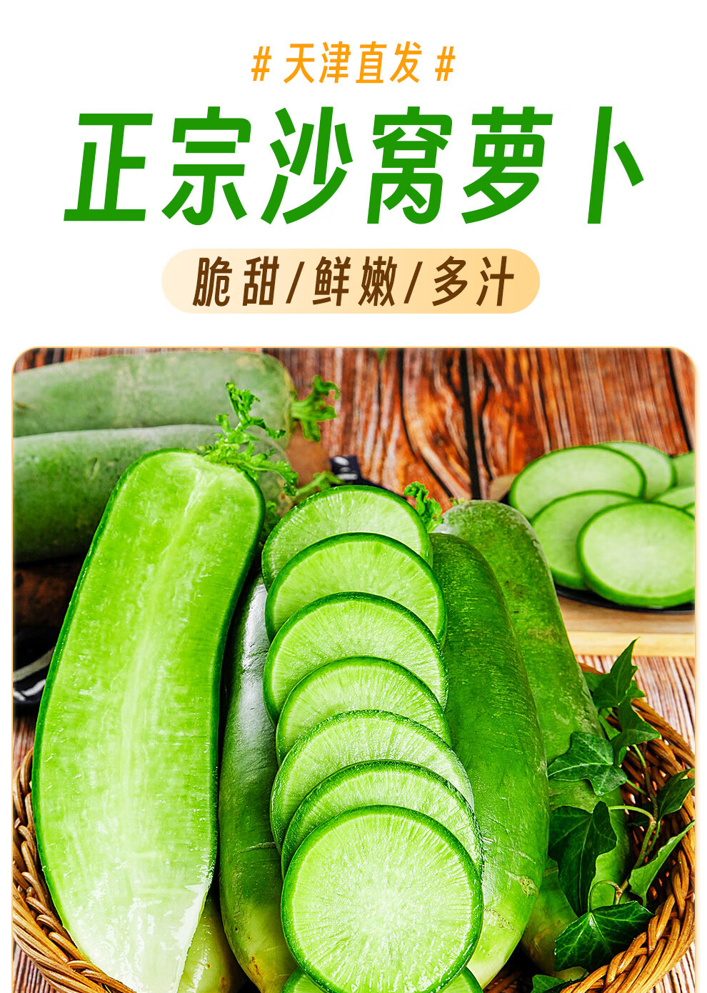 正宗天津沙窝萝卜甜脆水果型新鲜青萝卜冰淇淋萝卜根茎类蔬菜生吃 产地现拔【天星二号】普通礼盒装5斤
