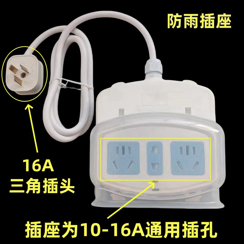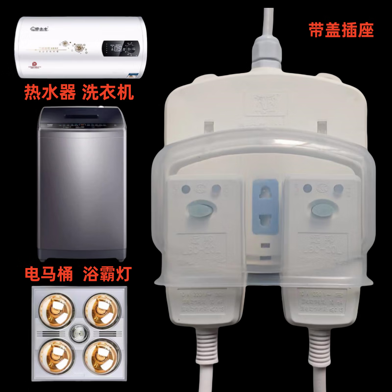 卫生间防水罩大功率插排浴室热水器智能马桶一转二插座扩展拖线板 防雨12孔9点5米线配16A常用漏保插