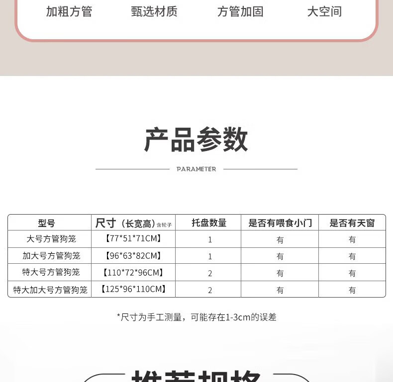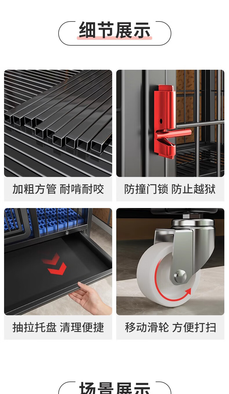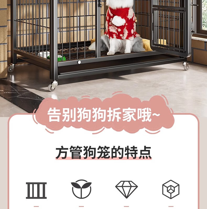 波奇多 升级方管狗笼子125*96*110cm室内带厕所金毛萨摩耶宠物狗屋别墅