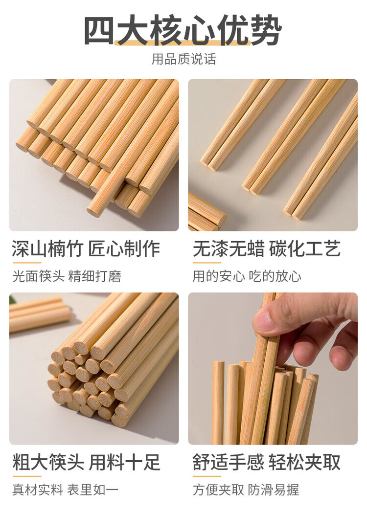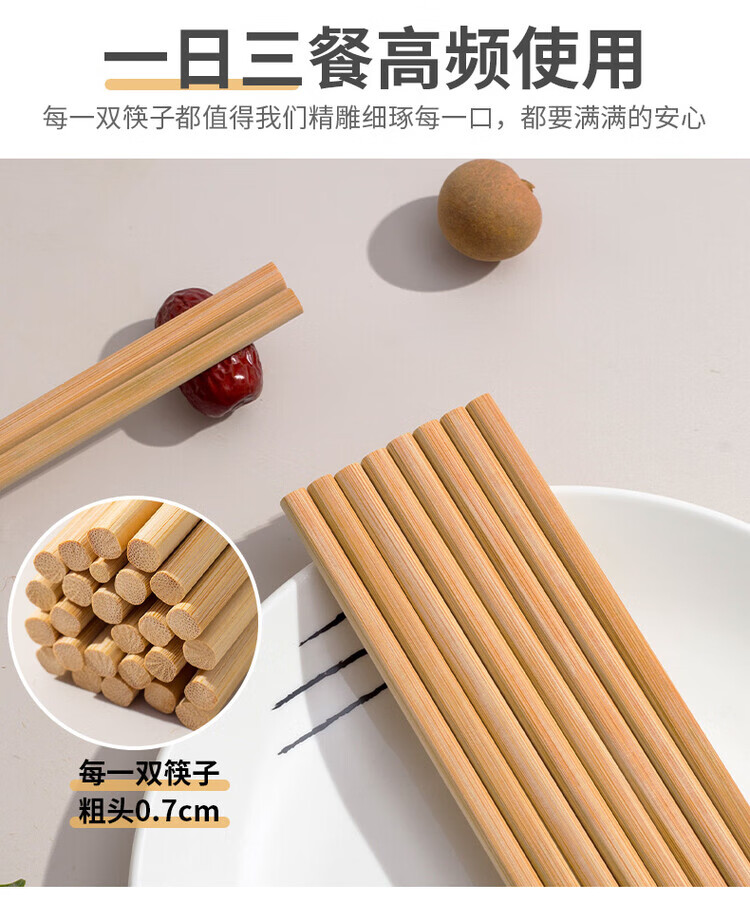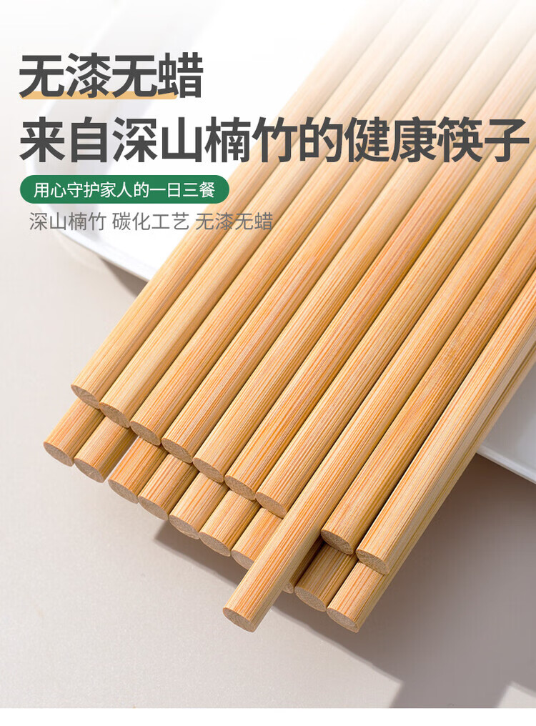 简漾天然楠竹筷子家用高档抗菌防霉防滑无漆无蜡10双家庭一人一筷加长 家用【长24】楠竹筷子2双