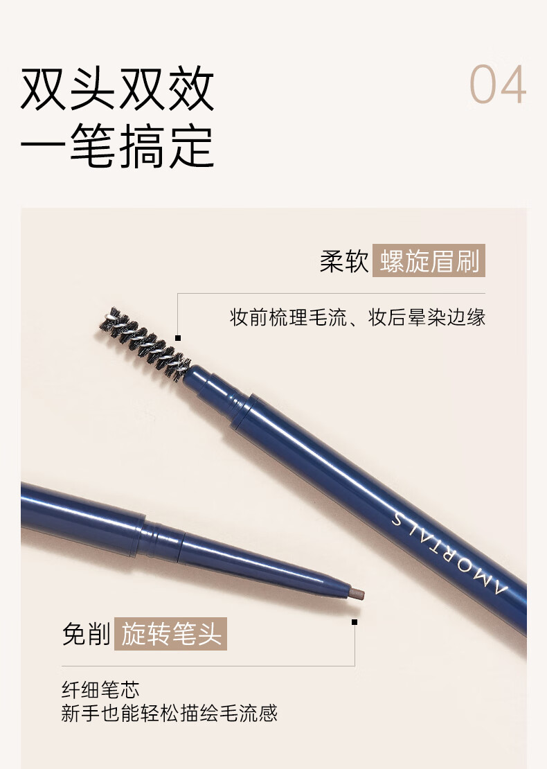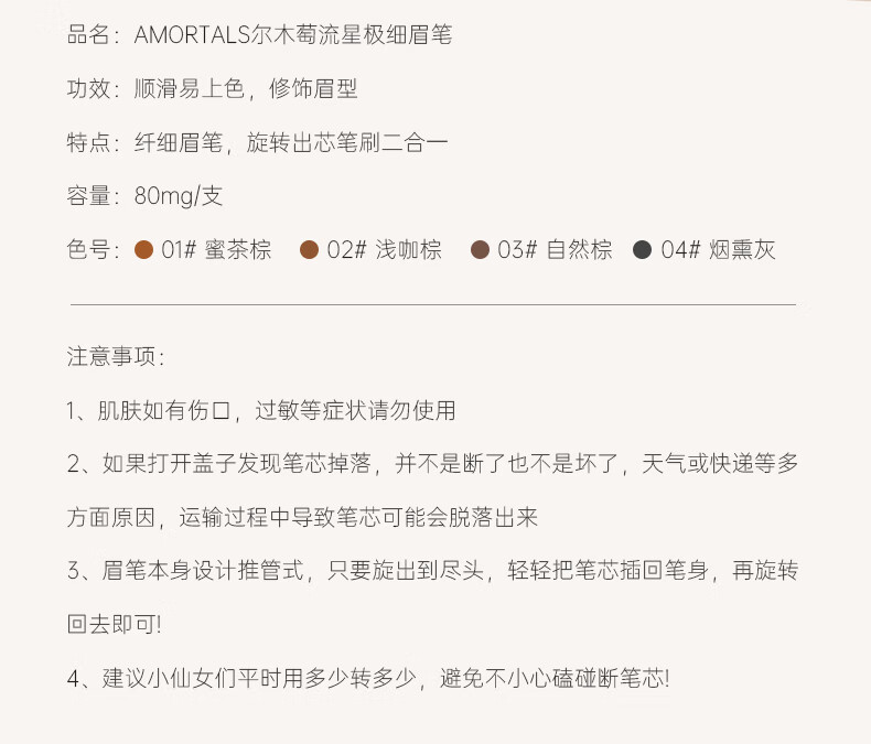 尔木萄(AMORTALS) 流星极细眉笔初学者 #04烟熏灰0.08g( 顺滑不晕妆)