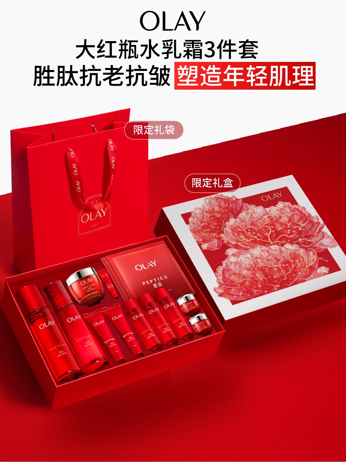 玉兰油(OLAY)大红瓶水乳液保湿抗皱紧致抗衰老化妆品护肤品套装礼盒圣诞礼物女