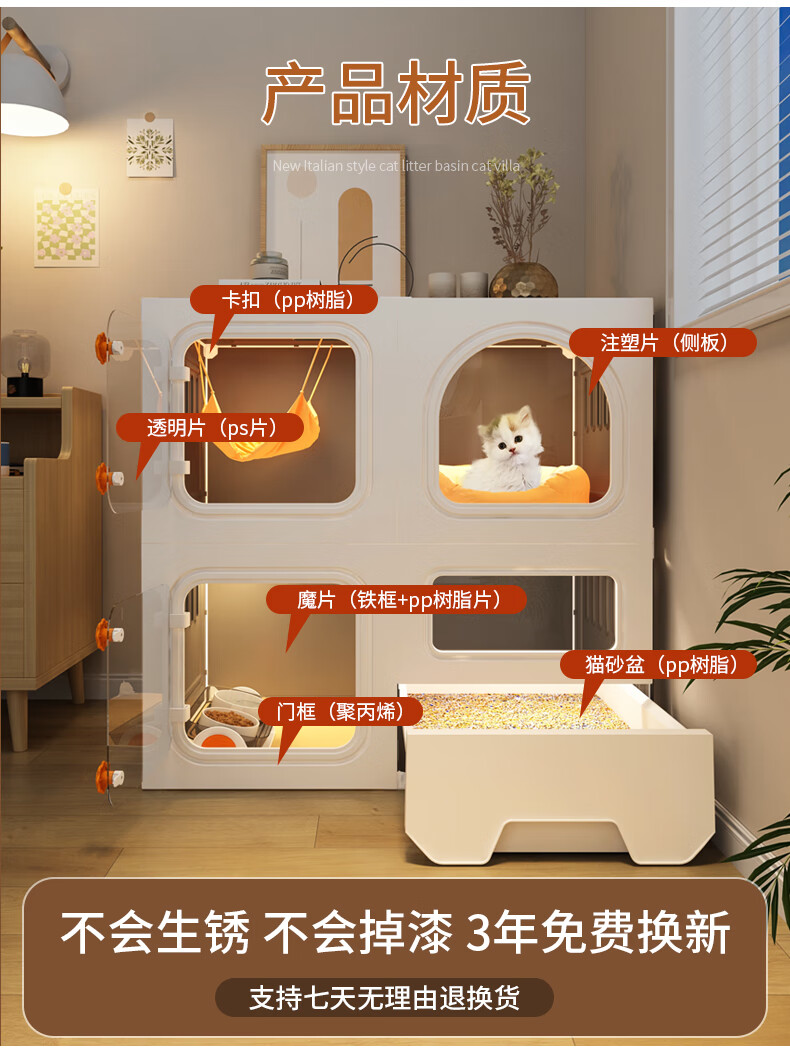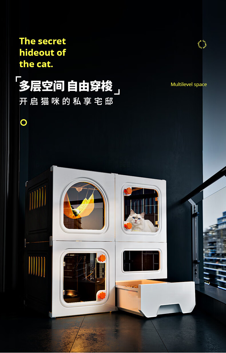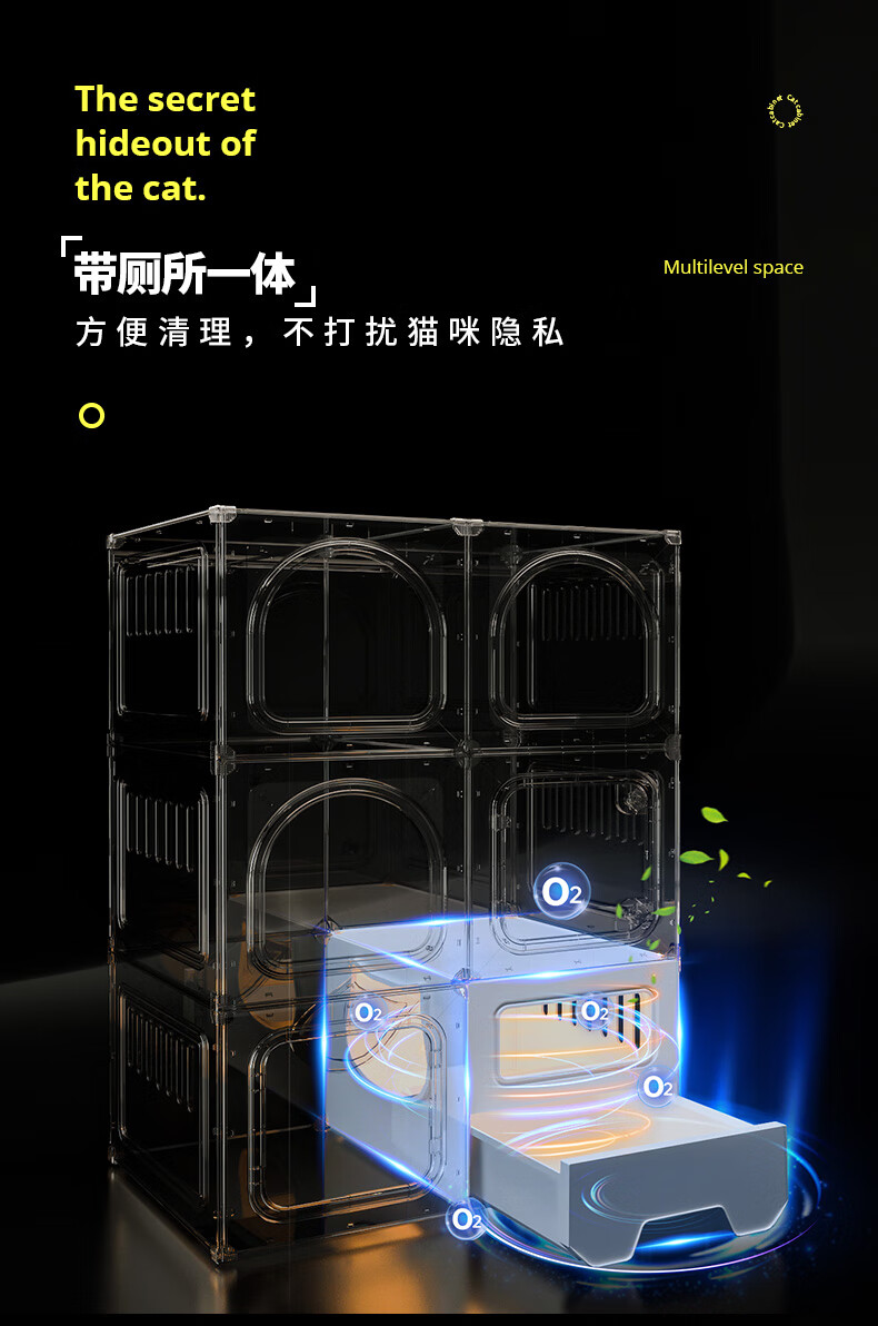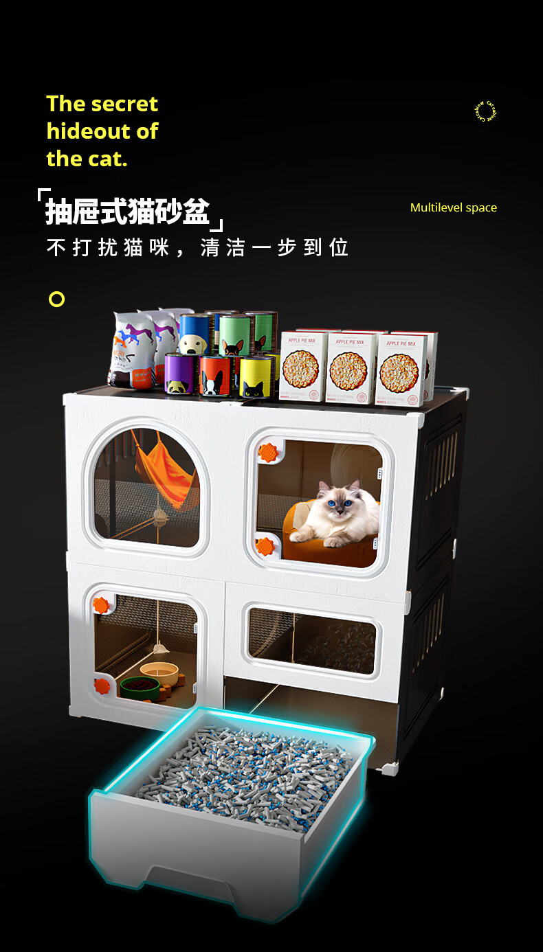蔻丝猫笼子带厕所一体适合大猫家用室内双层猫别墅大号猫窝透明猫柜