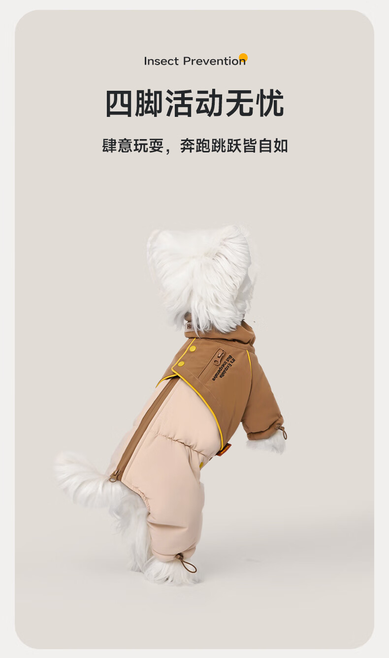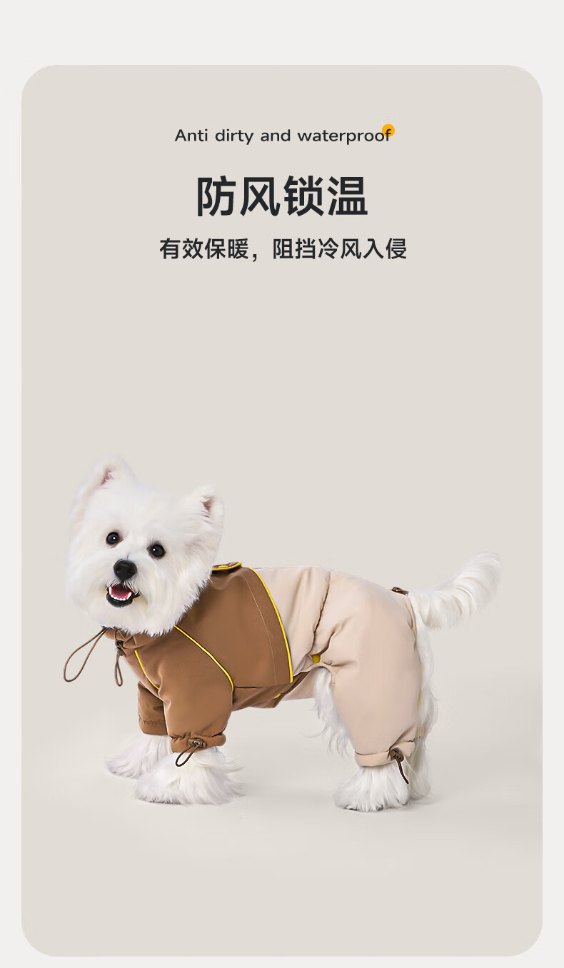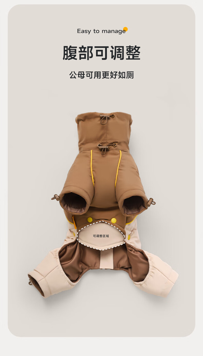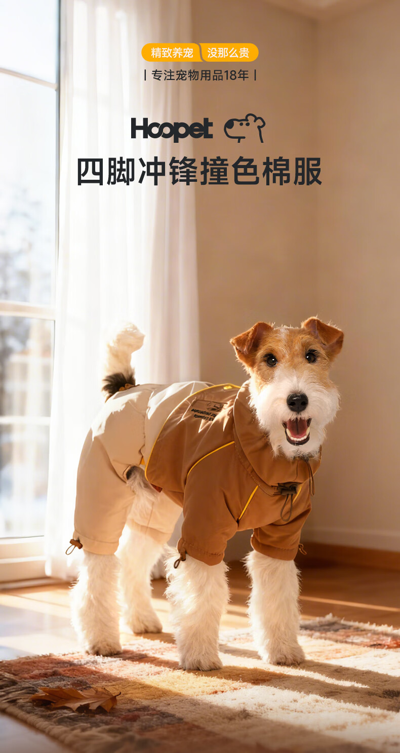 华元宠具(hoopet)四脚冲锋撞色棉服小猫咪狗狗冬季保暖加厚泰迪比熊外出冬装棉服