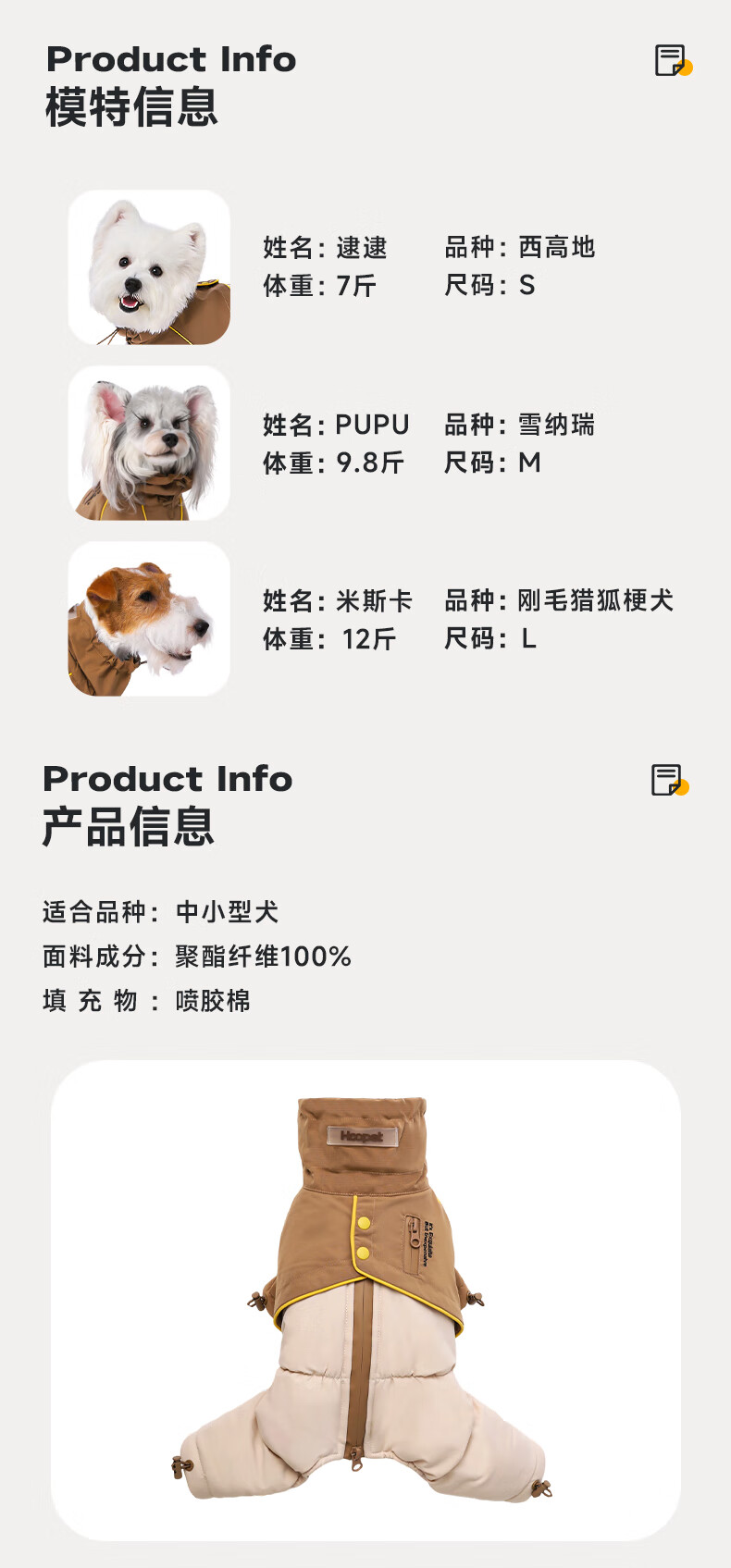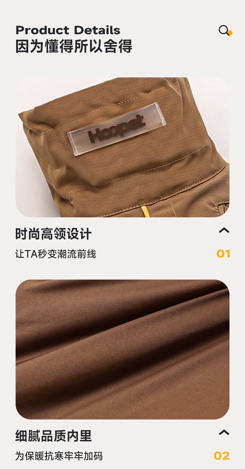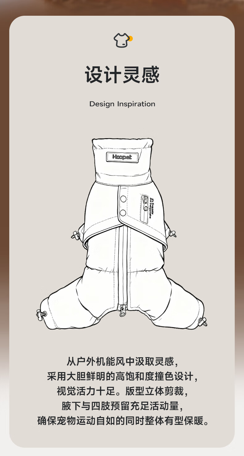 华元宠具(hoopet)四脚冲锋撞色棉服小猫咪狗狗冬季保暖加厚泰迪比熊外出冬装棉服