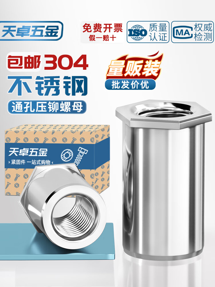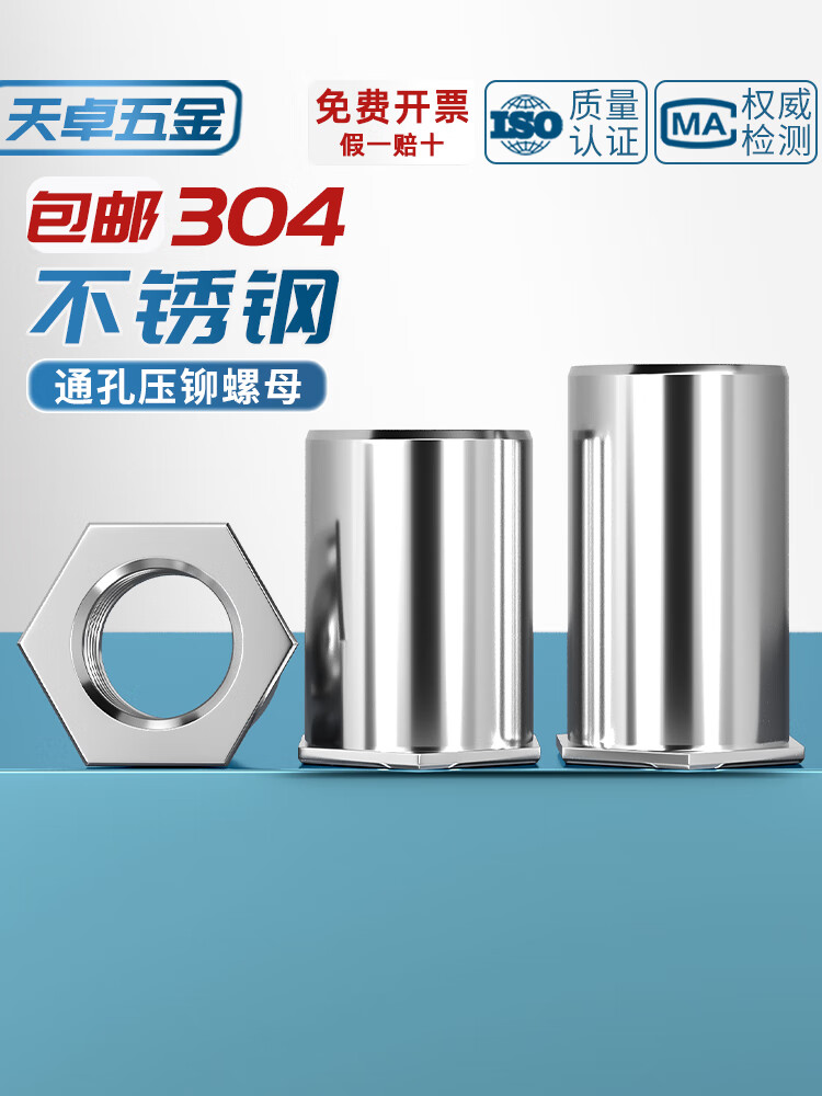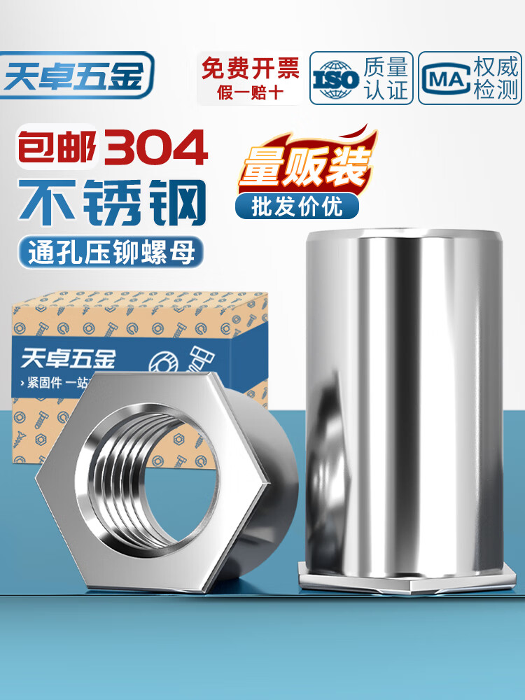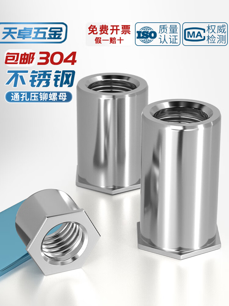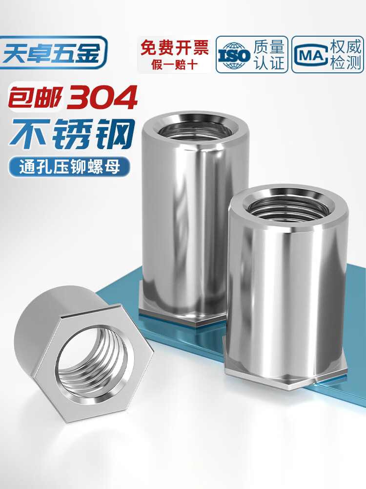 天卓五金304不锈钢通孔压铆螺柱SOS压铆螺母柱压铆件小外径M2M2.5M3M4M5M6 M2*3外径4.2【50个】