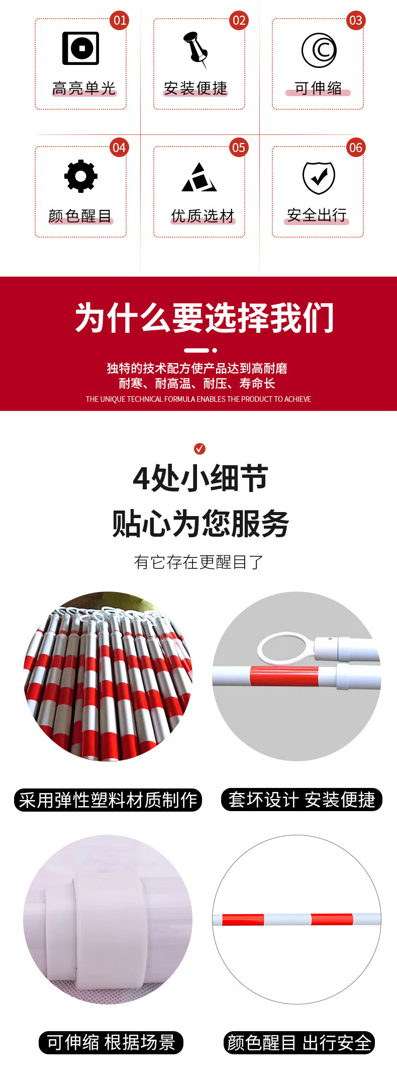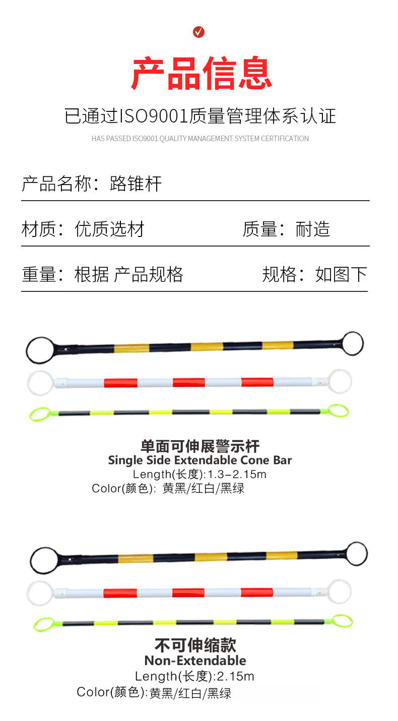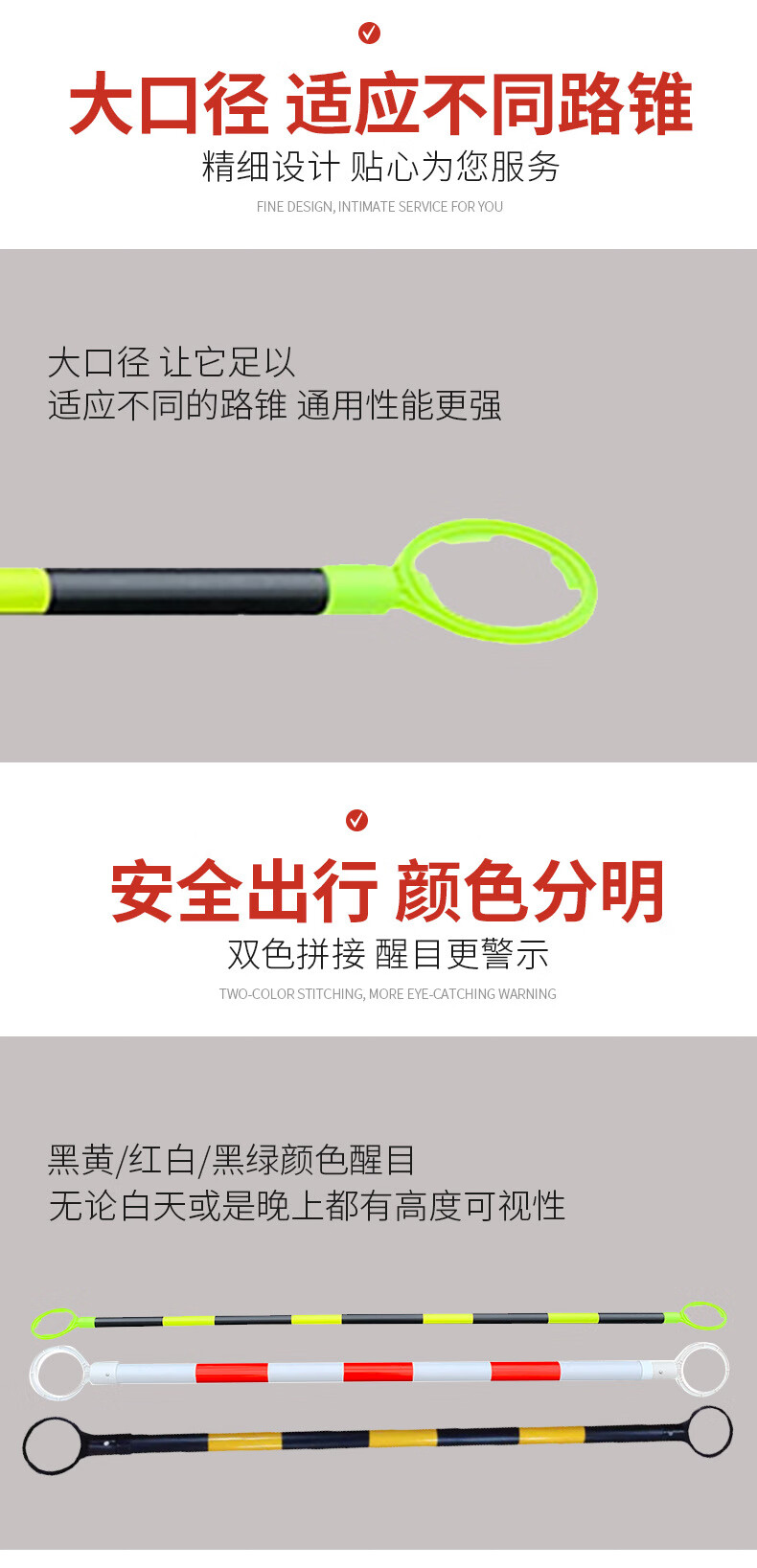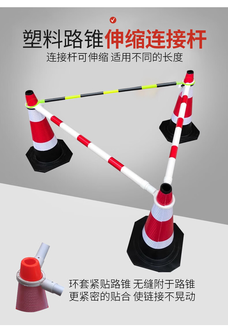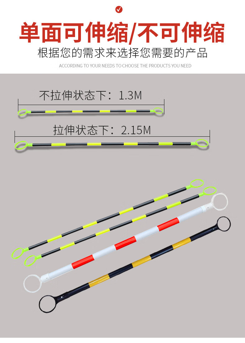 欧汉(OUHAN)路锥连接杆伸缩杆PVC反光杆警示杆路锥塑料套杆隔离墩固定连接杆 10根伸缩黄黑2m