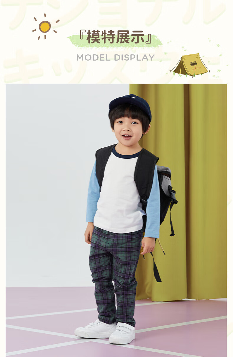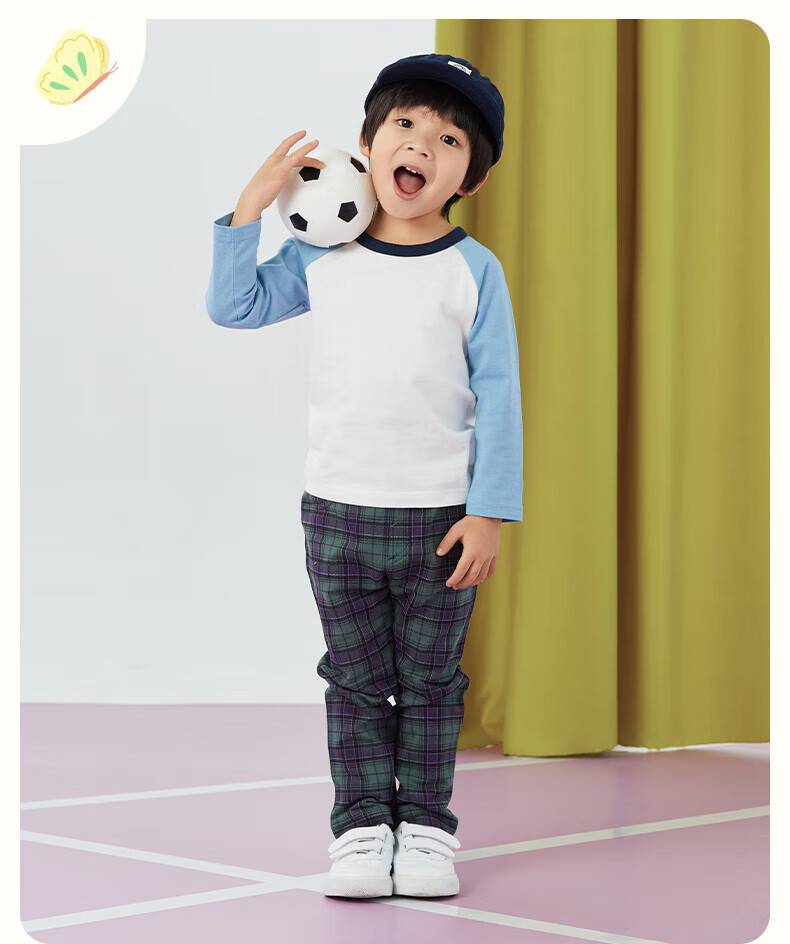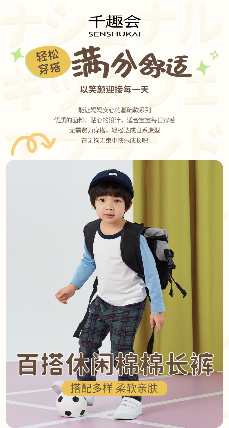 千趣会童装25年秋季儿童长裤男女童纯棉休闲裤幼儿园宝宝百搭裤子 深绿色(格纹) 140 cm