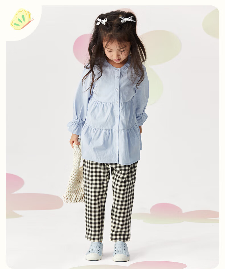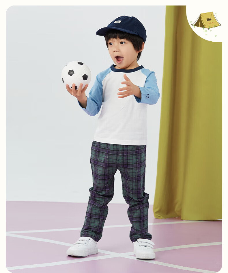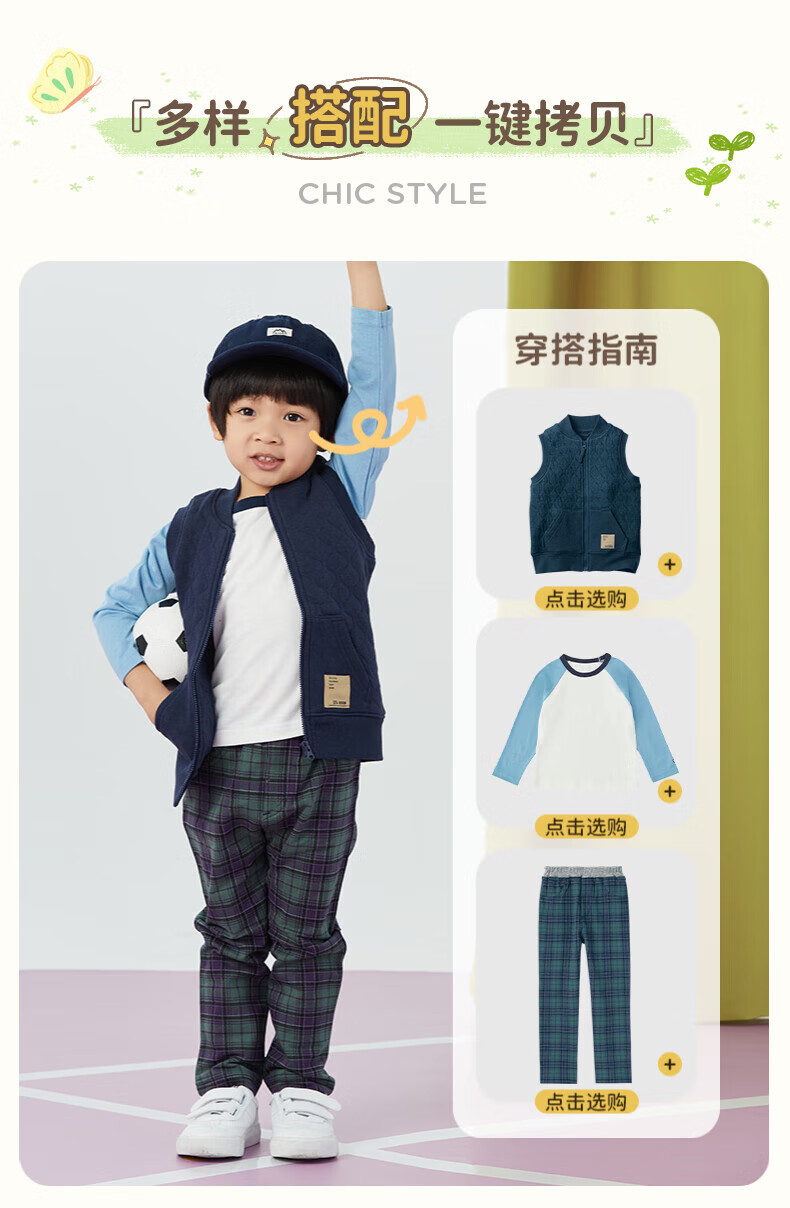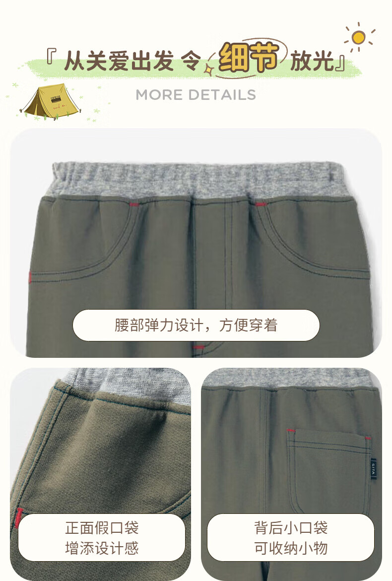 千趣会童装25年秋季儿童长裤男女童纯棉休闲裤幼儿园宝宝百搭裤子 深绿色(格纹) 140 cm