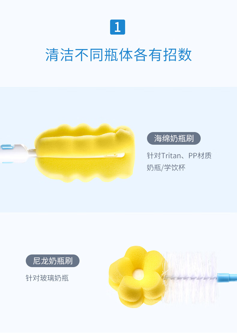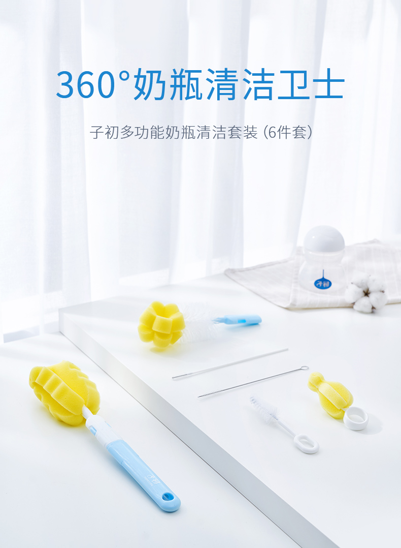 子初(matern’ella)海绵奶瓶刷奶瓶刷子奶瓶清洁收纳宝宝洗奶瓶刷套装6件套装清洗刷 奶瓶果蔬清洁剂250ml2瓶