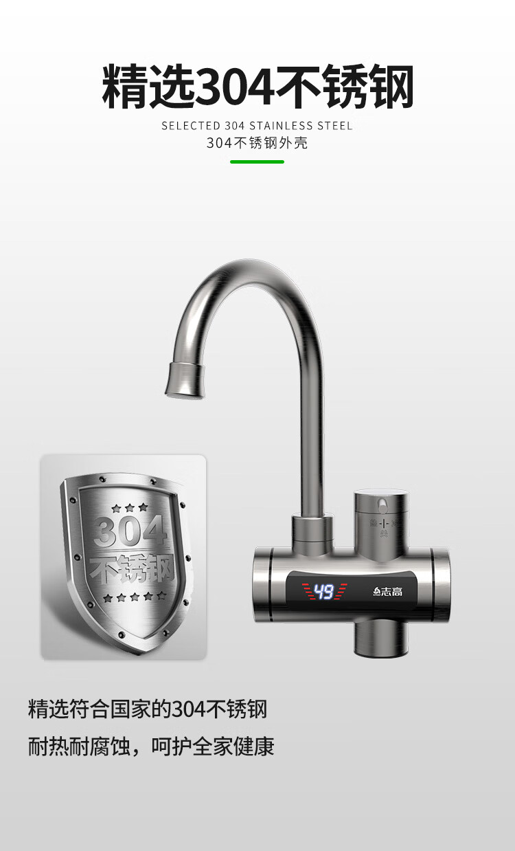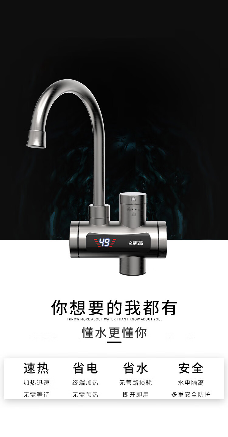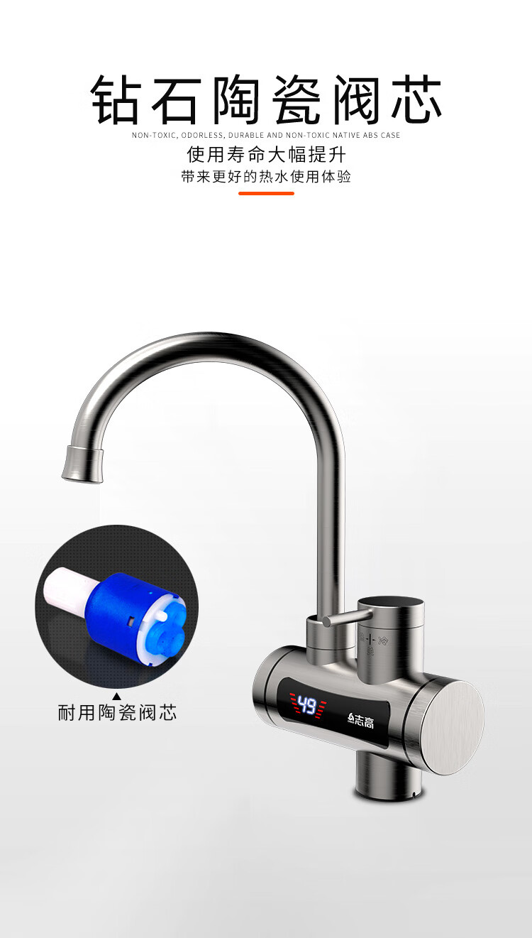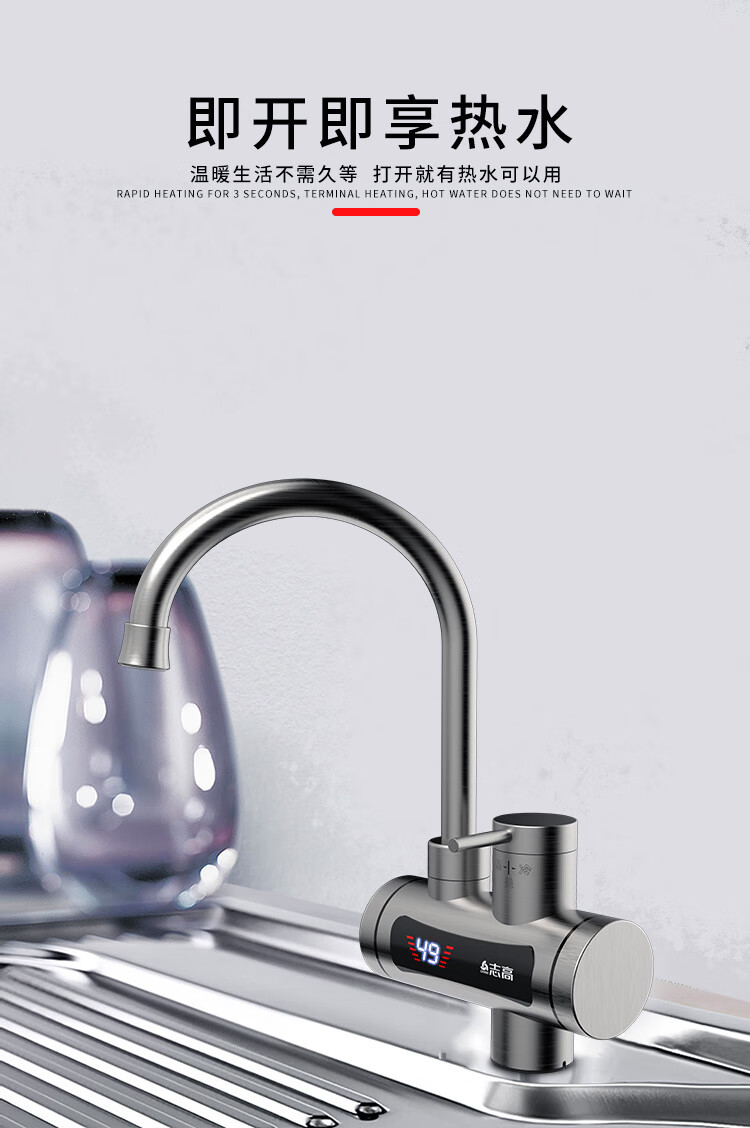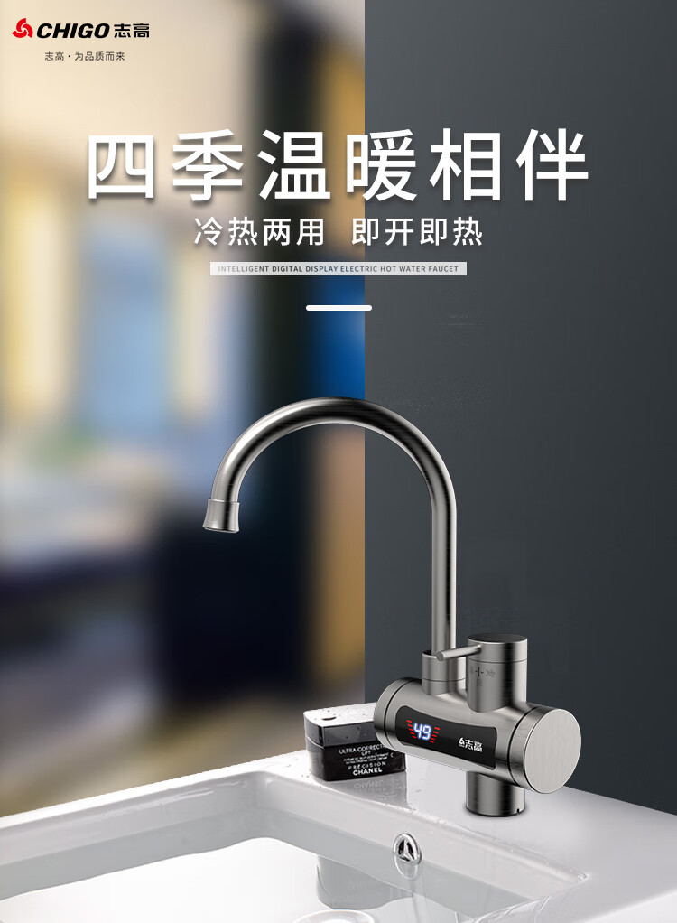 志高(CHIGO)电热水龙头即热式电加热快速热过水厨房小厨宝卫生间下进水 智能数显不锈钢+赠漏保ZG-KBH37