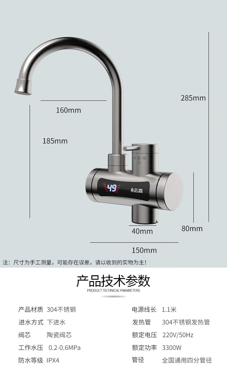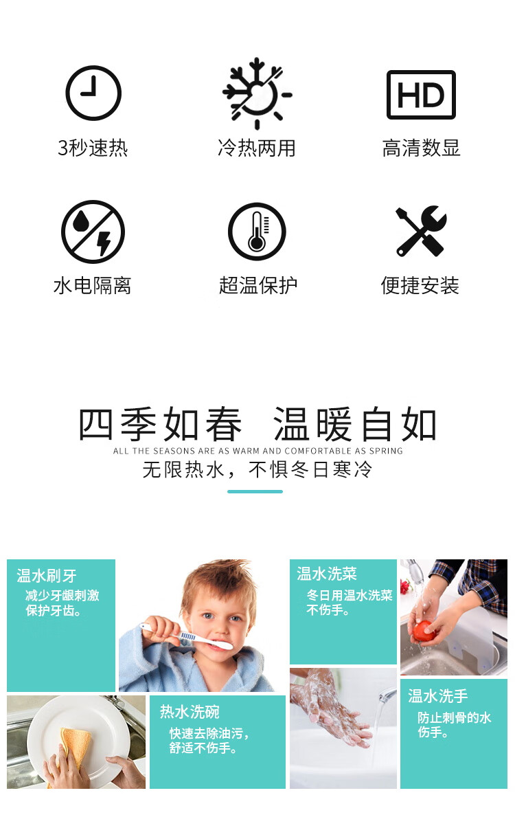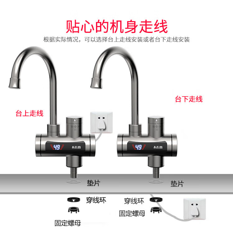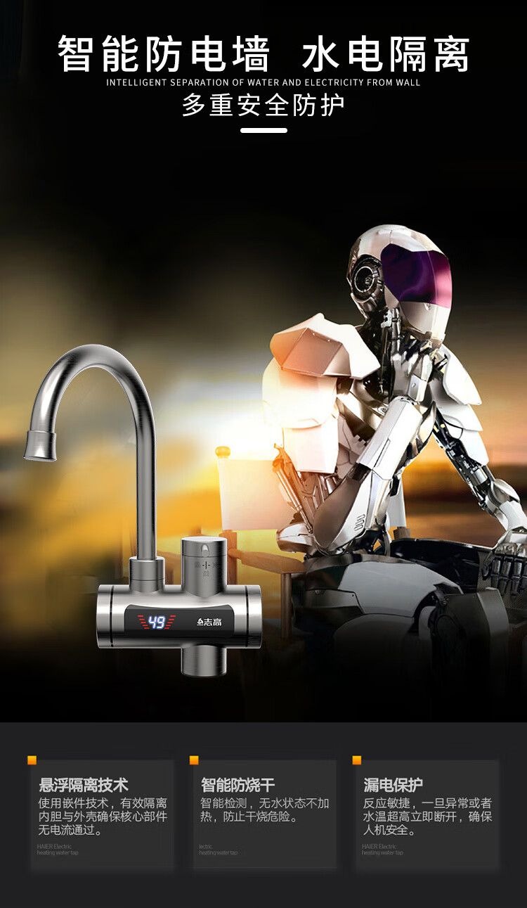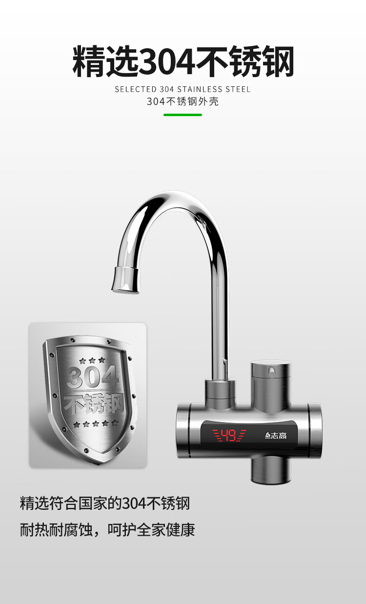 志高(CHIGO)电热水龙头即热式电加热快速热过水厨房小厨宝卫生间下进水 智能数显不锈钢+赠漏保ZG-KBH37